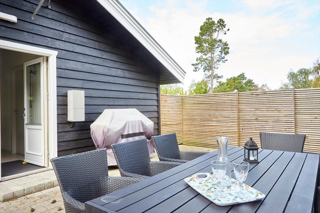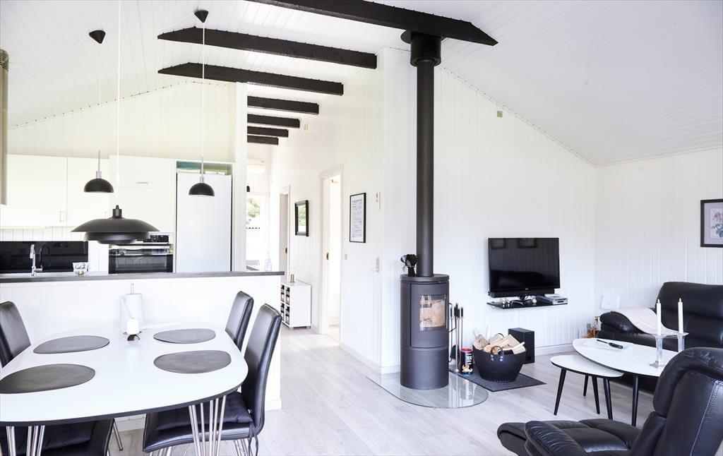 Dejlig lys stue med god spiseplads, her er der både mulighed for at fordybe sig i en god bog eller snuppe et spil kort med børnene. I forbindelse med stuen er der et funktionelt åbent køkken, med alle bekvemmeligheder. Der er et rigtig fint badeværelse med brus og 2 dejlige soveværelser. I master bedroom, er der elevationsseng. Fra stuen er der udgang til husets skønne terrasse, hvorfra I kan nyde solen fra morgen til aften. Der er også en fantastisk terrasse mellem huset og det tilhørende anneks, hvor der er plads til at 2 personer kan overnatte. Alt i huset fremstår lyst, lækkert og særdeles indbydende.