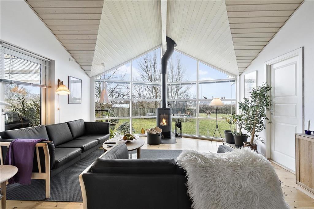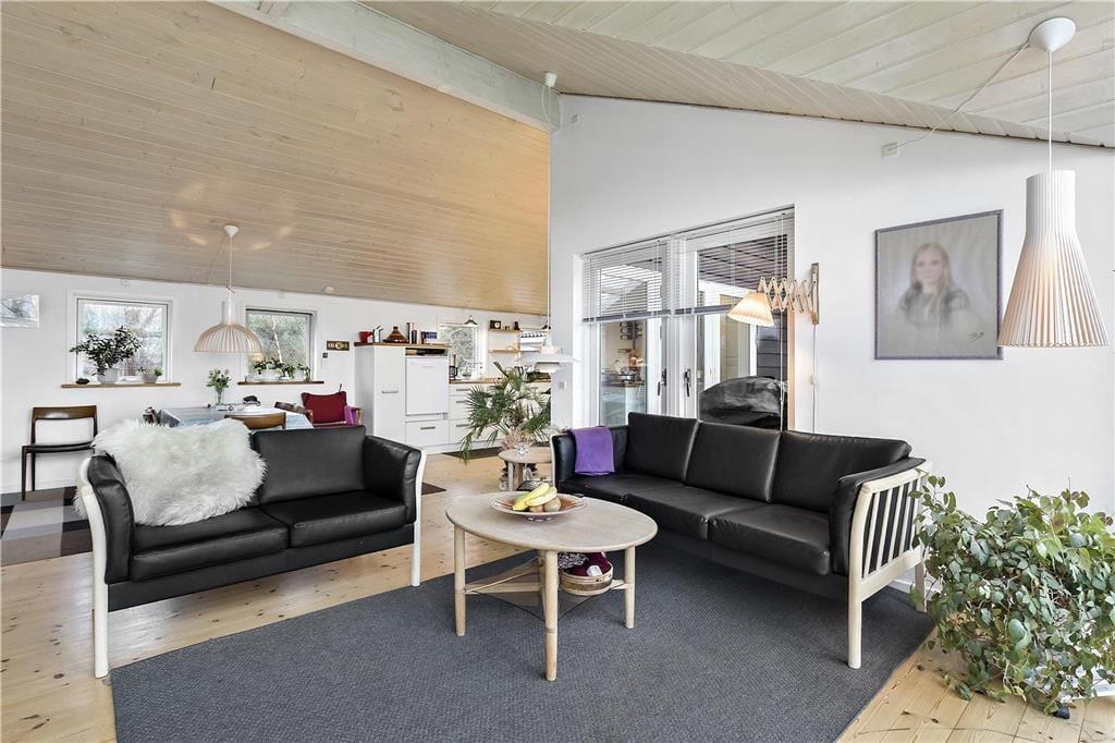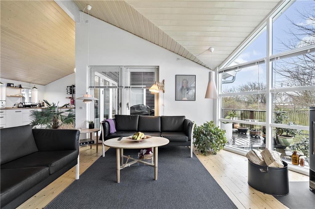 Huset er lyst og rummeligt med åbent køkken ud til spisestue og stue med brændeovn samt havudsigt gennem store panoramavinduer. Her er mulighed for samvær, hygge og spil for op til 11 personer. Der er 3 dejlige soveværelser i hoved huset, 1 med enkeltseng og 2 med dobbeltsenge. Derudover fint badeværelse og bryggers med vaskemaskine. Annekset har 2 soveværelser med dobbeltsenge, enkeltseng og køjeseng og bad. Foran hoved huset, er der 2 lækre terrasser, en åben og en overdækket. Her kan man høre havets brus samt nyde en grillet fisk og se på solnedgangen. Havet skimtes gennem beplantningen i haven. Der er siddepladser til 10 voksne ude og inde.
