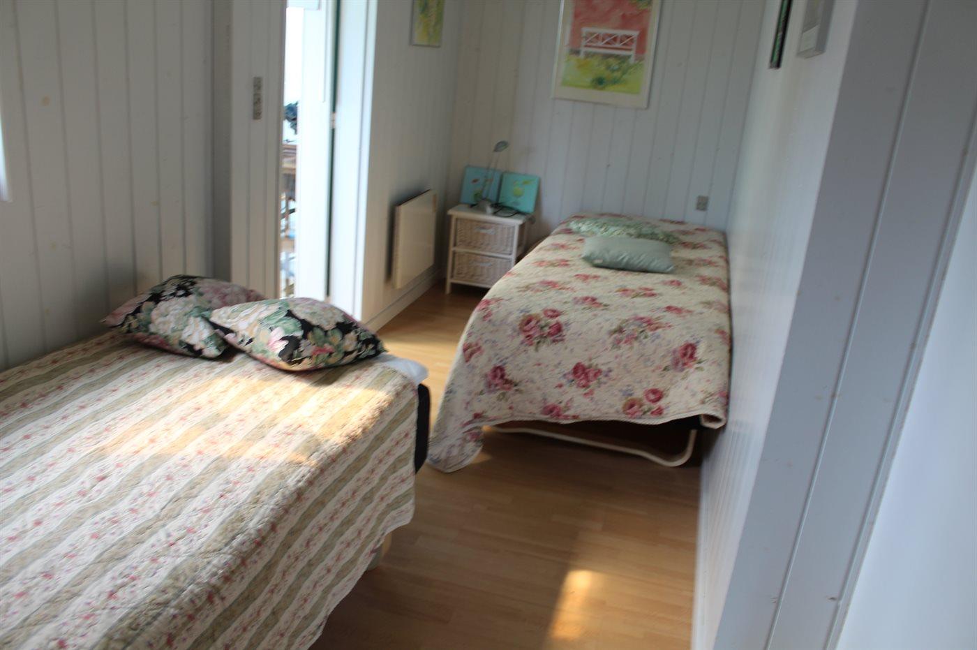 Der er i alt 2 soveværelser. Sovepladserne fordeler sig på: 2 sovepladser i dobbeltseng. 2 sovepladser i enkeltsenge.
