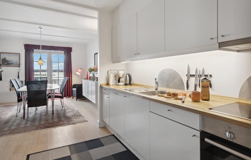 Hyggelig ferielejlighed med panoramaudsigt, spabad, sauna og bådplads på Gråsten Havn.