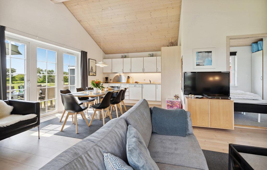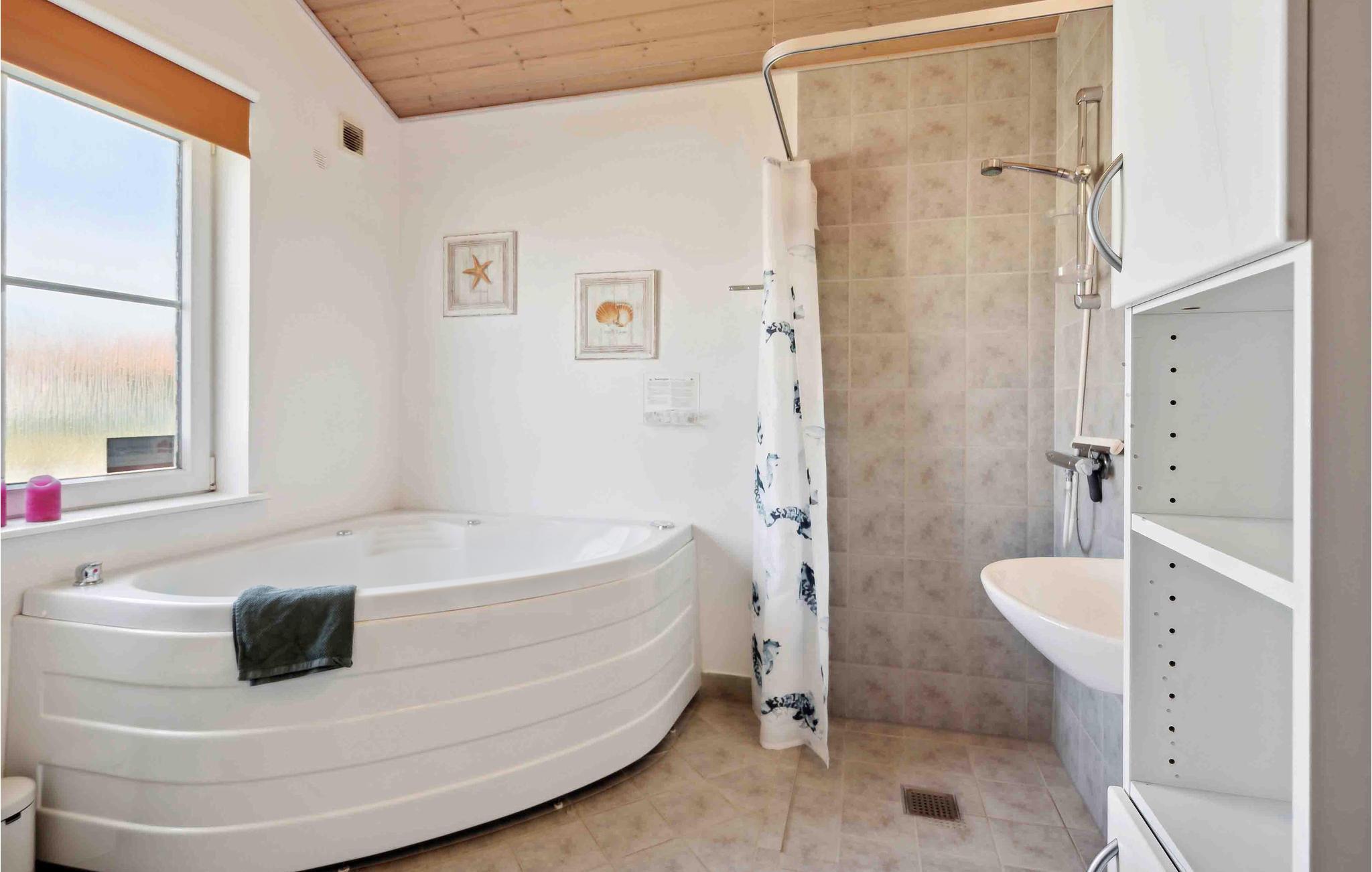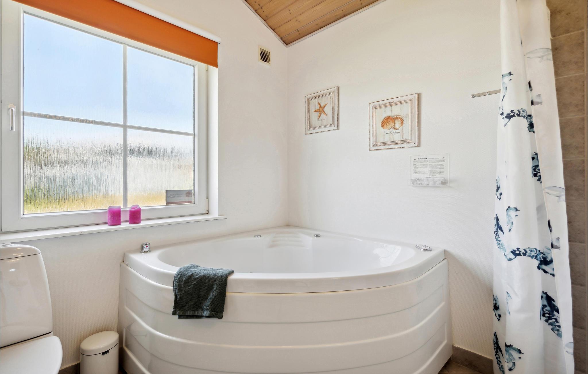 Nyd jeres familieferie i dette indbydende feriehus, som vil blive jeres andet hjem i løbet af jeres ferie. Huset med høje lofter og store vinduer indgyder ro og giver en følelse af luft, lys og rummelighed. Spil matador i stuen og hyg jer med fælles madlavning i køkkenet. Efter en lang udflugt kan I nyde lidt wellness i husets spabad eller sauna og derefter springe i vandet nær huset. Om aftenen kan I grille på den åbne terrasse. Nyd udsigten over vandet og glæd jer over den store legeplads tæt på huset, hvor jeres børn kan møde feriens legekammerater. I får også gratis adgang til badelandet i Marina Fiskenæs.