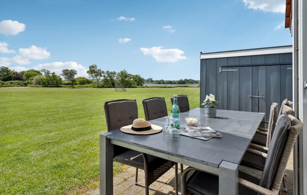 Eksklusivt feriehus ved Nybøl Nor med sauna, spabad og panoramaudsigt over vandet.