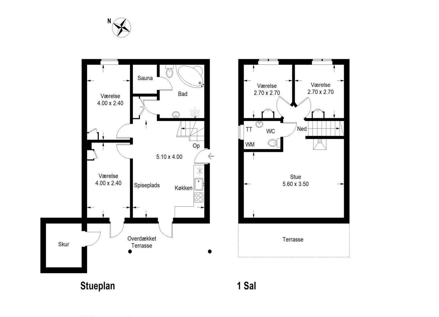 - 2 badeværelser