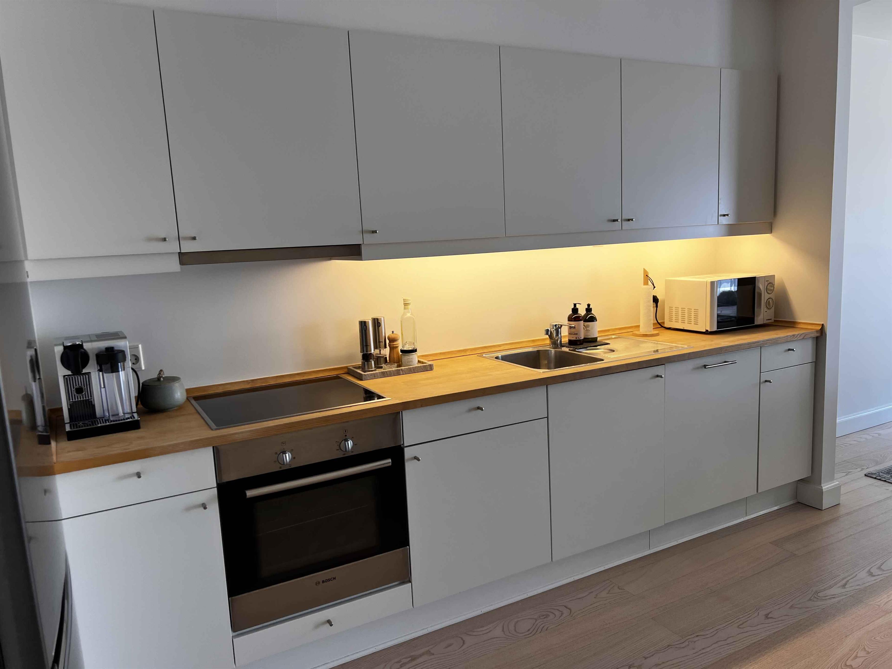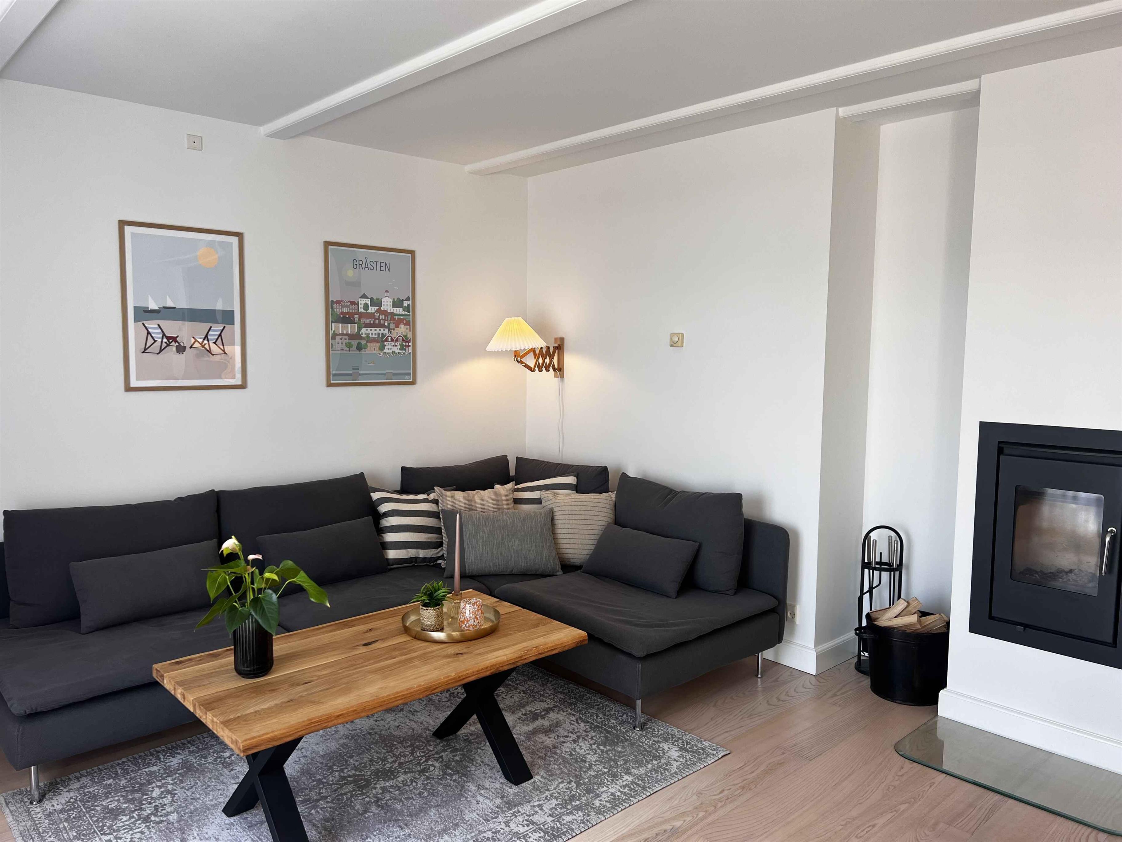 Nyd et hyggeligt ophold med en storslået havudsigt Denne skønne feriebolig på Gråsten Havn er det perfekte valg til jer, der elsker at bo tæt på naturen. Lige ud for ferieboligen venter en charmerende og meget børnevenlig sandstrand, hvor de mindste kan lege trygt i det lave vand og bygge sandslotte i timevis. Indenfor byder lejligheden på et veludstyret køkken i åben forbindelse med spisestuen, hvor I kan nyde udsigten. Når aftenen falder på, kan I lade jer varme af brændeovnens knitrende ild og skabe en hyggelig atmosfære. Ferieboligen har to stilfulde badeværelser, hvoraf det største forkæler jer med både karbad og sauna – perfekt til afslapning efter en dag fyldt med oplevelser. De to rummelige terrasser mod syd og nord giver jer mulighed for at nyde solen hele dagen. Start morgenen med en kop kaffe i solens første stråler, og afslut dagen med en lækker grillmiddag. Området byder på aktiviteter for alle aldre. Børnefamilier kan udforske det nærliggende badeland Marina Fiskenæs eller tage en tur til det eventyrlige Gråsten Slot. Natur- og cykelentusiaster vil elske at opdage omgivelserne ved Flensborg Fjord og øen Als. Tag på opdagelse i den historiske by Sønderborg, besøg Sønderborg Slot, eller lad jer imponere af det spændende univers i forlystelsesparken Universe. Historieelskere bør heller ikke gå glip af et besøg på Dybbøl Banke og Dybbøl Mølle, der fortæller om Danmarks fascinerende fortid. Denne feriebolig er jeres ideelle base for hygge, afslapning og uforglemmelige oplevelser – helt tæt på vandet.