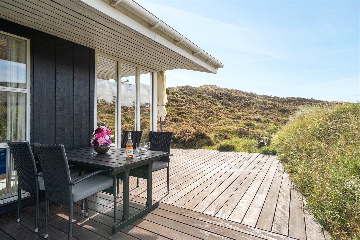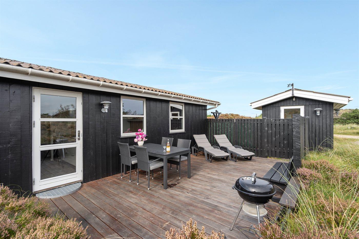 Ferieboligen er beliggende på en 1588 m² stor naturgrund midt mellem bakker, lyng og marehalm. På grunden er der adgang til et af områdets højeste udsigtspunkter. Boligen er bygget i 1984 og er på 74 m². Nærmeste forretning er beliggende i Vejers i en afstand af 3500 m.