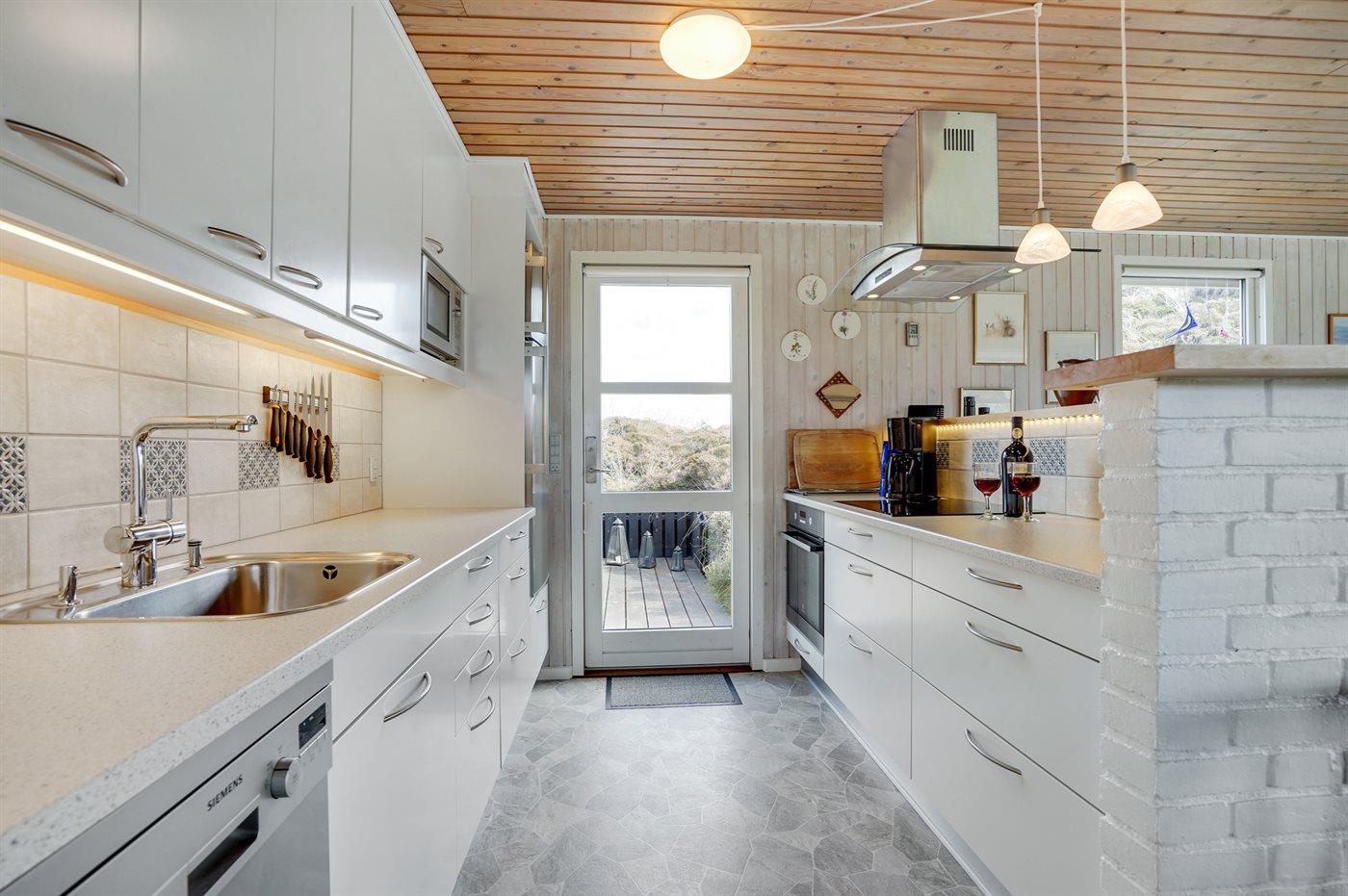 Boligen fremstår lys og venlig med lysindfald fra flere sider. Der er brændeovn. Køkkenet er i åben forbindelse med stuen - optimalt for fælles aktiviteter. Hyggelig spisekrog med stor sofa og flere lænestole giver mulighed for hygge og afslapning. Udenfor vinduerne kan man nyde udsigten til de lyngbeklædte bakker, hvor rådyrene færdes frit. Det er ikke tilladt at medbringe husdyr.
