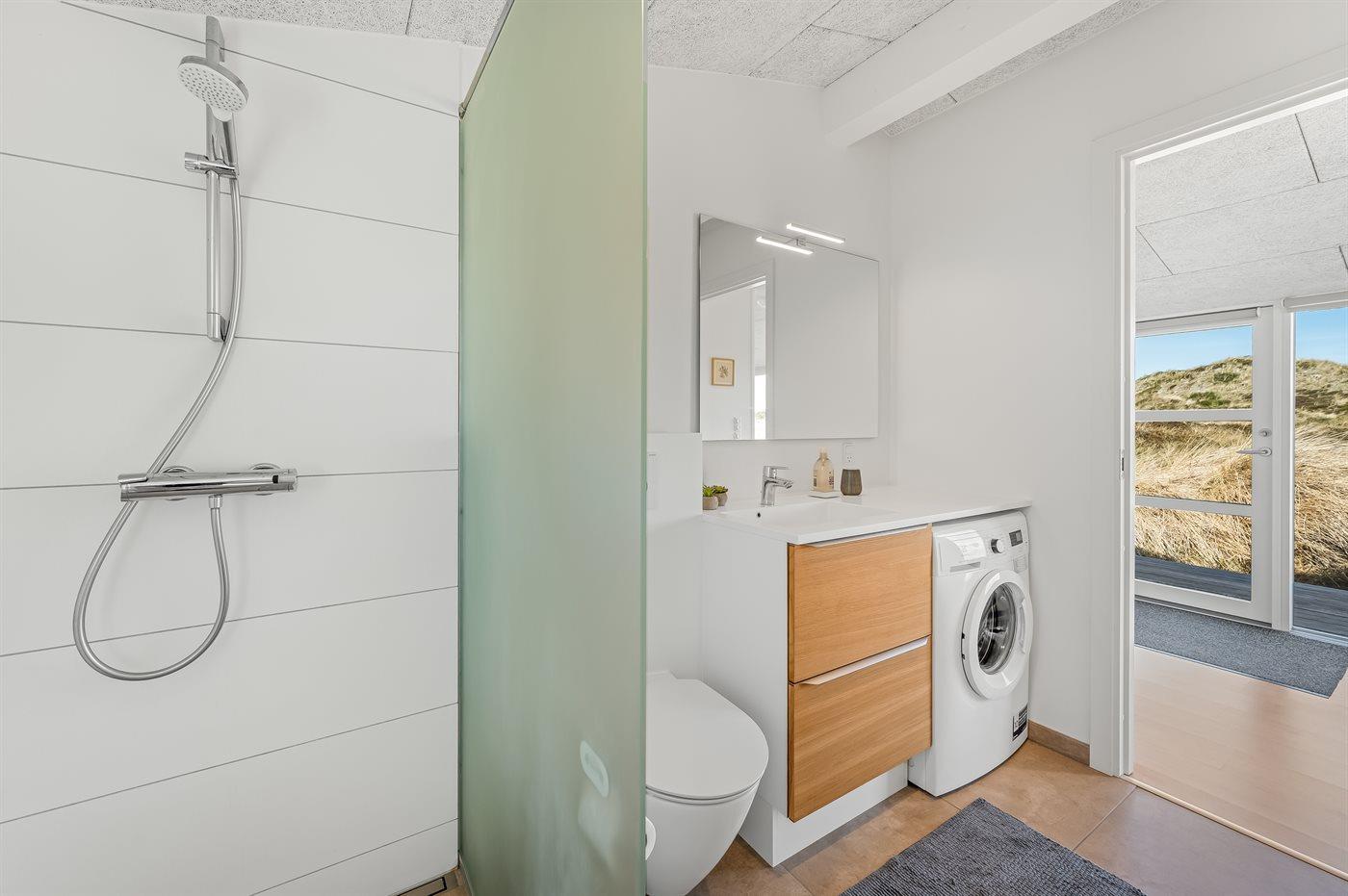 Der er 1 badeværelse med bruseniche og 2 toiletter, heraf 1 gæstetoilet. Der er gulvvarme på 1 badeværelse.