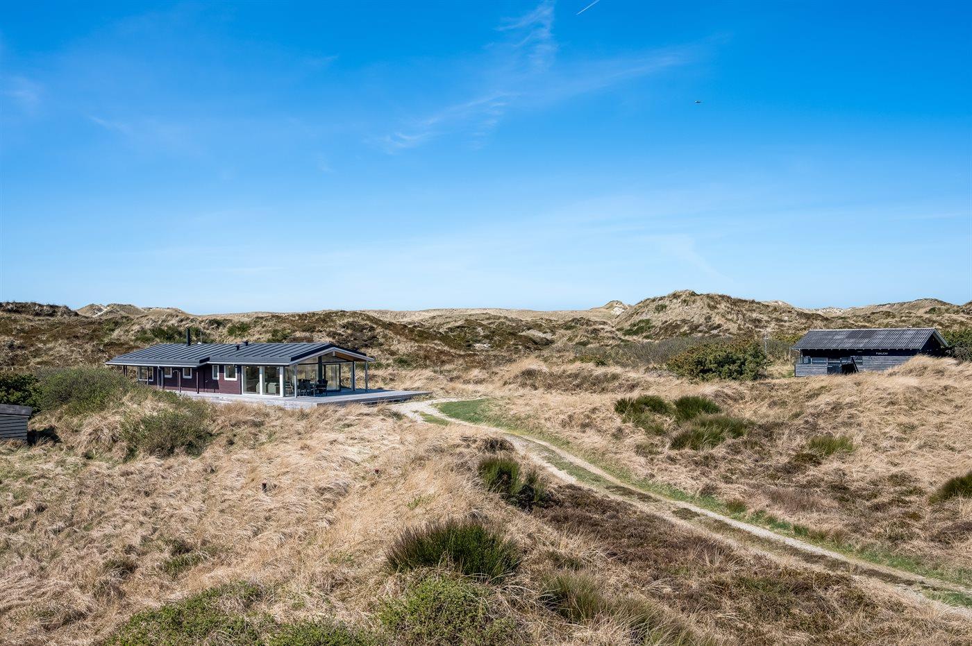 Fra sommerhuset er der blot 200 m. ad en lille sti, til den brede og bilfri strand.