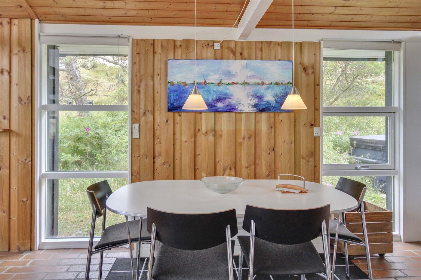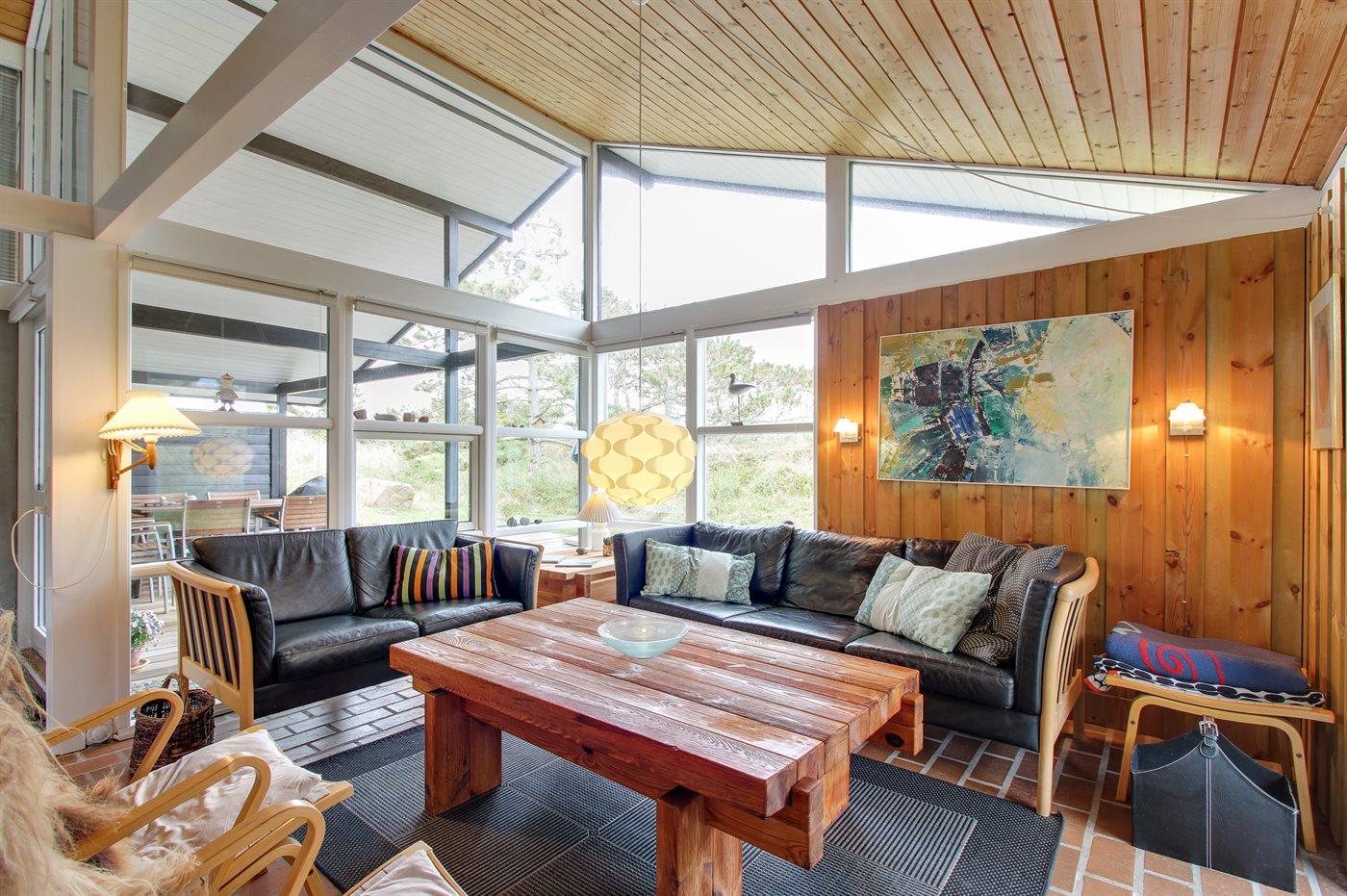 Kun 600 m fra Vesterhavet ligger dette sommerhus, på en fredlig og rolig kuperet lynggrund med gode læforhold, fra toppen af klitten kan man se Vesterhavet.