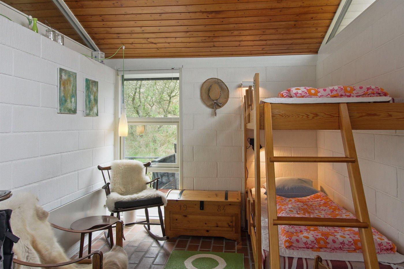 Der er i alt 3 soveværelser. Sovepladserne fordeler sig på: 4 sovepladser i dobbeltsenge. 2 sovepladser i køjeseng. Derudover er der 1 stk. barneseng.