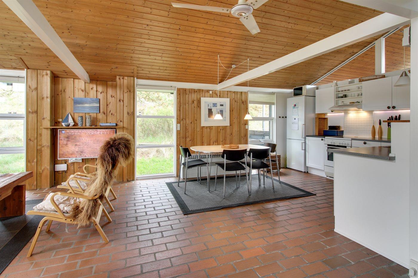 Køkkenet er udstyret med 1 køleskab. Der er 4 induktionskogeplader, varmluftovn, mikrobølgeovn samt opvaskemaskine.