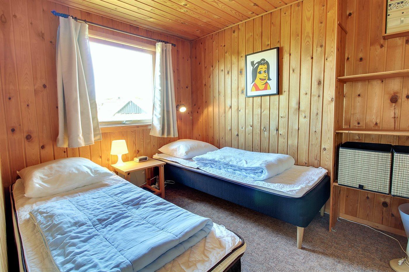 Der er i alt 3 soveværelser. Sovepladserne fordeler sig på: 4 sovepladser i enkeltsenge.1 soveplads i køjeseng. 2 sovepladser i sovesofa (dobbelt). Køjesengen er kun egnet til børn. Derudover er der 1 stk. barneseng.
