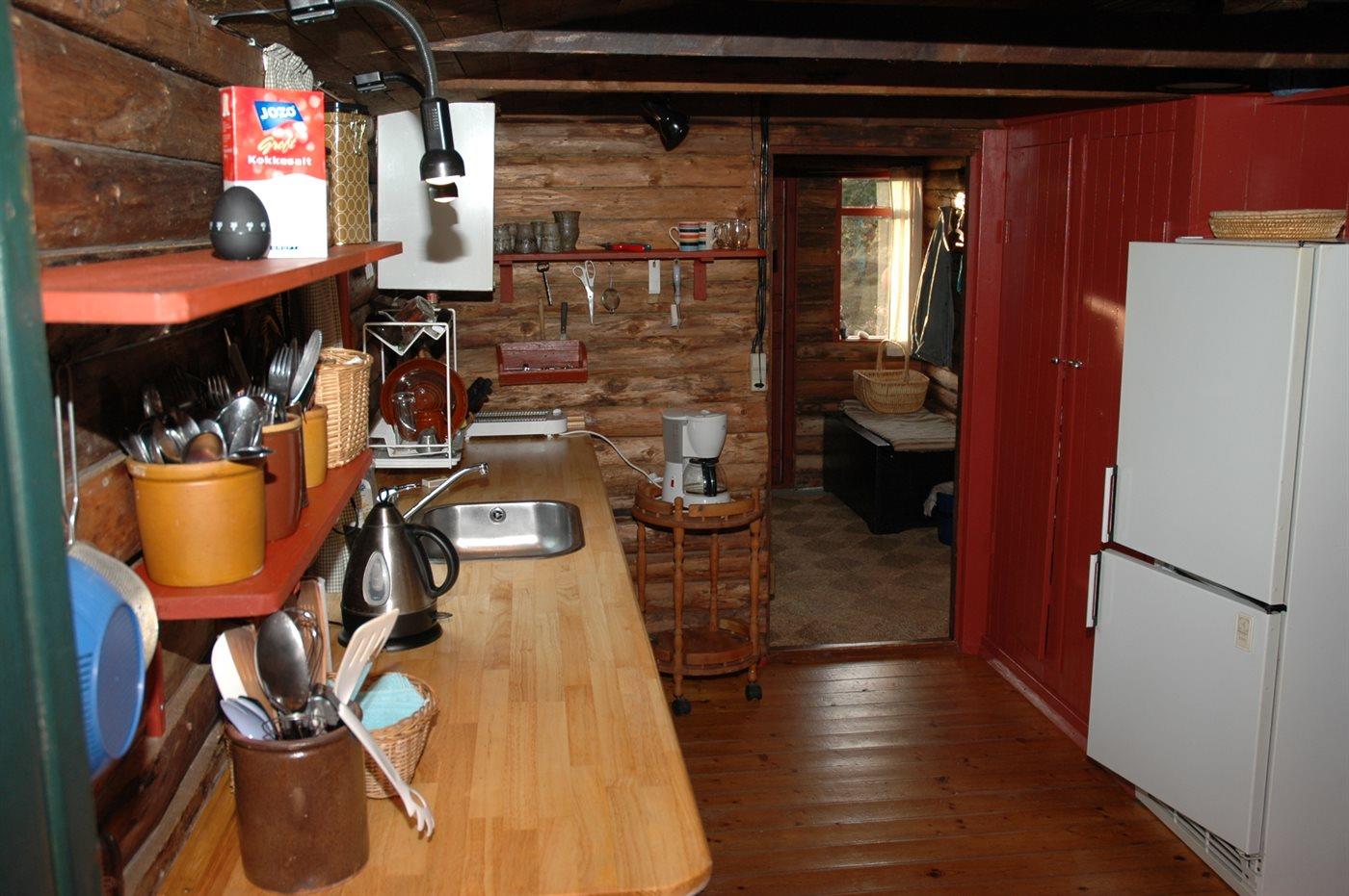 Køkkenet er udstyret med 1 køleskab. Der er 4 keramiske kogeplader, bageovn.
