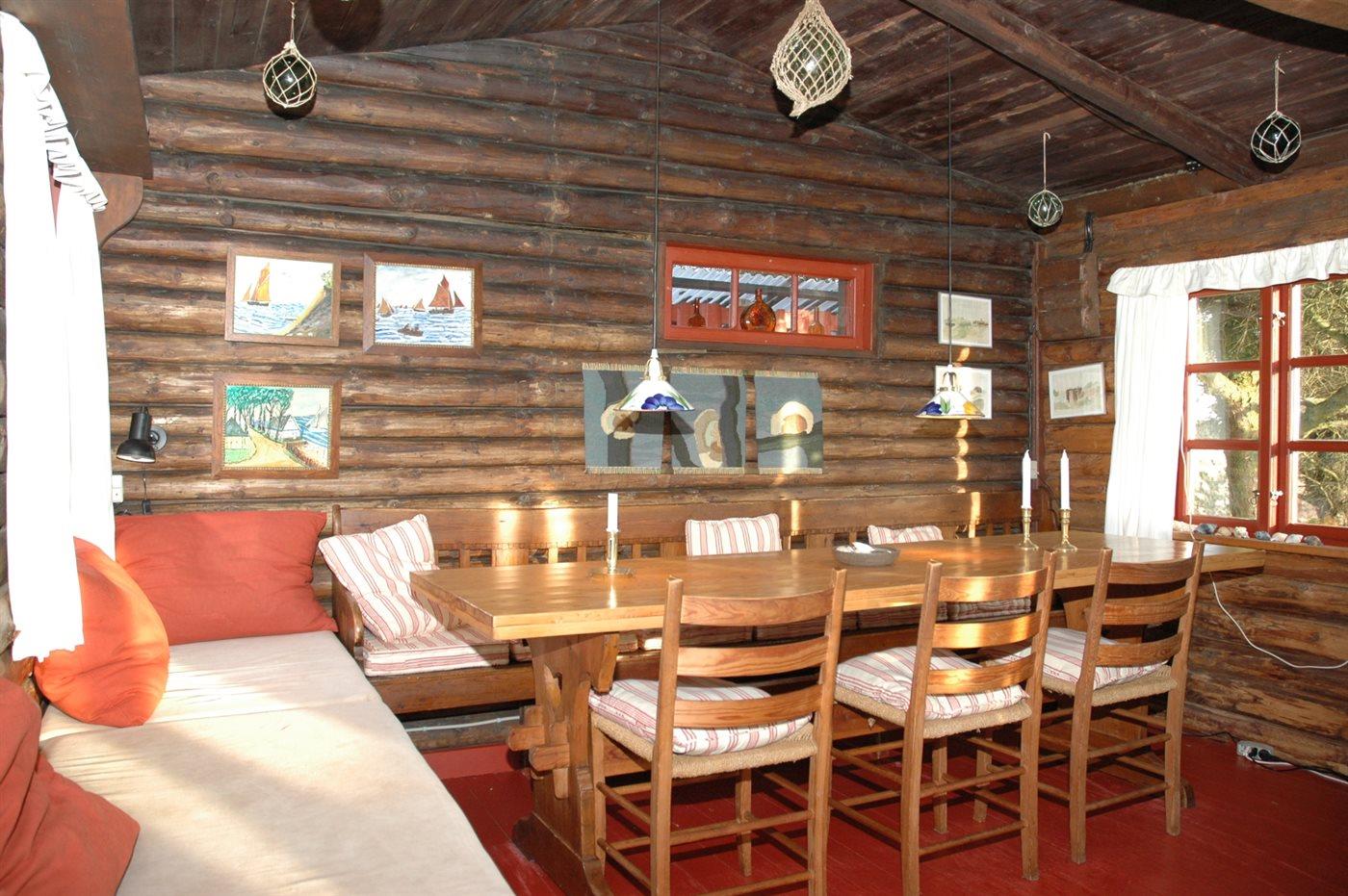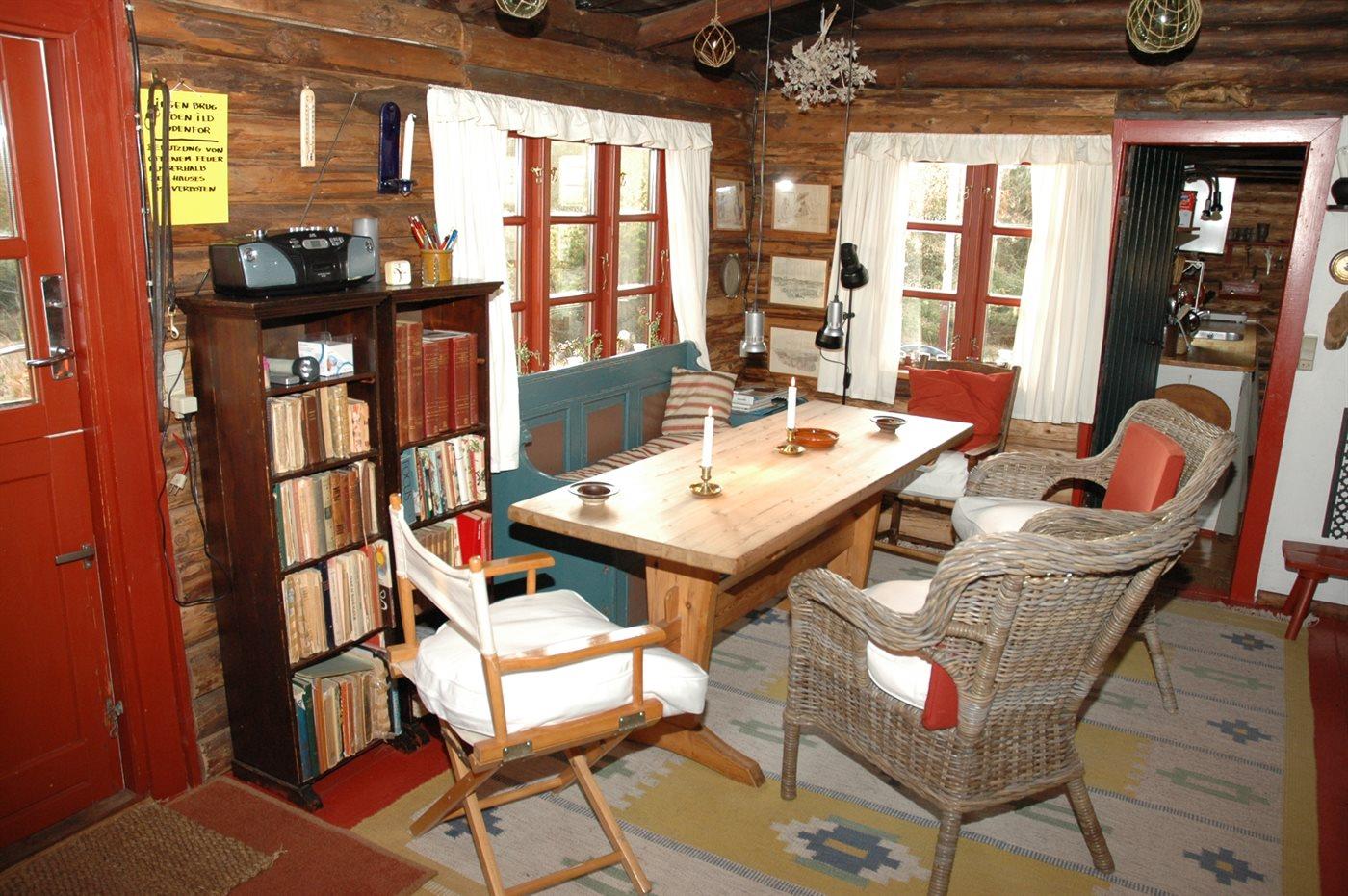 Hyggeligt norsk bjælkehus ved skov og strand i roligt ferieområde i Grærup.
