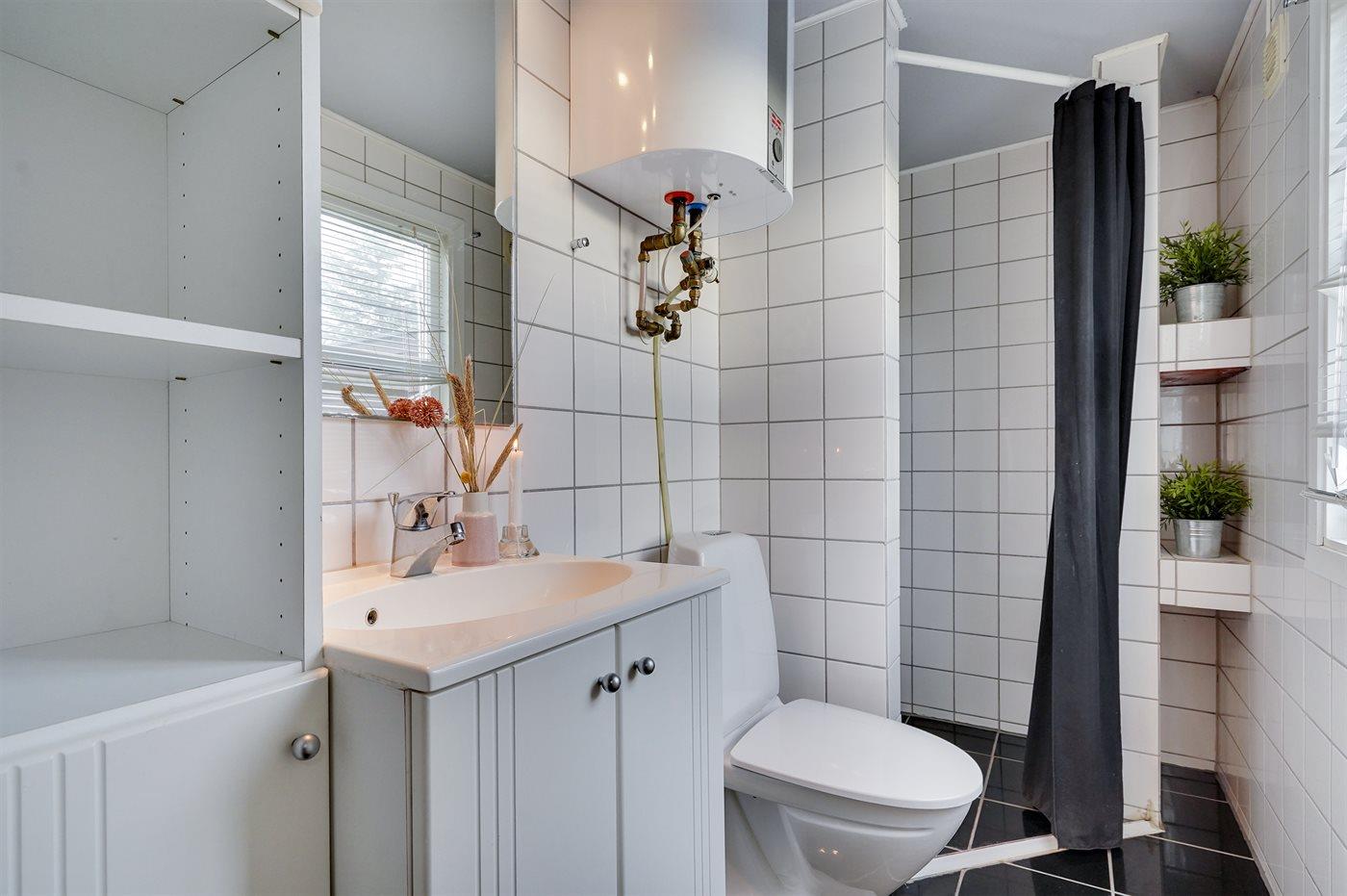 Der er 1 badeværelse med bruseniche og 1 toilet.