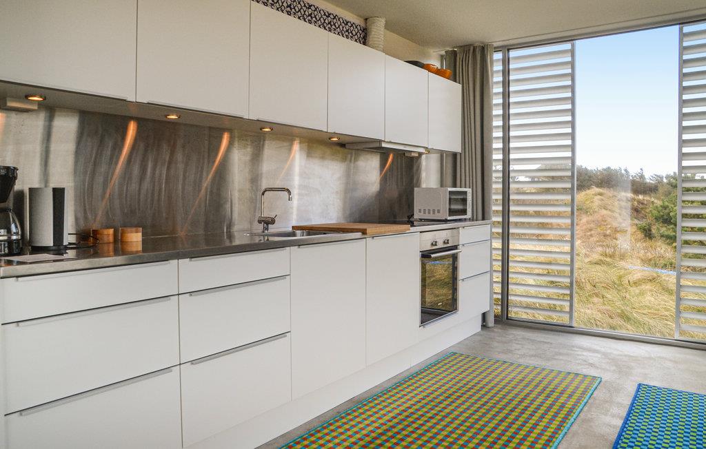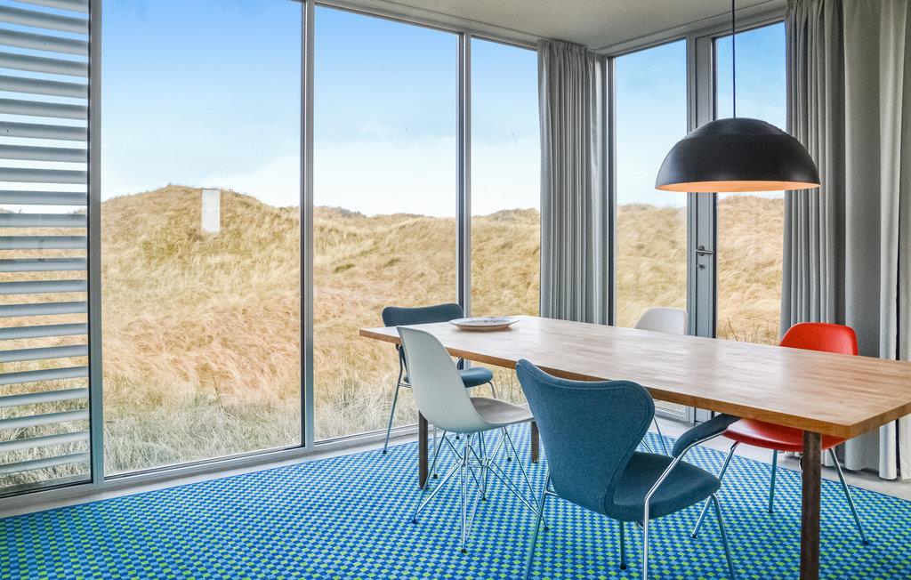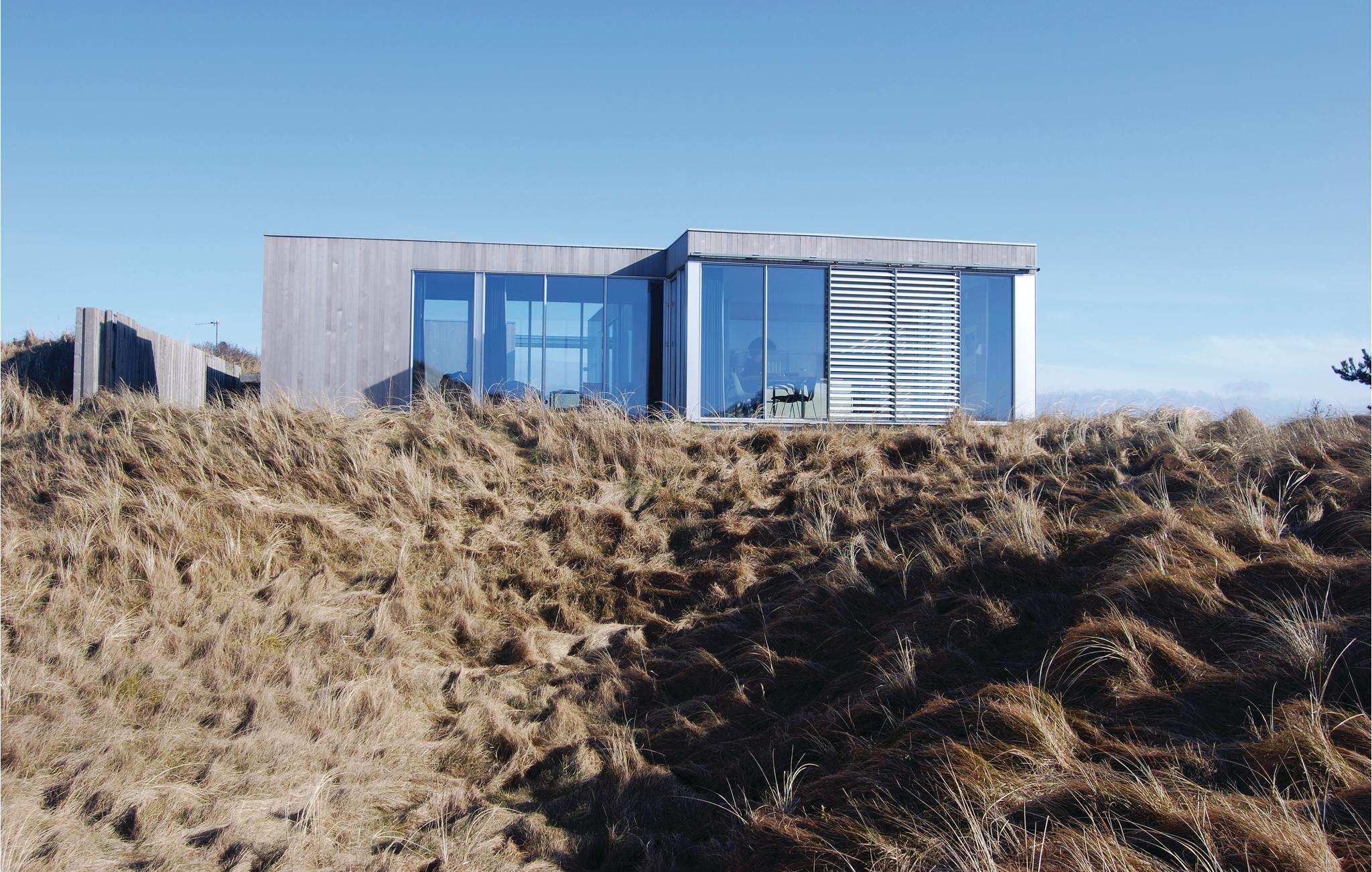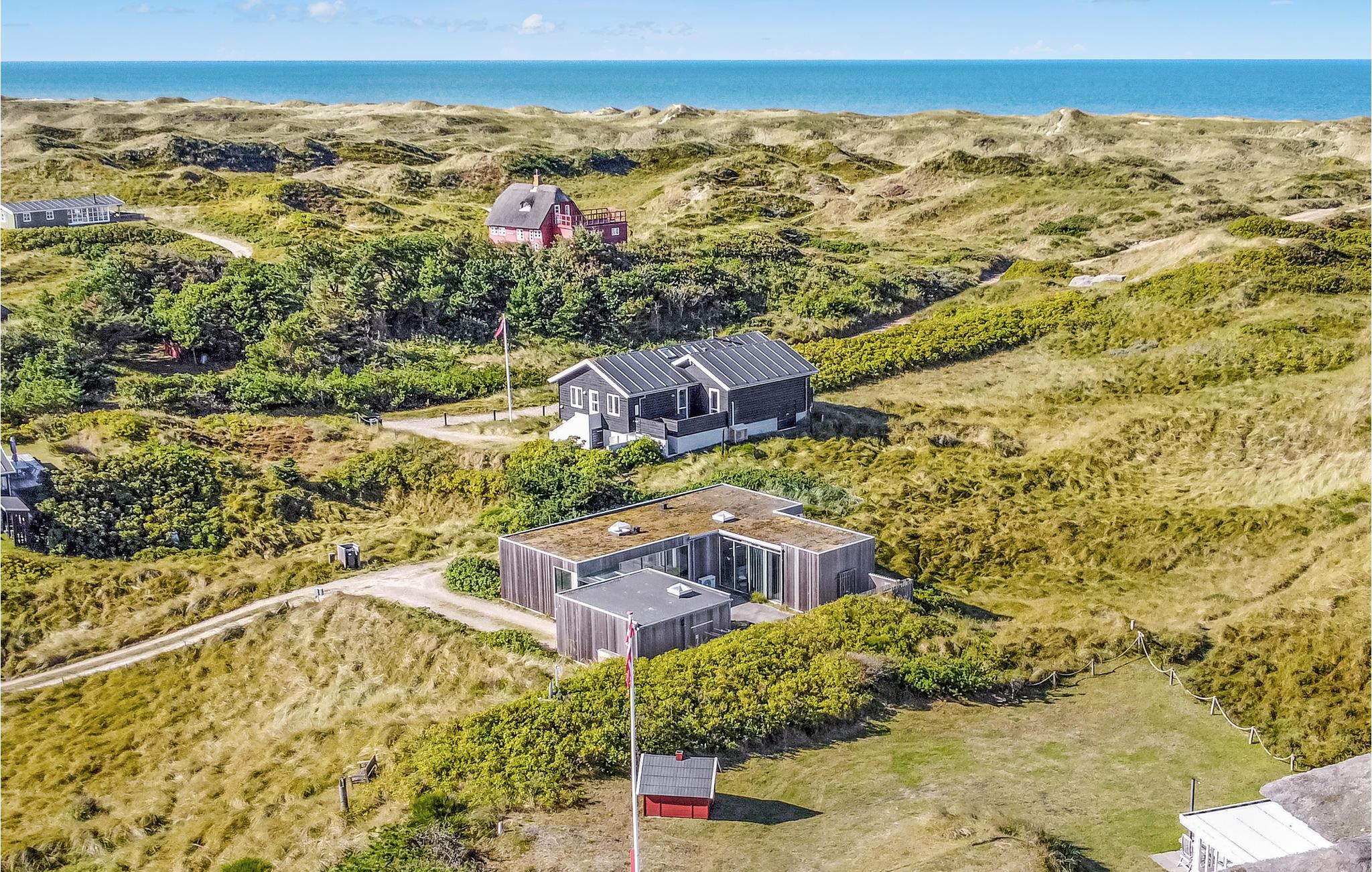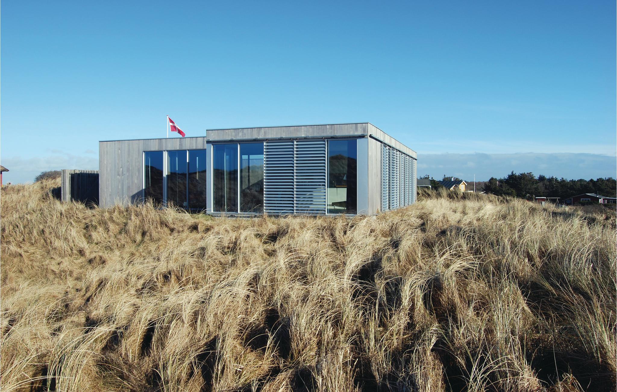 Et arkitekttegnet og meget velindrettet feriehus beliggende på toppen af en klitgrund med panoramaudsigt ud over klitterne. Huset er omgivet af flere dejlige og uforstyrrede terrasser samt har en stor solgård. Fra huset er der kun kort gåstand til stranden og det fascinerede Vesterhav. Grærup er en lille ferieby der ligger mellem Vejers og Henne, området er præget af vild natur og er perfekt til gåture. Er I ivrige lystfiskere kan Grærup Fiskesø (put and take) anbefales et besøg. Der ligger flere badelande, bowlingcentre og minigolfbaner i området, og det er oplagt at køre en tur til Esbjerg, der ligger ca. 35 km syd for Grærup. Esbjerg tilbyder et hyggeligt bymiljø, masser af butikker, kulturelle arrangementer og festivals, spændende museer og kunst samt unikke naturoplevelser.