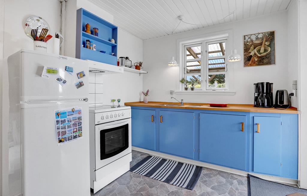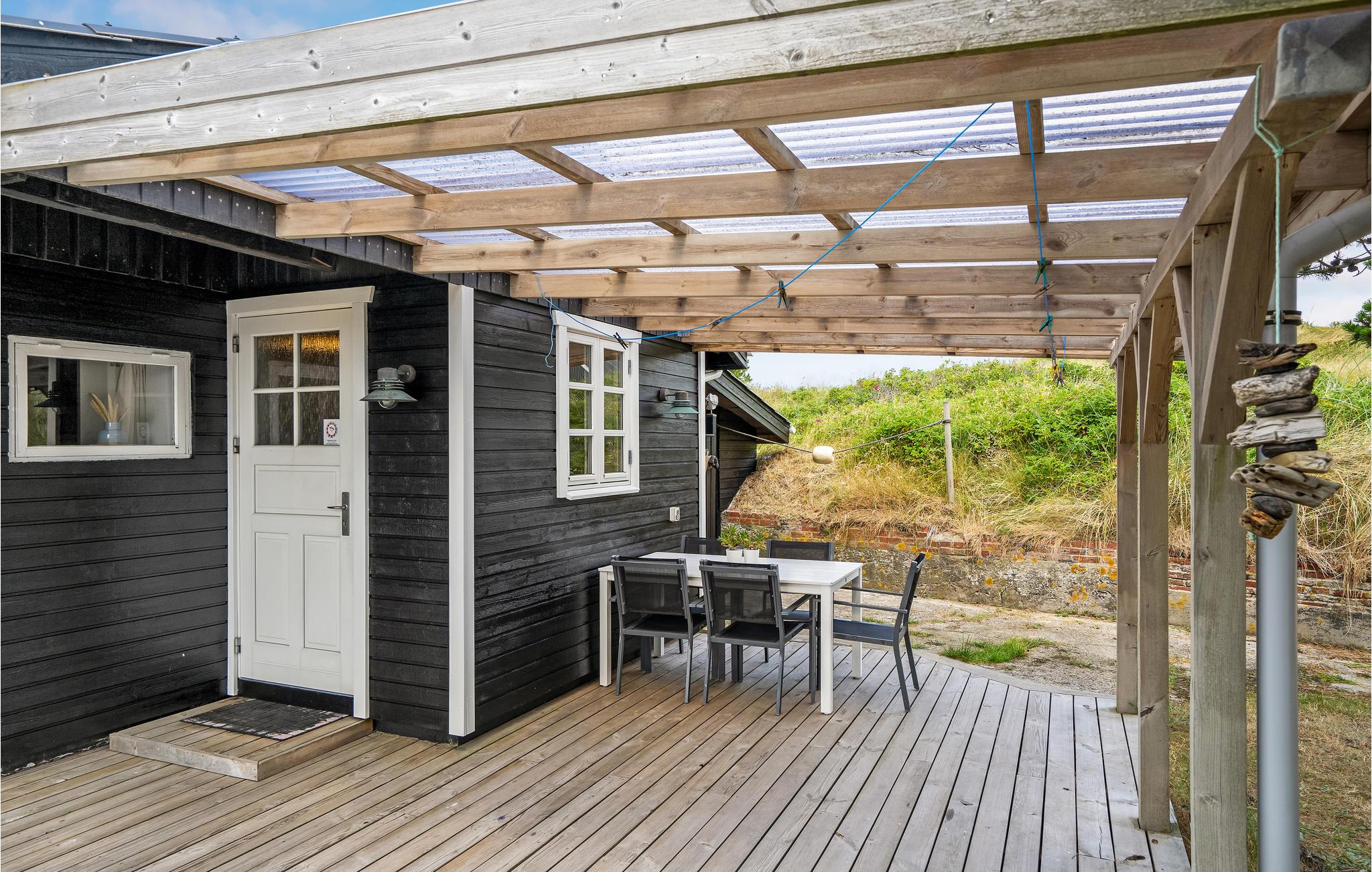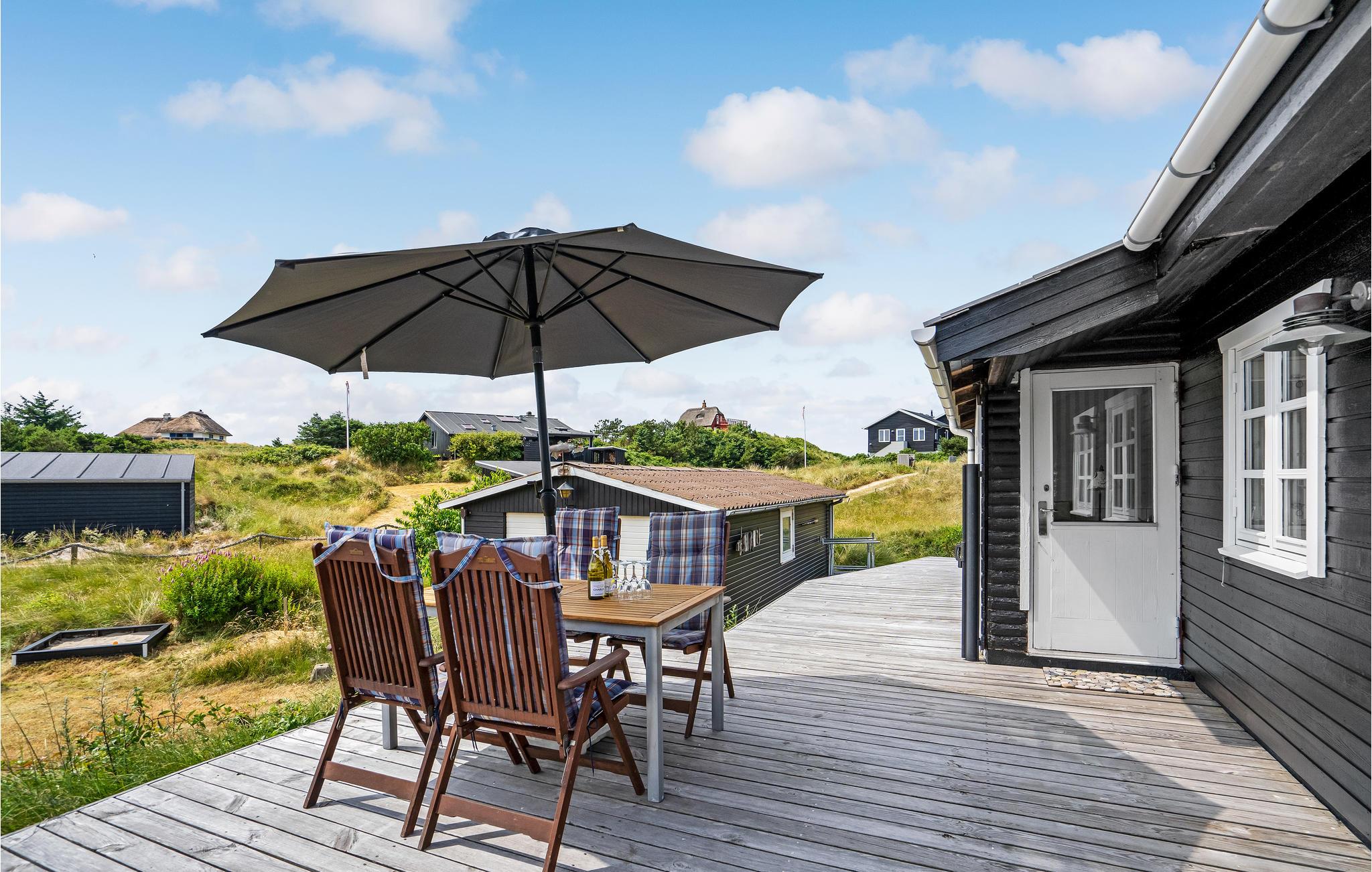 Virkelig dejligt sommerhus, beliggende på en lille klittop og ude midt i Grærup Strand. Grærup Strand er en utrolig hyggelig og flot naturperle med egen sandstrand og et utal af naturstier. Sommerhuset er godt indrettet med et praktisk køkken/alrum, gode soveværelser samt et fint badeværelse. Huset er omgivet af flere dejlige, delvis overdækkede terrasser. Husk endelig cyklen og vandreskoene, da området har et utal af gode naturstier, og der går en cykelsti til Vejers Strand i syd og til Henne Strand i nord. Området har også en put and take fiskesø, hvortil der dog kræves fiskekort (mod betaling). Fra sommerhuset er der kort afstand til Grærup Langsø, der ligger i et stort fredet område. Her er et alsidigt fugleliv, da søen fungerer som en vigtig rasteplads for trækfugle.