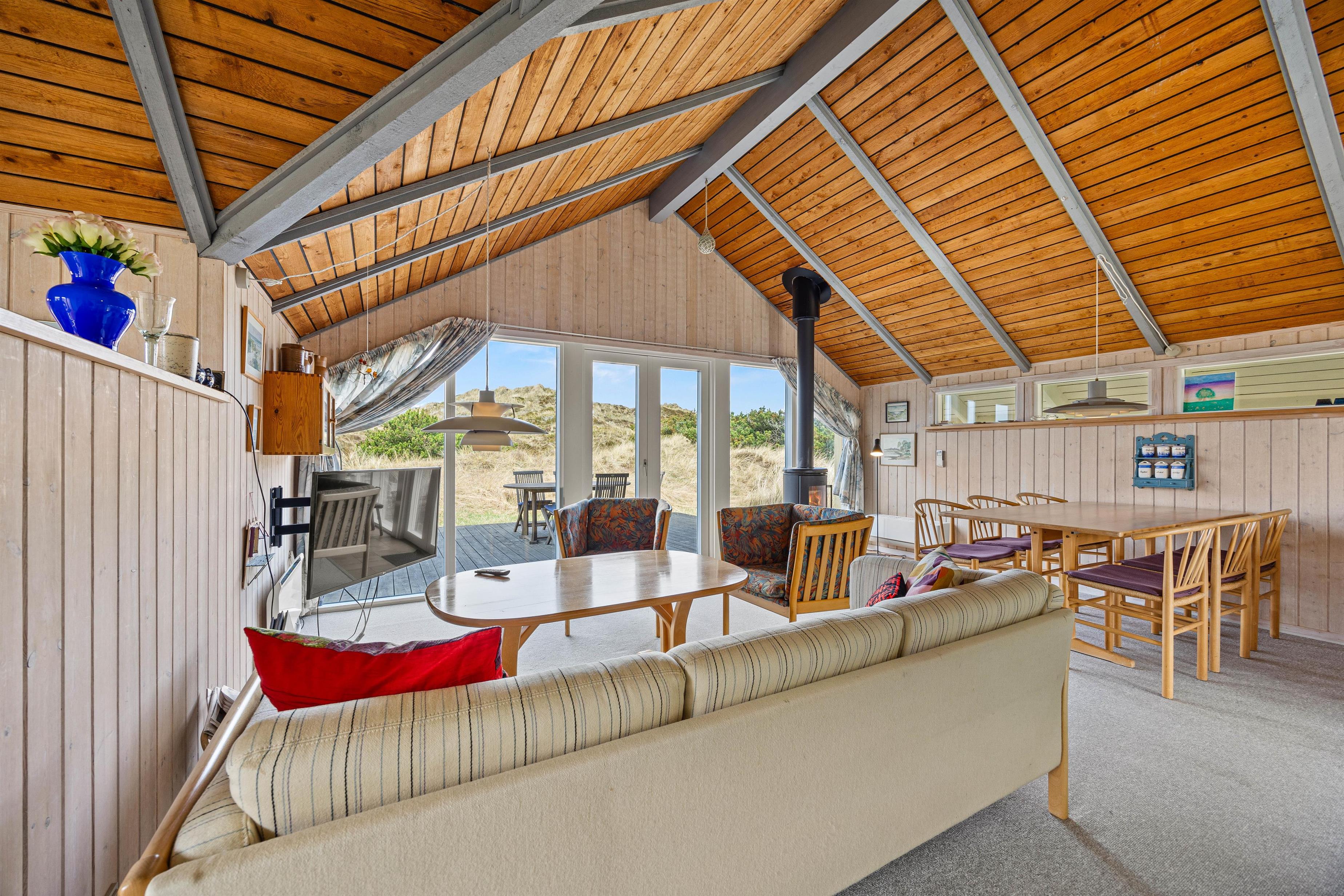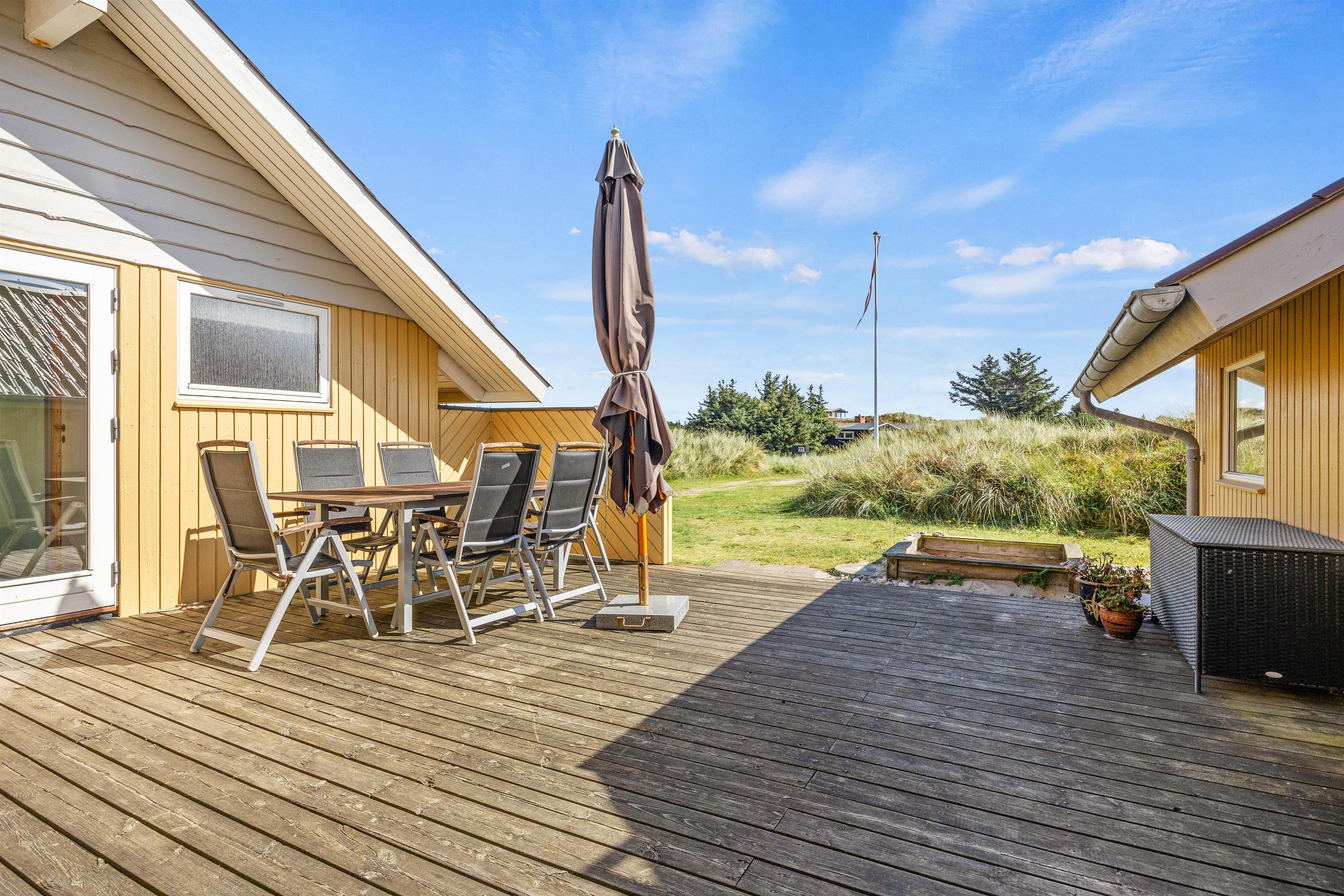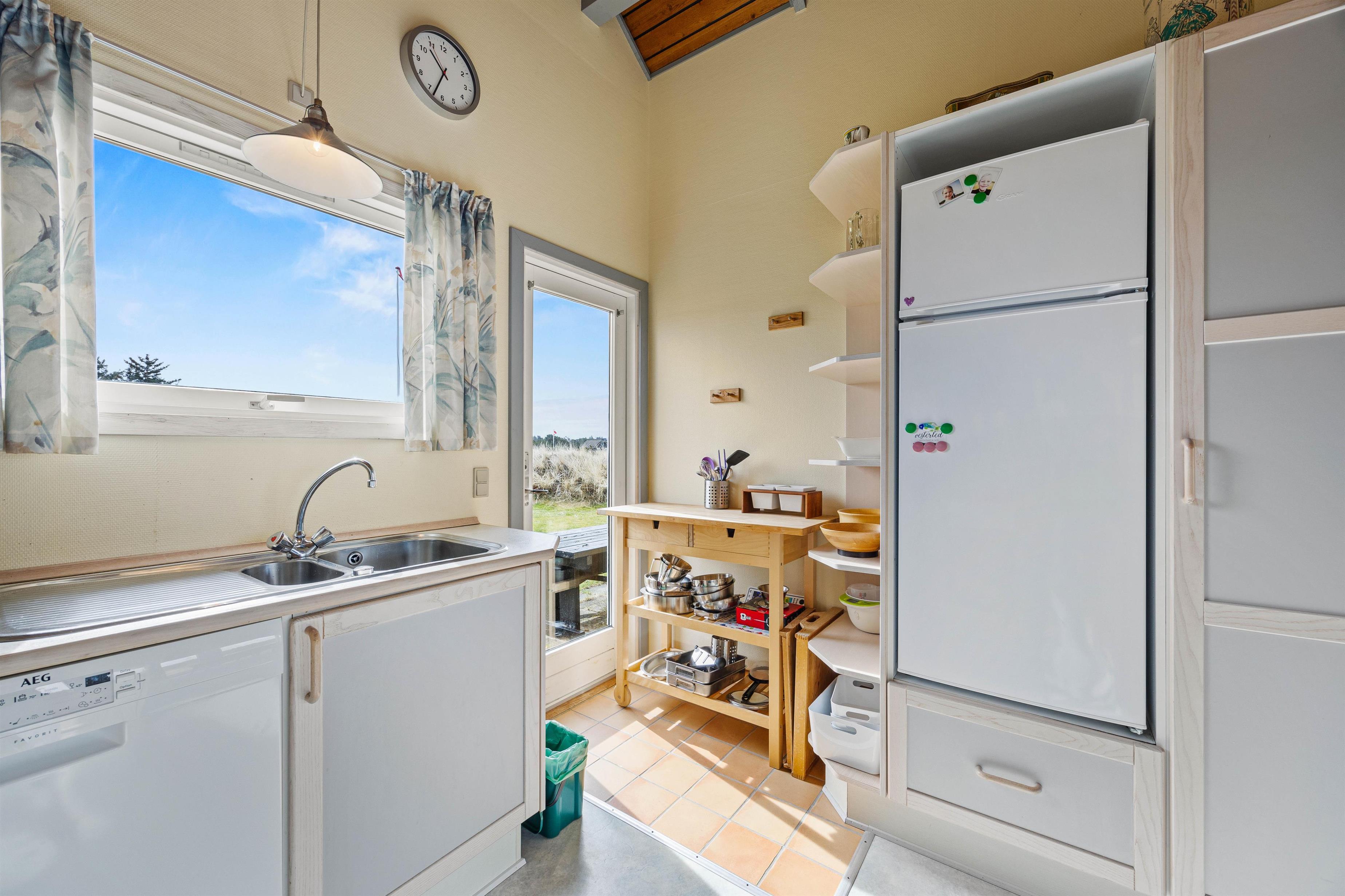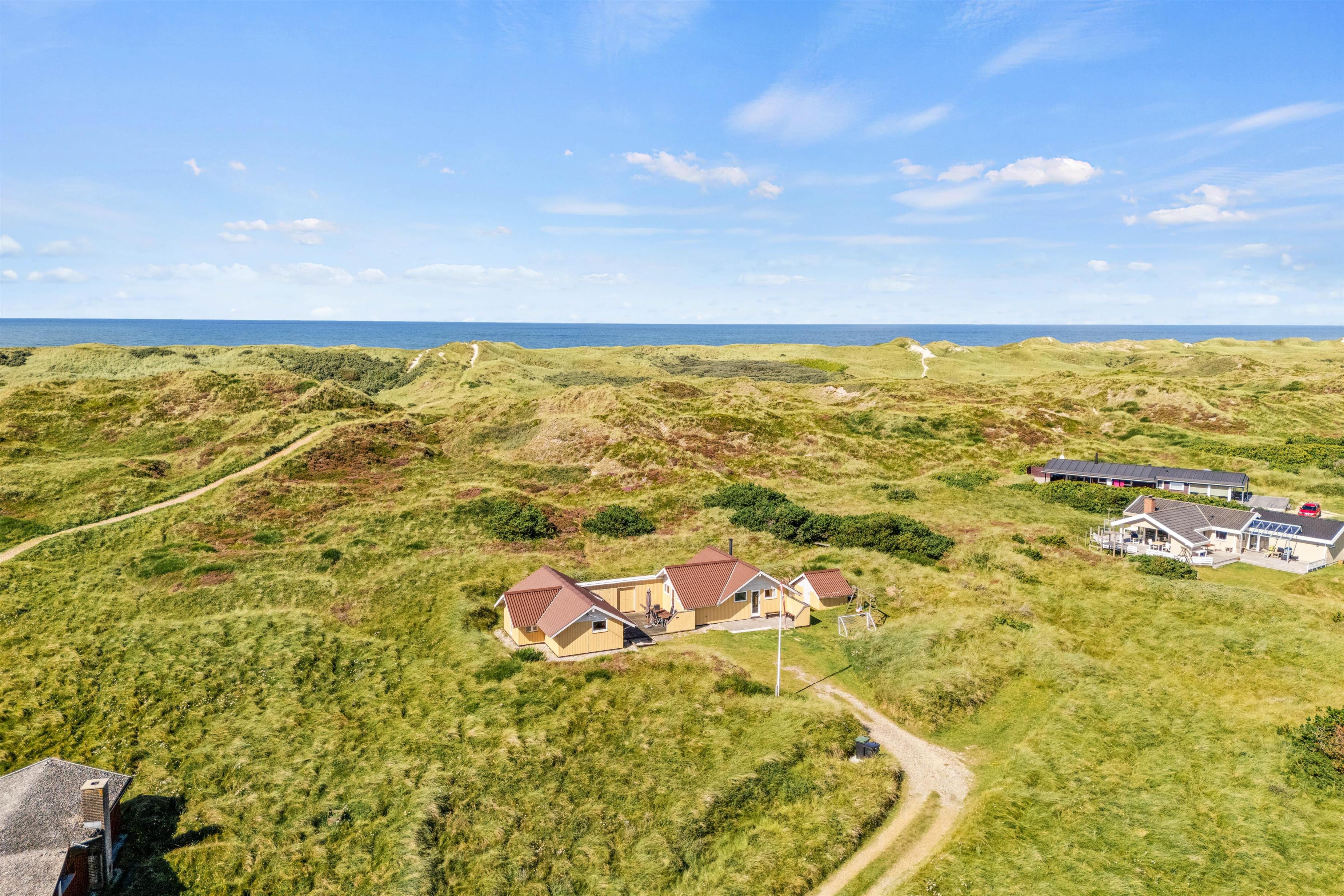 Det 3.300 m² store klitgrundstykke giver rigelig plads til leg og udforskning. Jeres børn vil elske gyngen og sandkassen, mens I kan bruge grillen på den åbne terrasse til at nyde lækre måltider i den friske luft. Den nærliggende strand er kun 200 meter væk og inviterer til hyggelige gåture eller spændende timer ved havet. Hvis I ønsker at medbringe jeres elskede firbenede ven, er feriehuset kæledyrsvenligt og tillader en hund.
