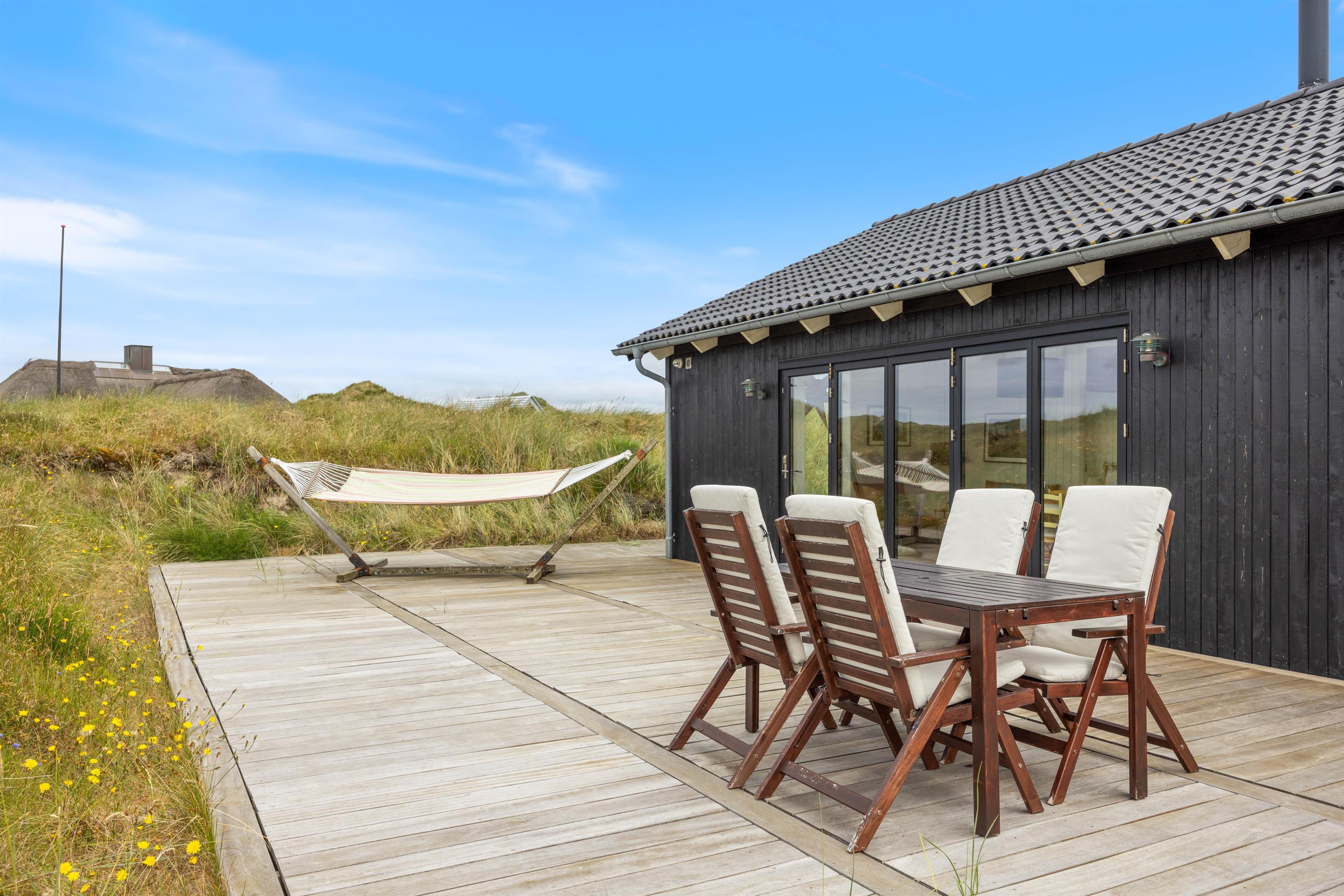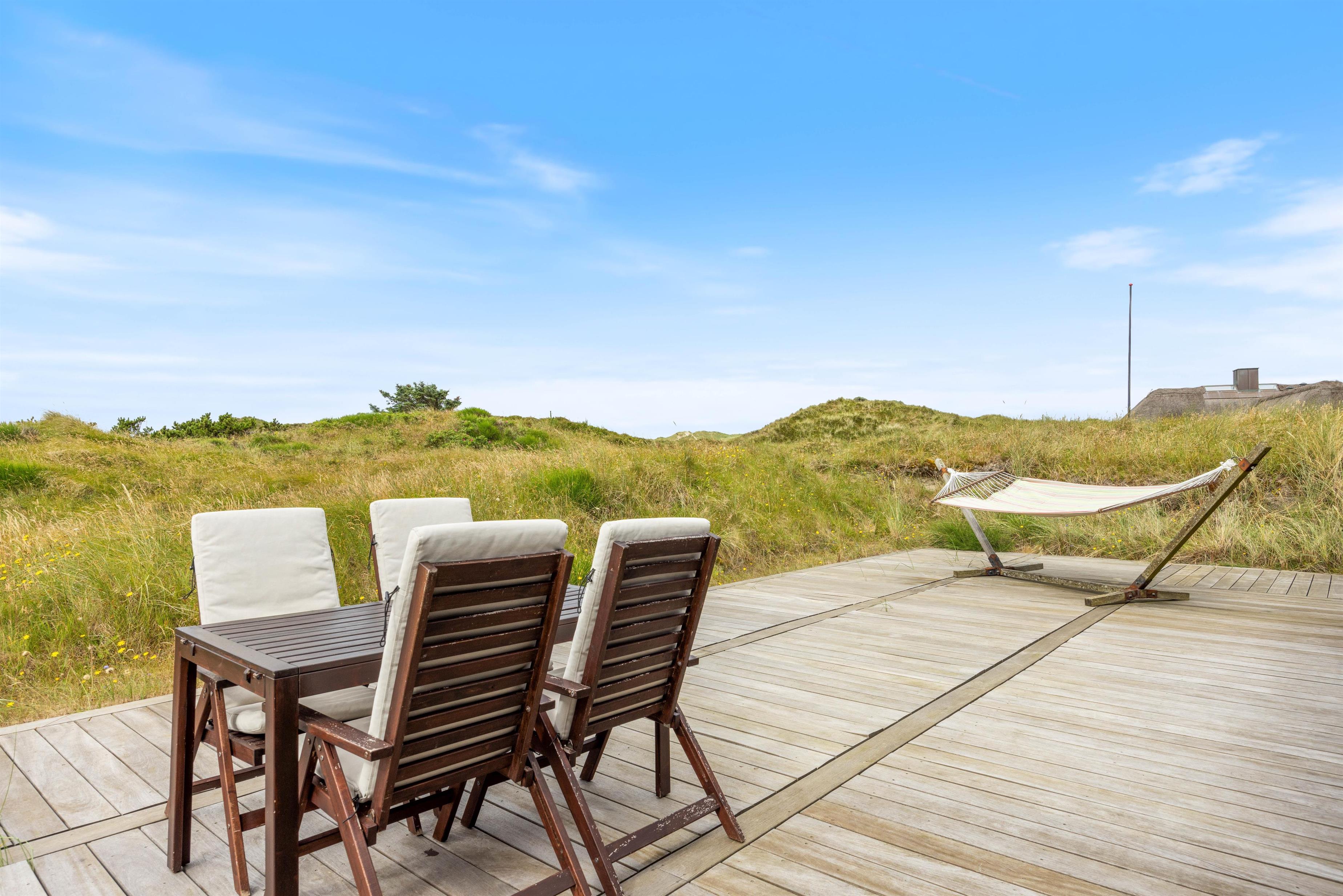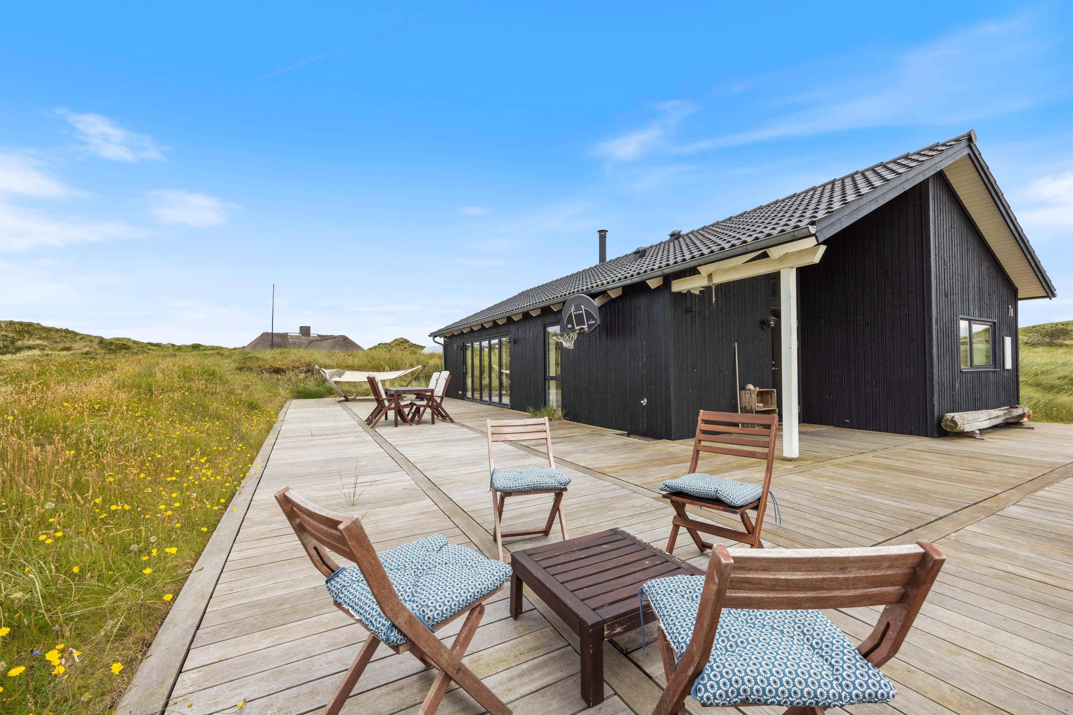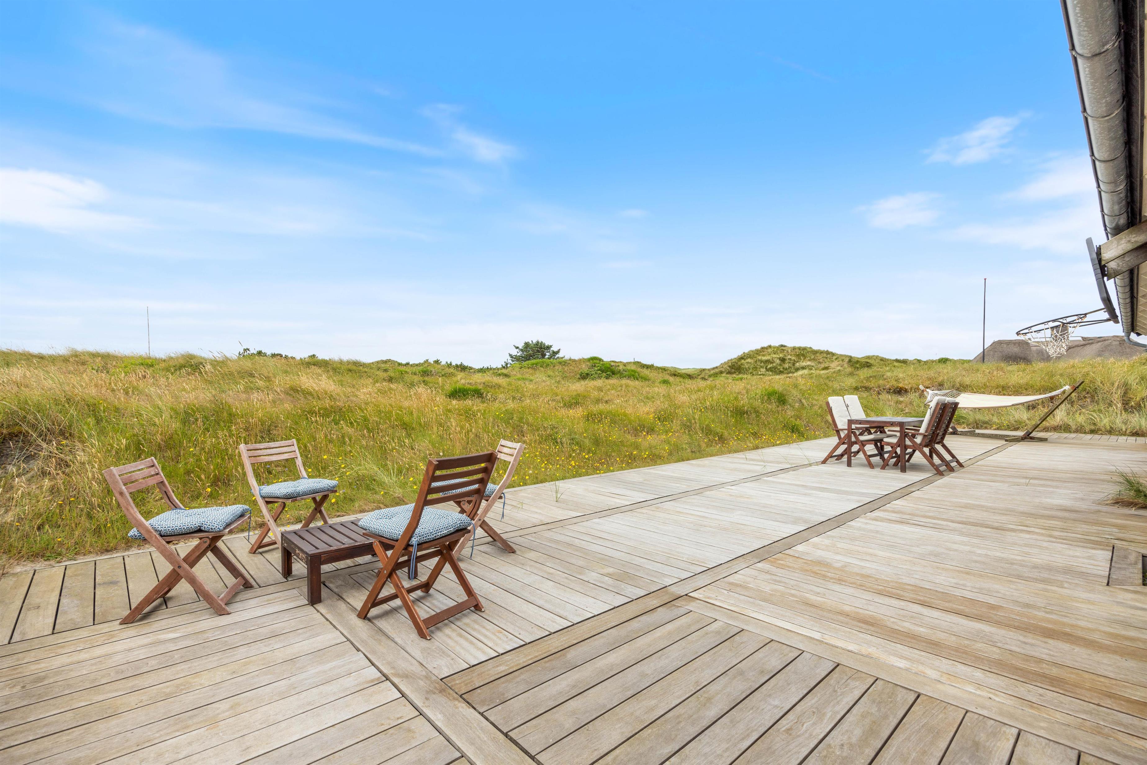 Dette skønne sommerhus ligger i udkanten af sommerhusområdet, lige ud til klitlandskabet og indbyder til lange gåture og måske en frisk tur på mountainbike. I Vejers Strand ligger der flere restauranter og små butikker, men har I lyst til mere shopping ligger Blåvand med sin livlige hovedgade ikke langt væk. Faktisk er hele Vestkystens attraktioner inden for kort køreafstand og sidst men ikke mindst ligger den lange hvide sandstrand så tæt på, at en gåtur langs vandet for at samle sten, muslingeskaller og måske finde rav næsten er obligatorisk.