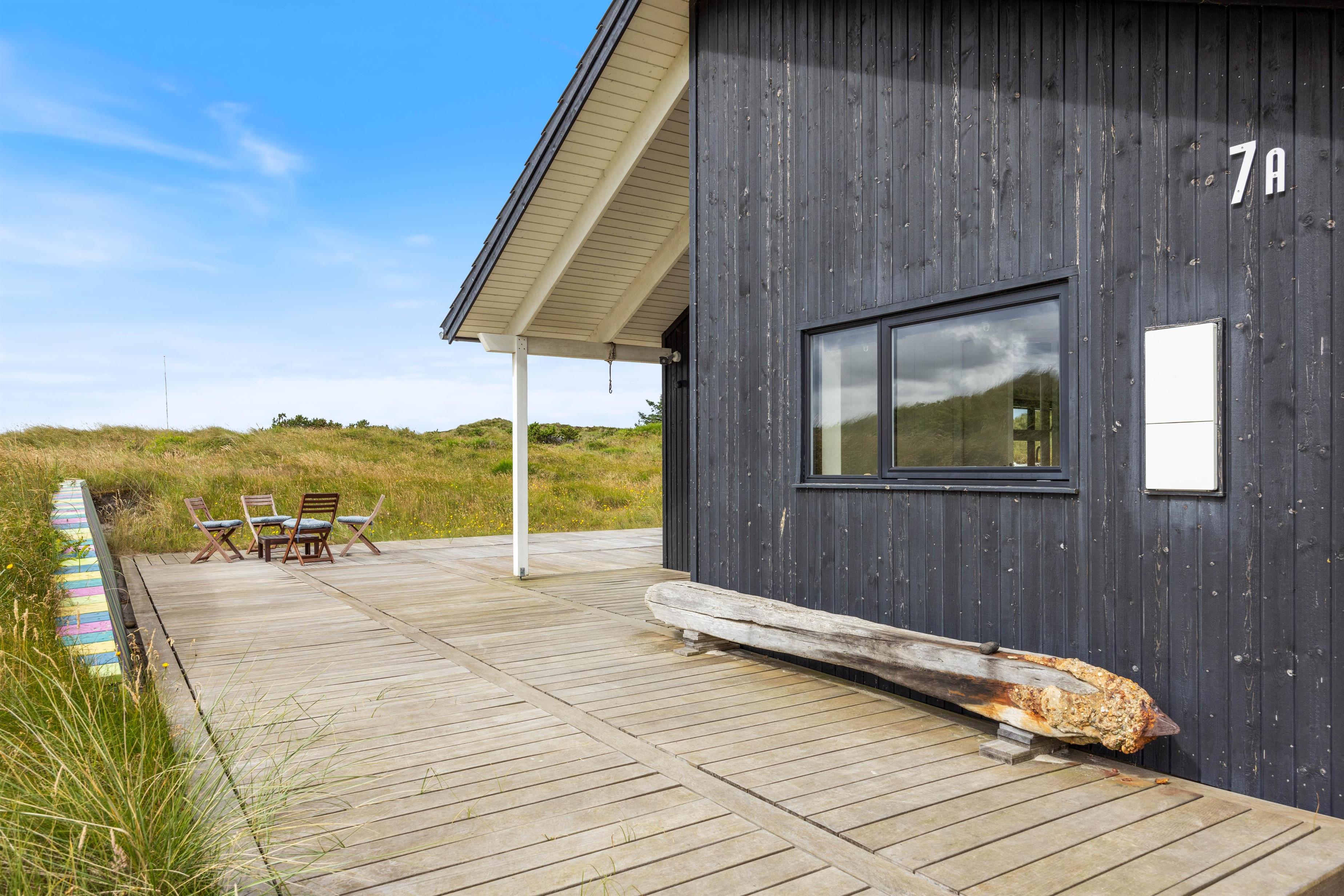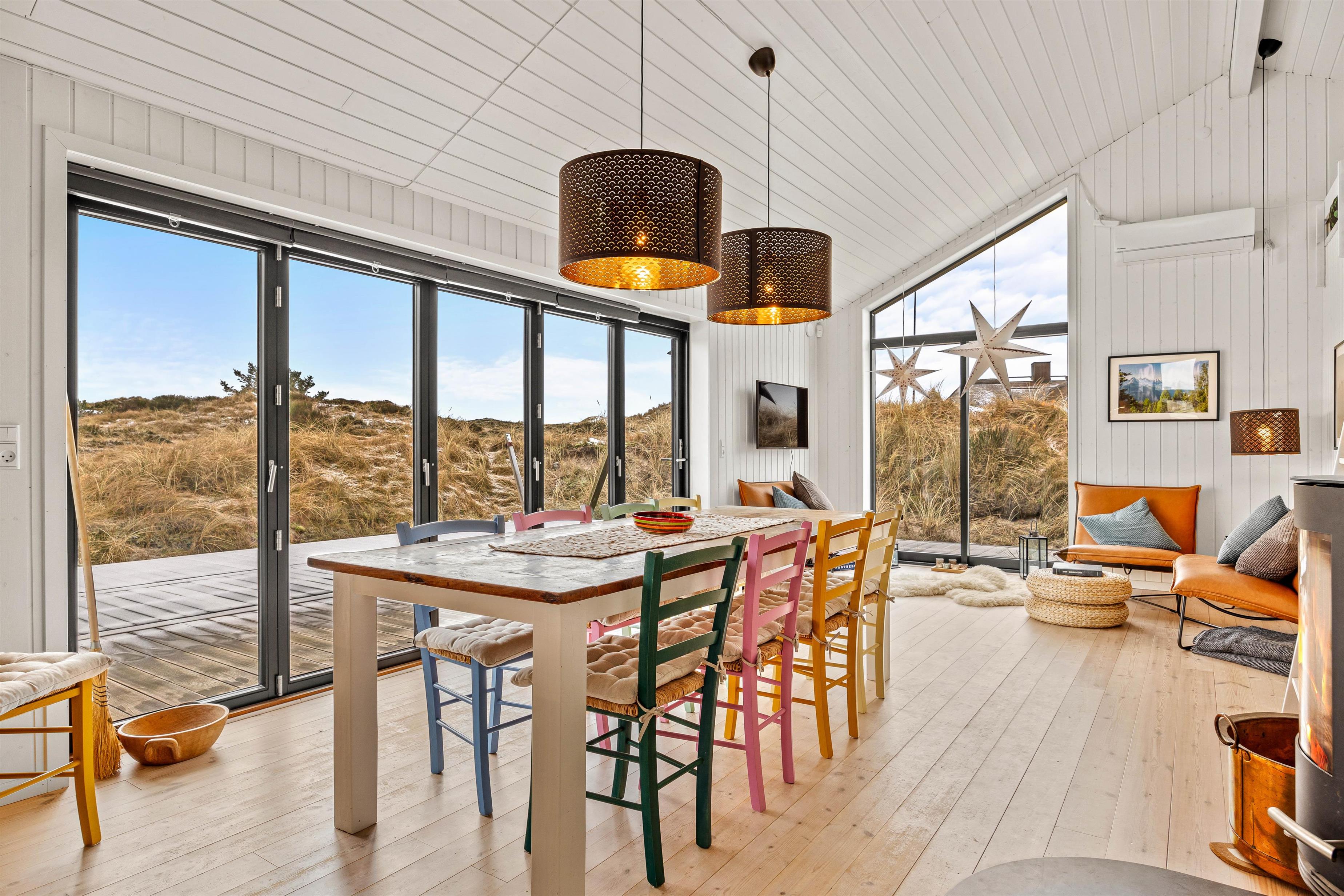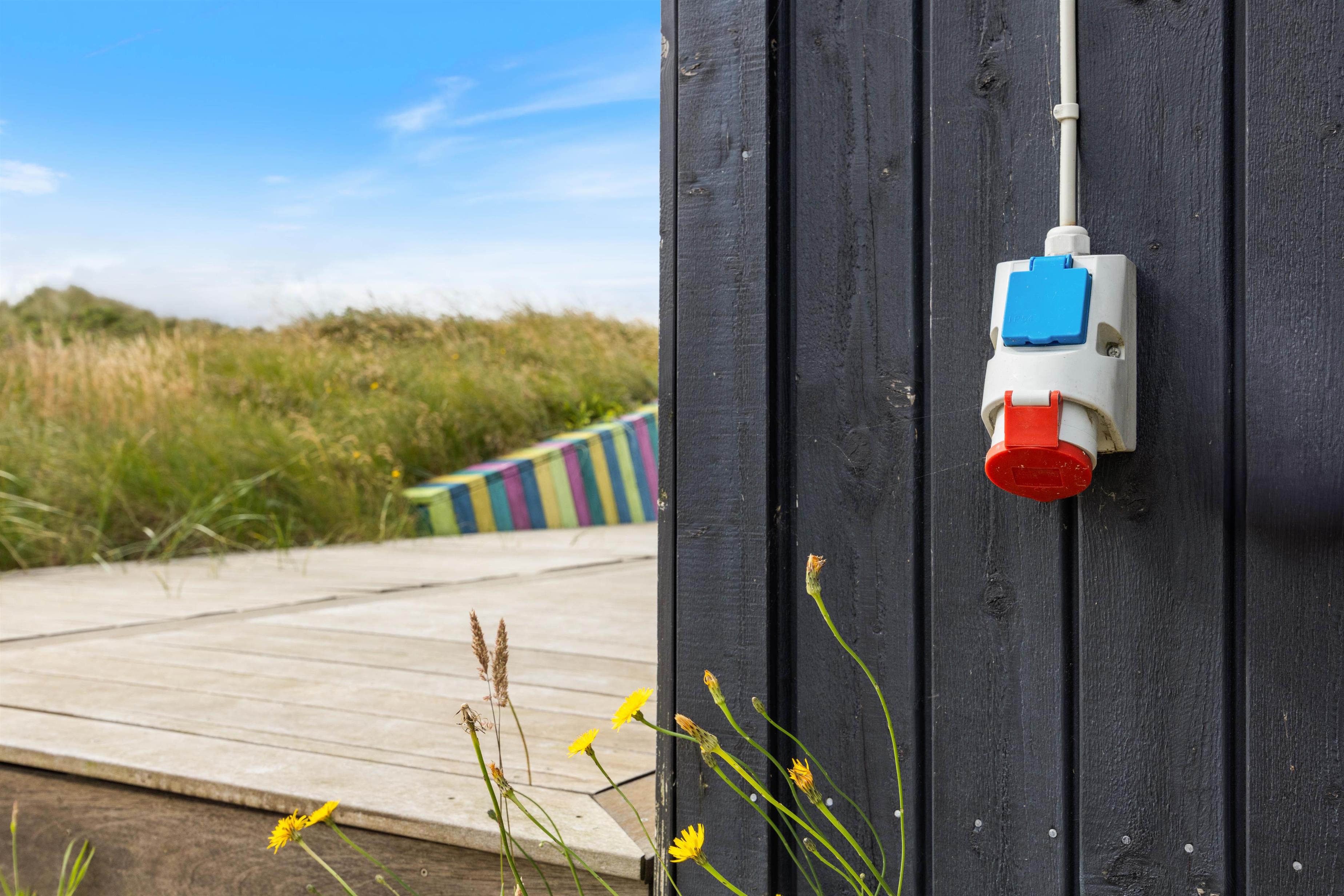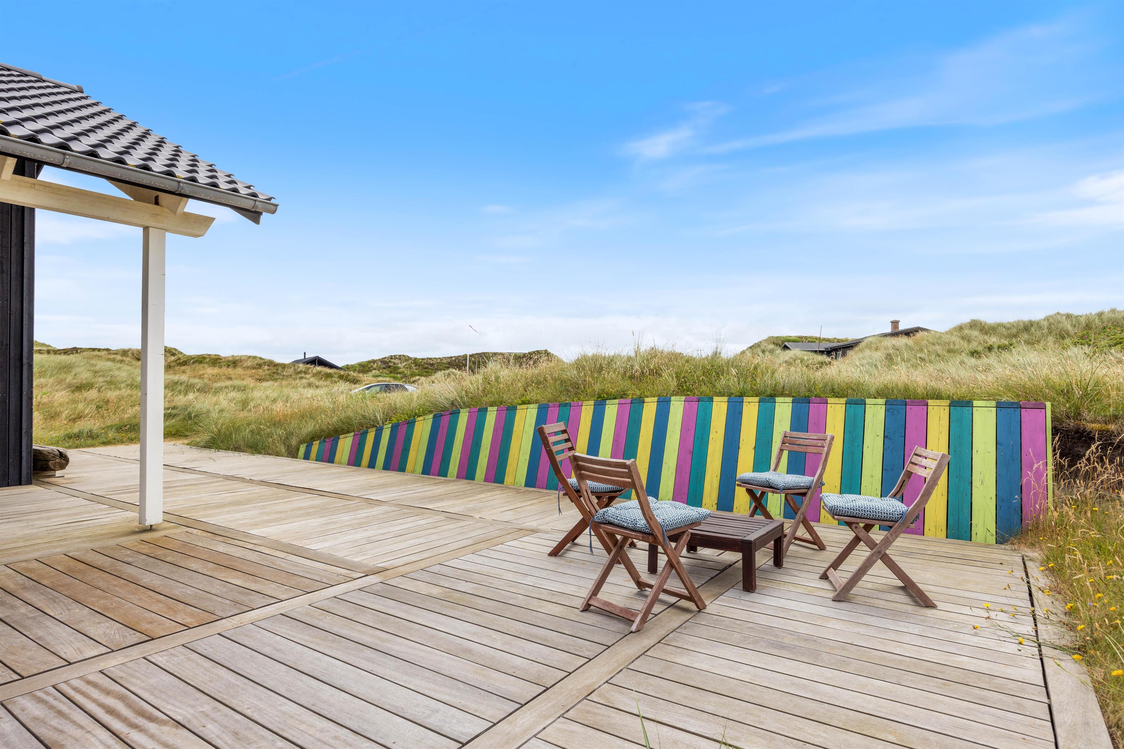 Dette skønne sommerhus ligger i udkanten af sommerhusområdet, lige ud til klitlandskabet og indbyder til lange gåture og måske en frisk tur på mountainbike. I Vejers Strand ligger der flere restauranter og små butikker, men har I lyst til mere shopping ligger Blåvand med sin livlige hovedgade ikke langt væk. Faktisk er hele Vestkystens attraktioner inden for kort køreafstand og sidst men ikke mindst ligger den lange hvide sandstrand så tæt på, at en gåtur langs vandet for at samle sten, muslingeskaller og måske finde rav næsten er obligatorisk.