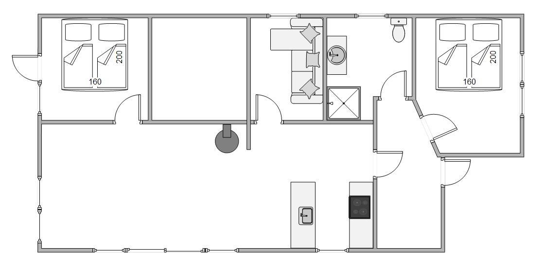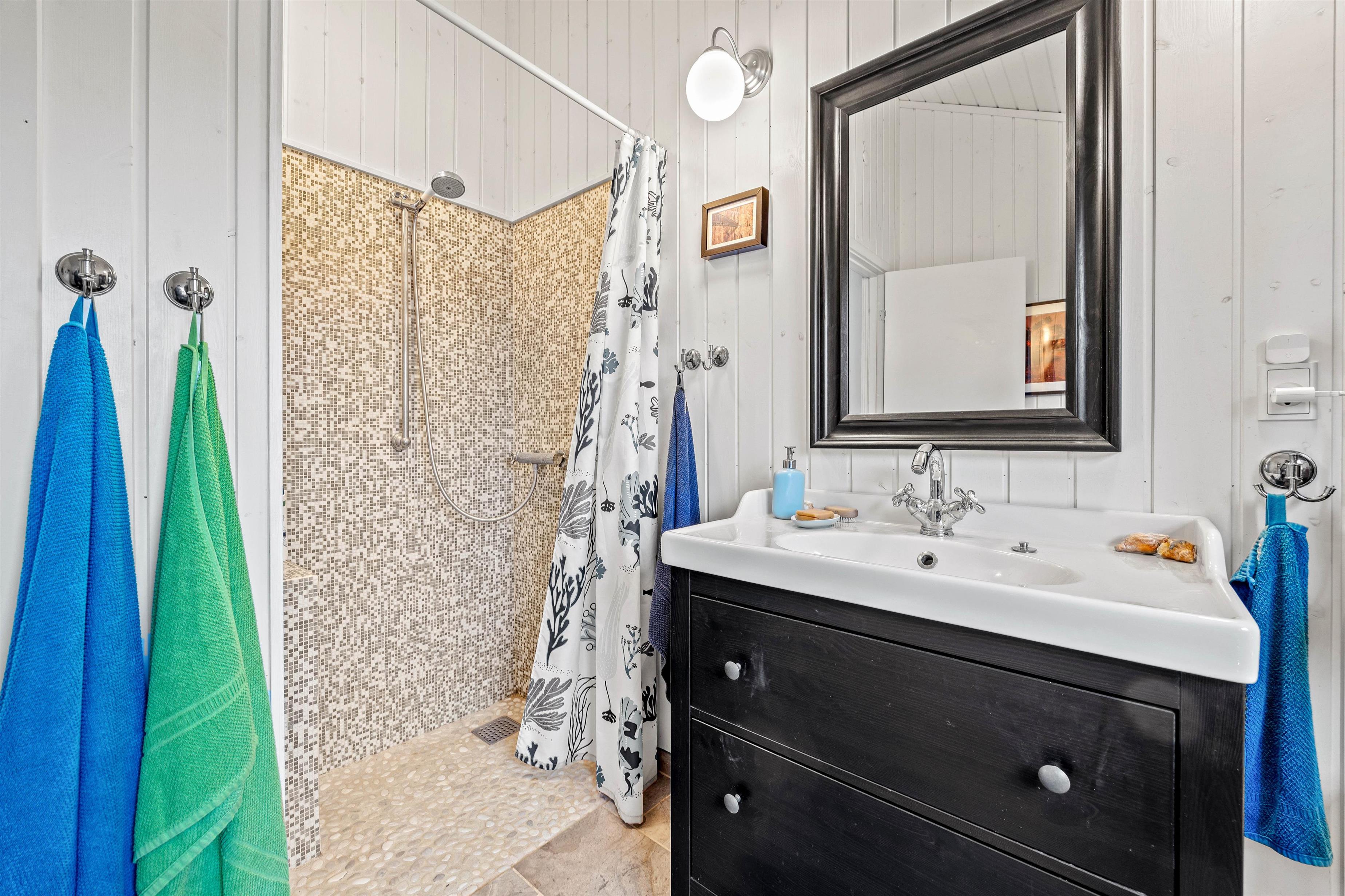 Der er 3 soveværelser i sommerhuset– 2 med dobbeltsenge og det sidste med en sovesofa. Her kan I falde i søvn til lyden af bølgernes brusen og vågne friske og veludhvilede til dagens aktiviteter. Sommerhusets ene badeværelse har dejlig gulvvarme og skuffer til opbevaring af toiletsager. Der er desuden vaskemaskine og tørretumbler til jeres rådighed.