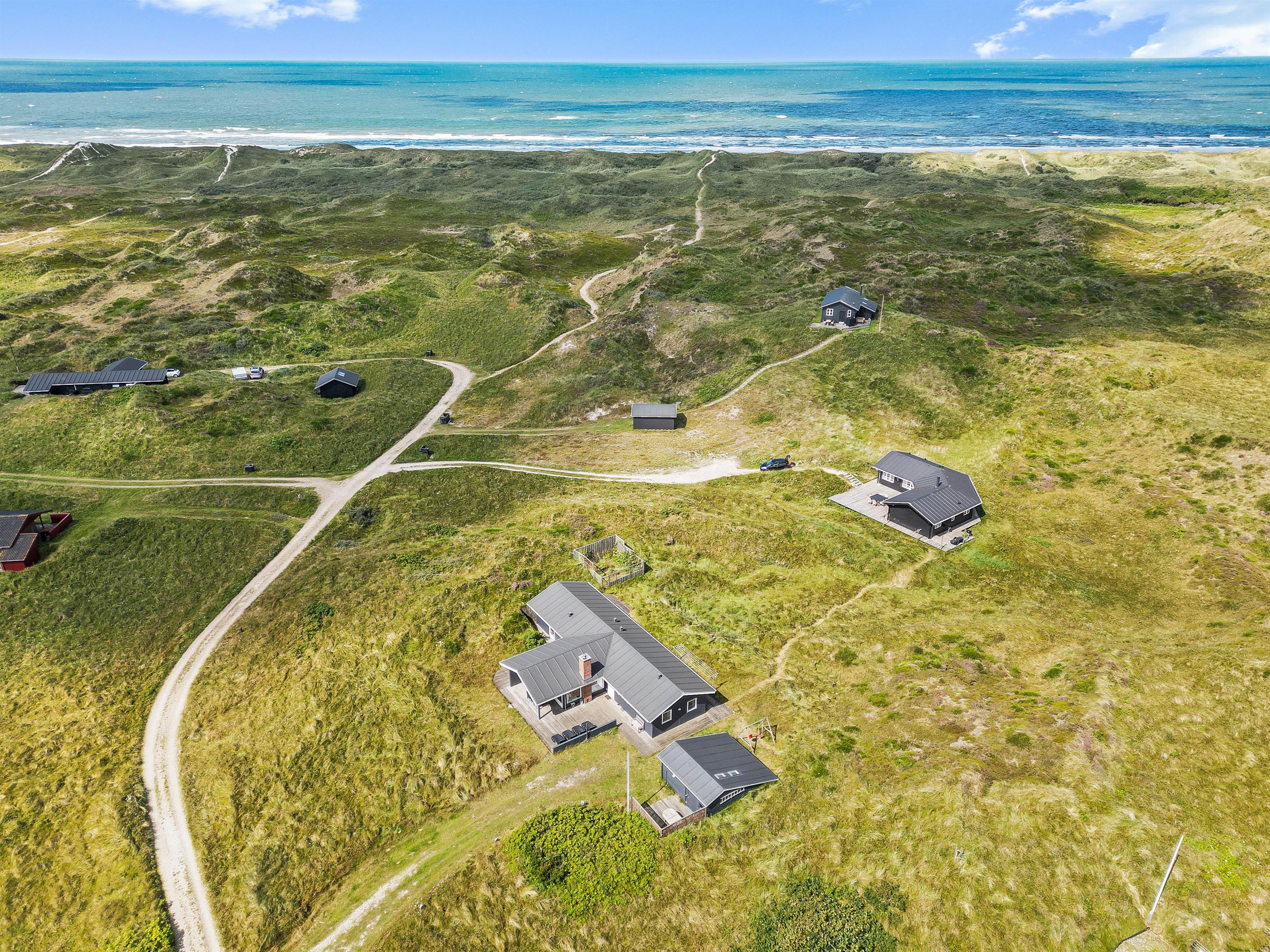 En kort gåtur på 350 meter igennem det smukke klitlandskab fører jer til den fine sandstrand og Vesterhavet. Her kan I studere havfuglene og krabbekutterne, imens I nyder den betagende vestkystnatur.