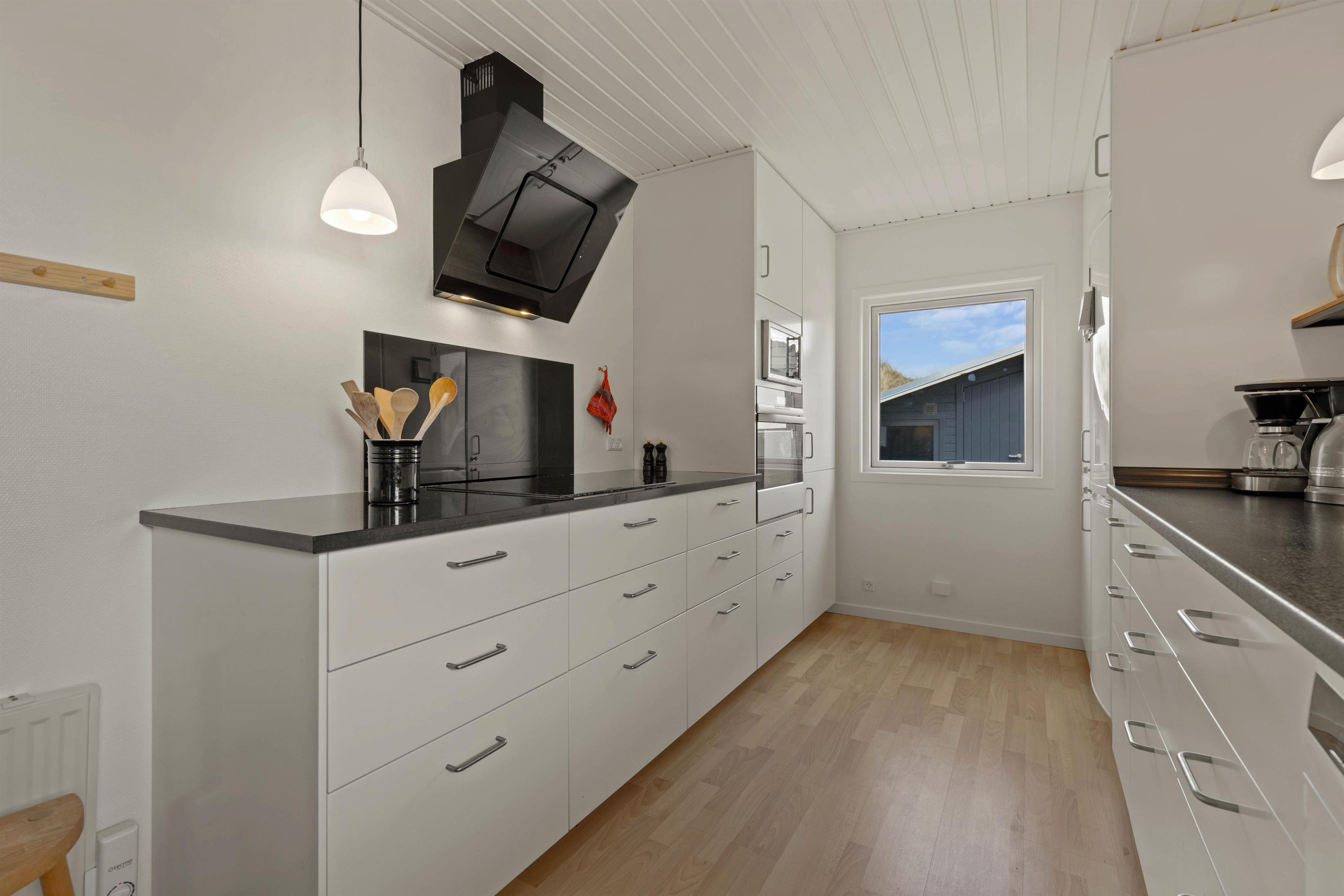 Det moderne køkken er udstyret med alt, hvad I behøver for at forkæle hinanden med lækre retter - her kan I lave mad sammen i givende arbejdsfællesskaber. Der er 4 værelser i feriehuset, 2 med dobbeltsenge, 1 med to enkeltsenge og 1 med en dobbelt sovesofa. Her kan I hvile ud og sove rigtig godt i den friske vesterhavsluft.