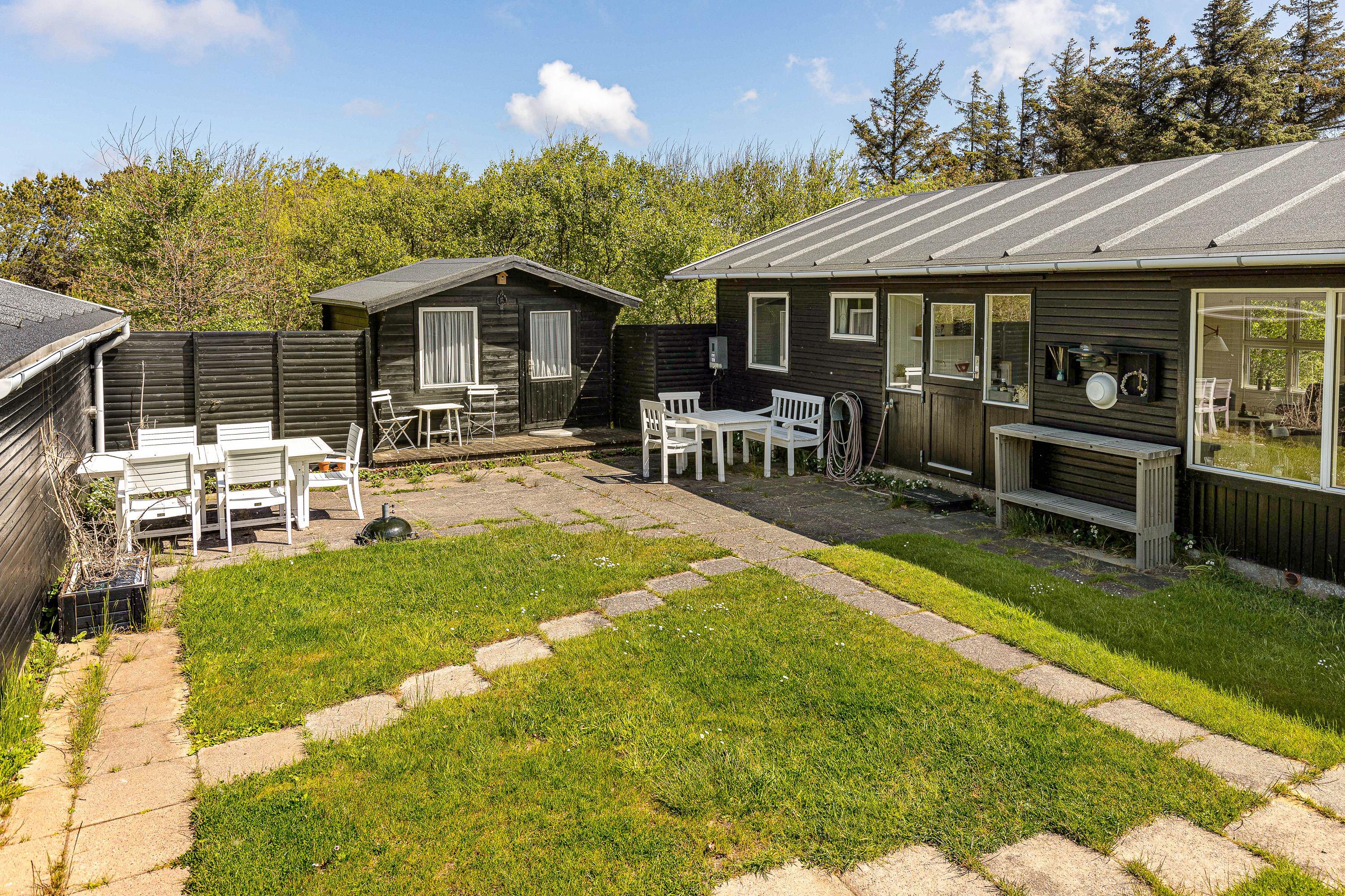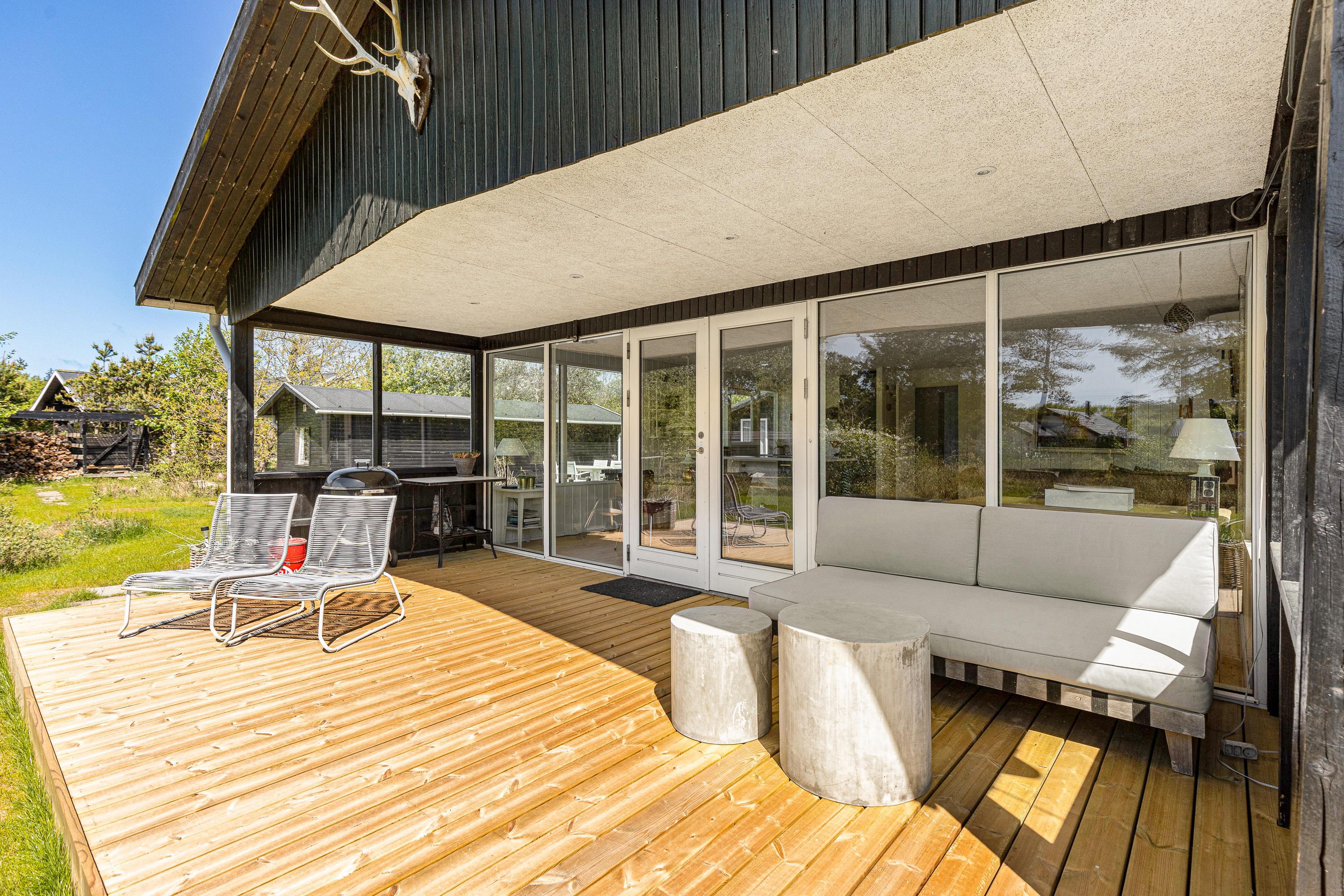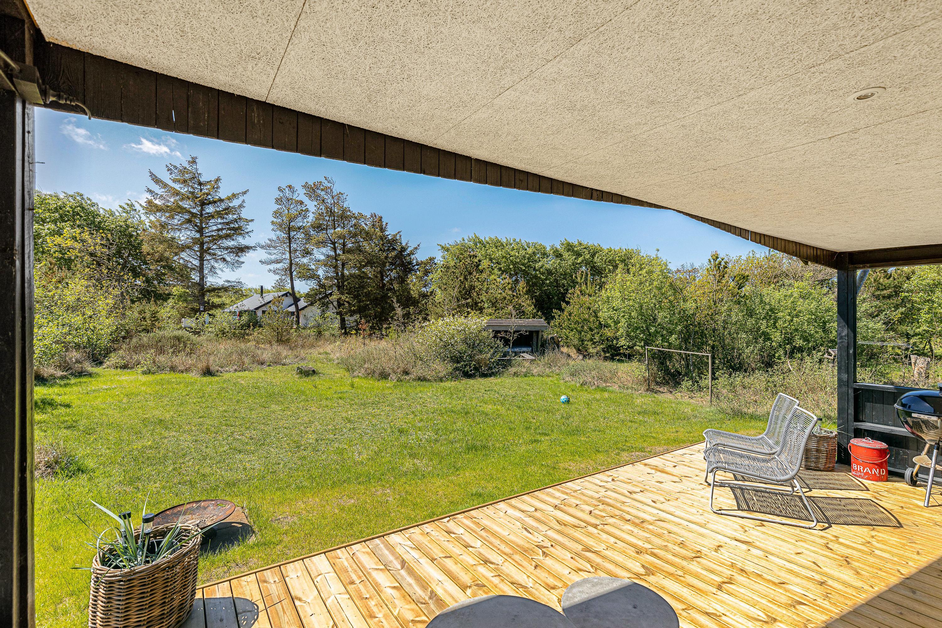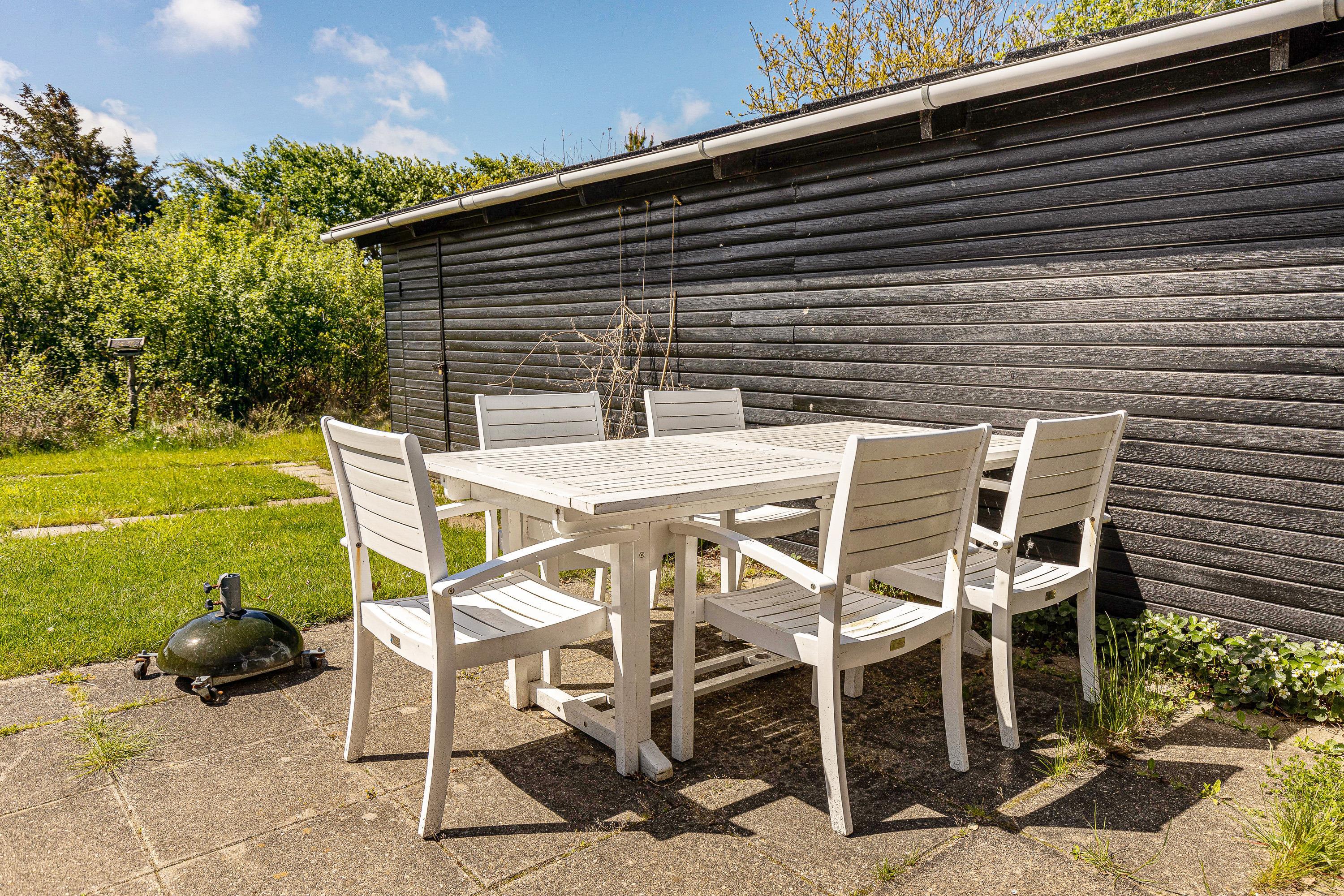 På sommerhusets udeområde har I desuden en terrasse, der er delvist overdækket og afskærmet. Her kan I finde jer godt til rette i liggestole og havemøbler med en spændende bog på et godt spot i solen. Om aftenen kan I tænde op i sommerhusets grill og tilberede en lækker grillmiddag.