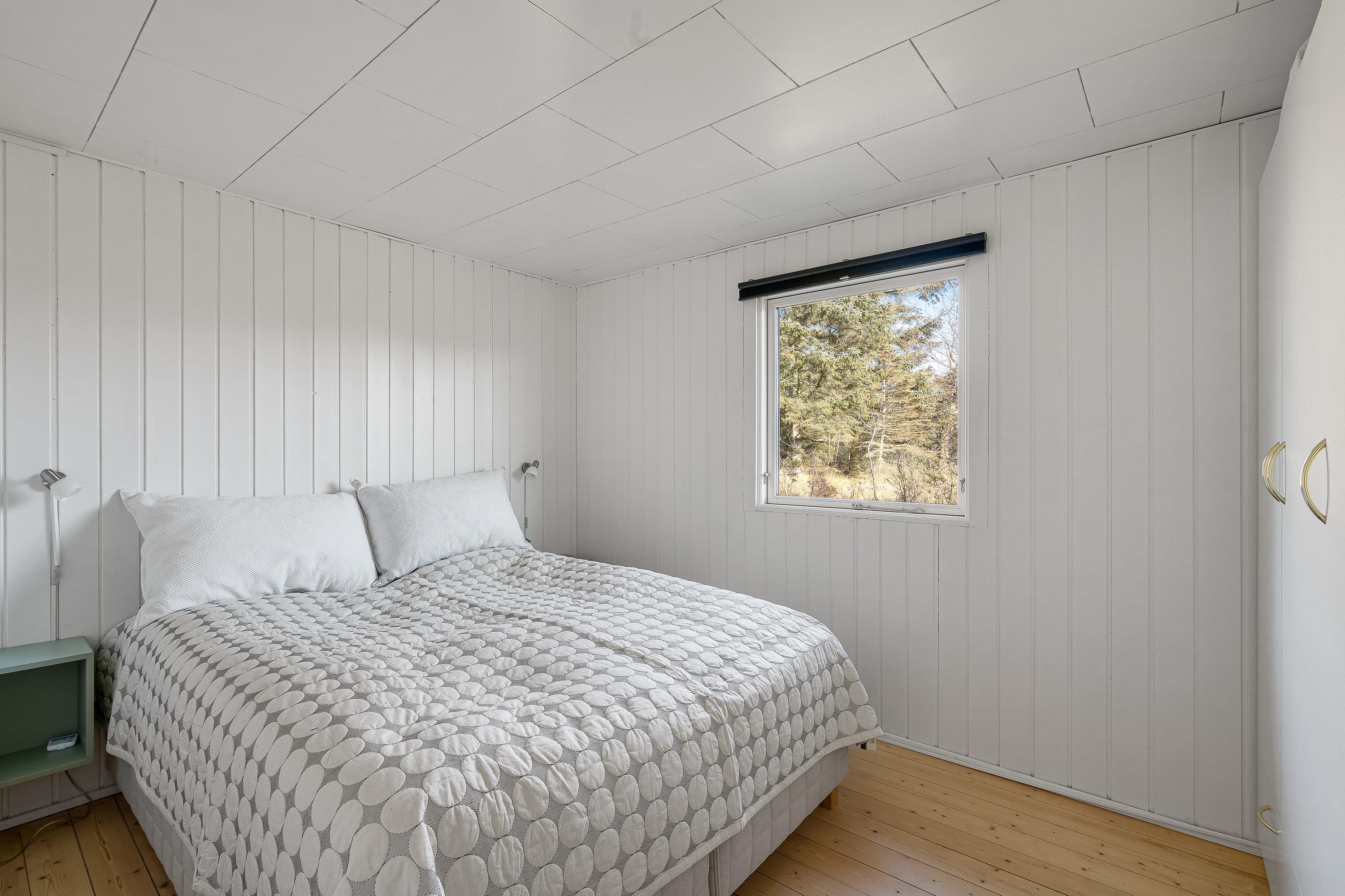 På sommerhusets 60 kvadratmeter har I 2 gode soveværelser, der er indrettet med en dobbeltseng hver. Desuden er der 1 badeværelse i sommerhuset.