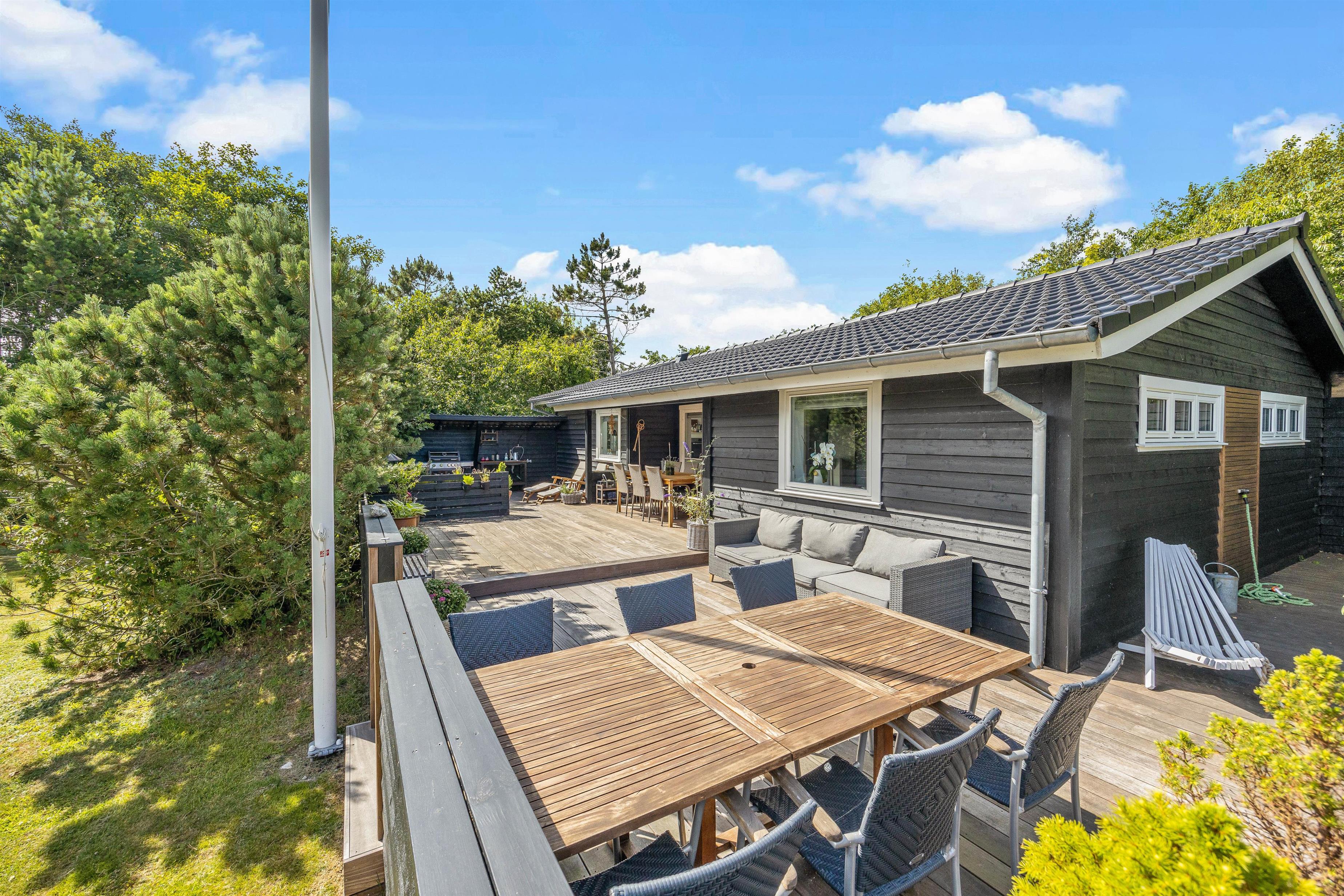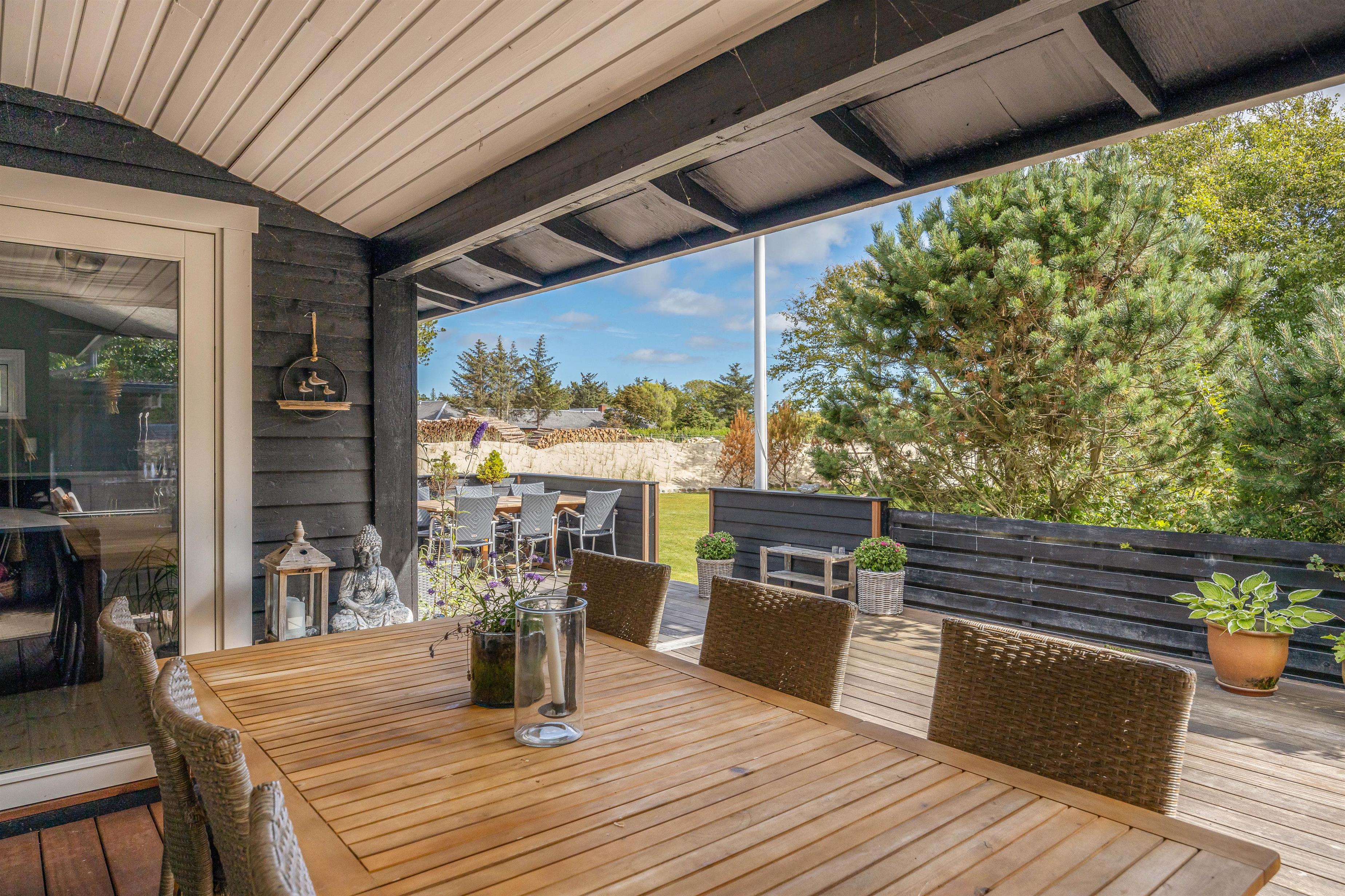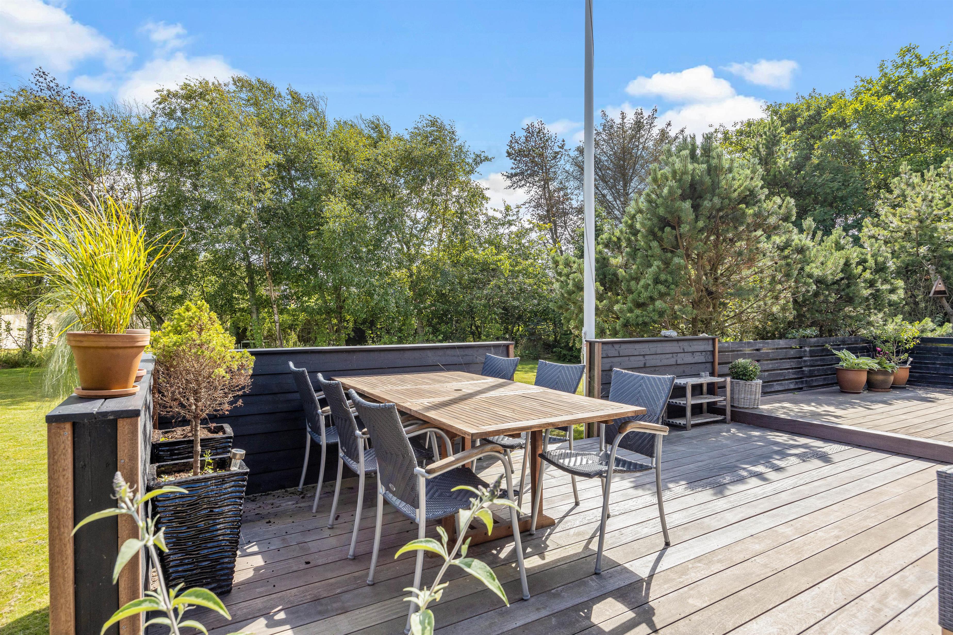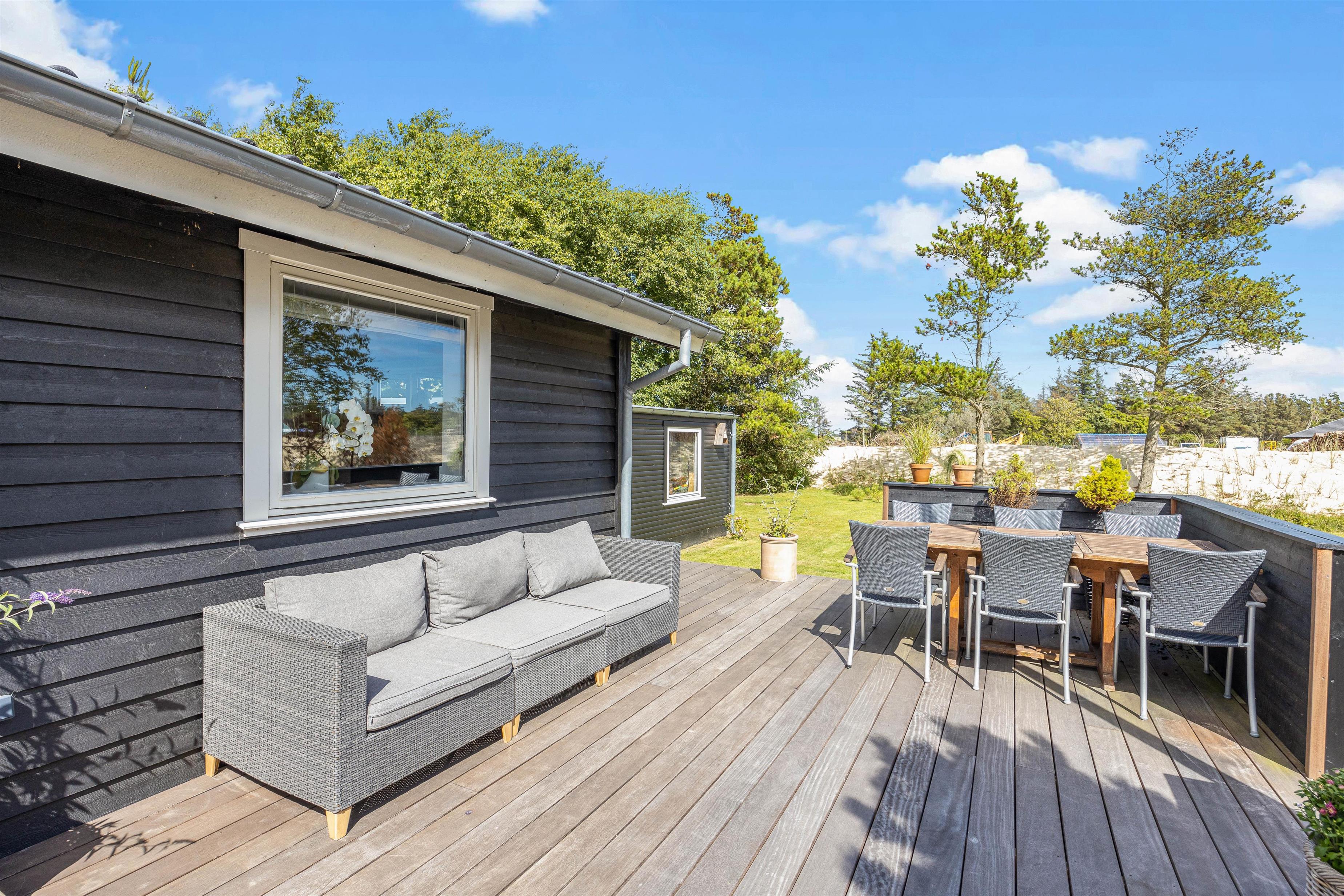 I kan finde jer godt til rette på terrassen, der er delvist overdækket, hvor I har havemøbler, liggestole og en gasgrill til rådighed, så I kan få mest ud af de solrige feriedage og lune ferieaftener.