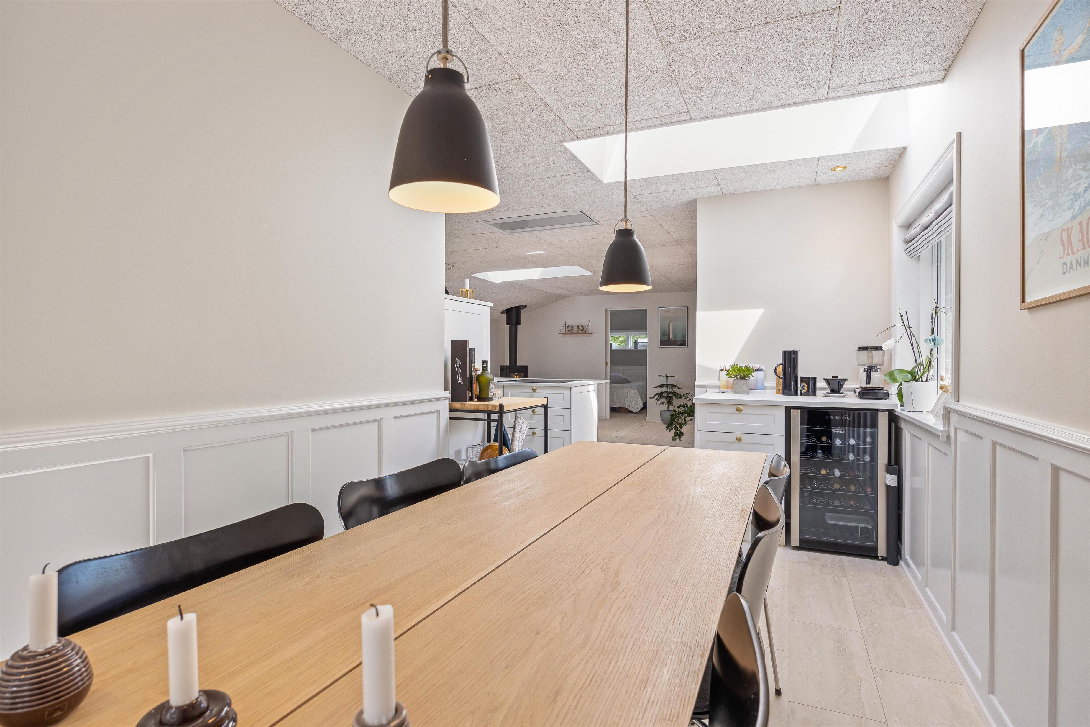 I det 84 kvadratmeter store sommerhus på Søringen 4 i Grærup Strand er rammerne sat til en hyggelig ferie for en lille familie eller parret. Her vil I uden tvivl komme til at tilbringe meget tid i opholdsstuen, hvor brændeovnen spreder dejlig varme og sørger for, at feriestemningen er i top. I feriehuset har I desuden en vinkøler.