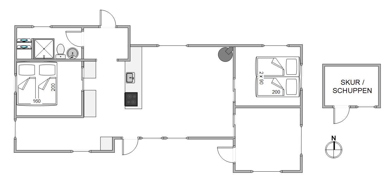 Udendørs har I desuden en udebruser, som I blandt andet kan skylle jer under efter en tur ved stranden, så I kan få det sidste sand af fødderne. Ude bruser er lukket fra 1. november til 1. april på grund af frostsikring.