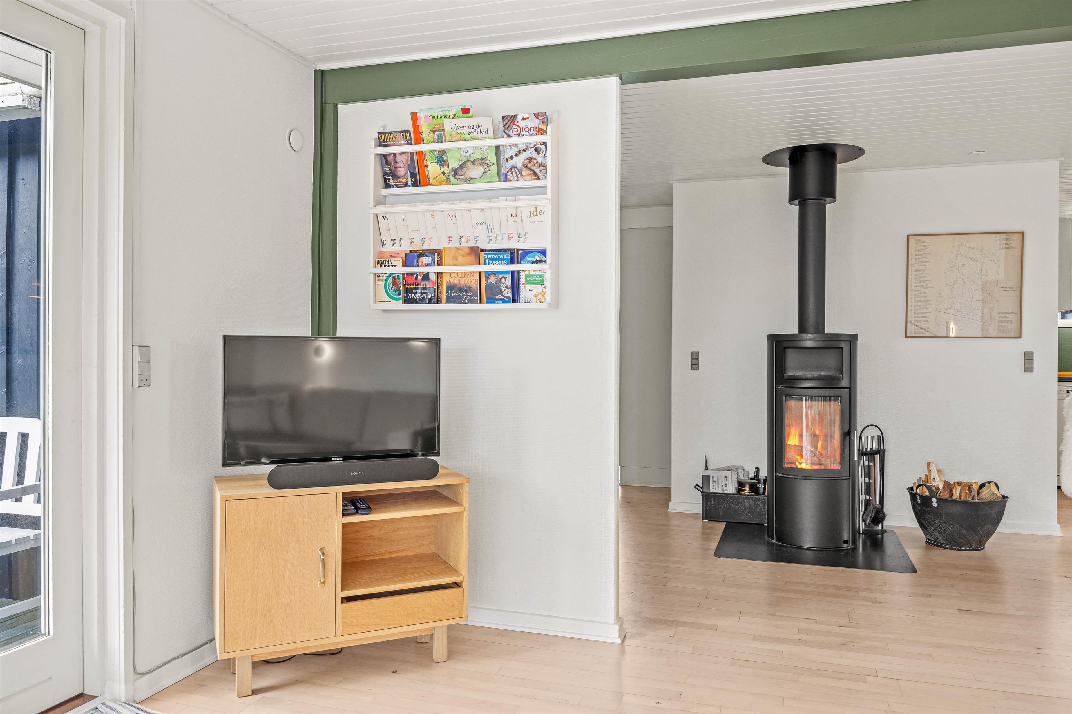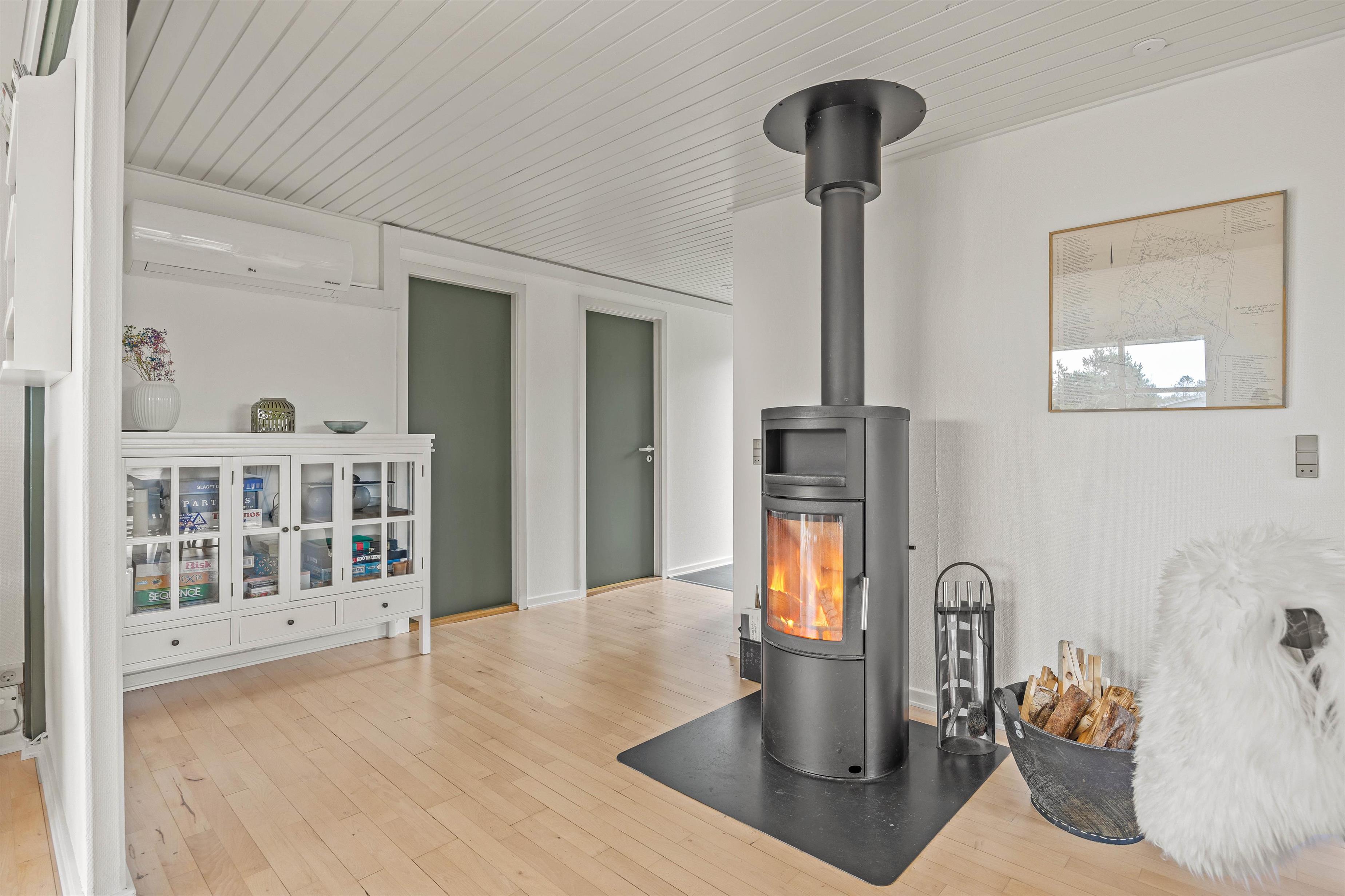 Træd ind i dette hyggelige feriehus og lad jer fortrylle af den varme atmosfære. I stuen skaber brændeovnen en behagelig stemning, mens dens varme breder sig på de køligere aftner. Dagslyset trænger smukt igennem de store vinduer, som er at finde i alrummet.