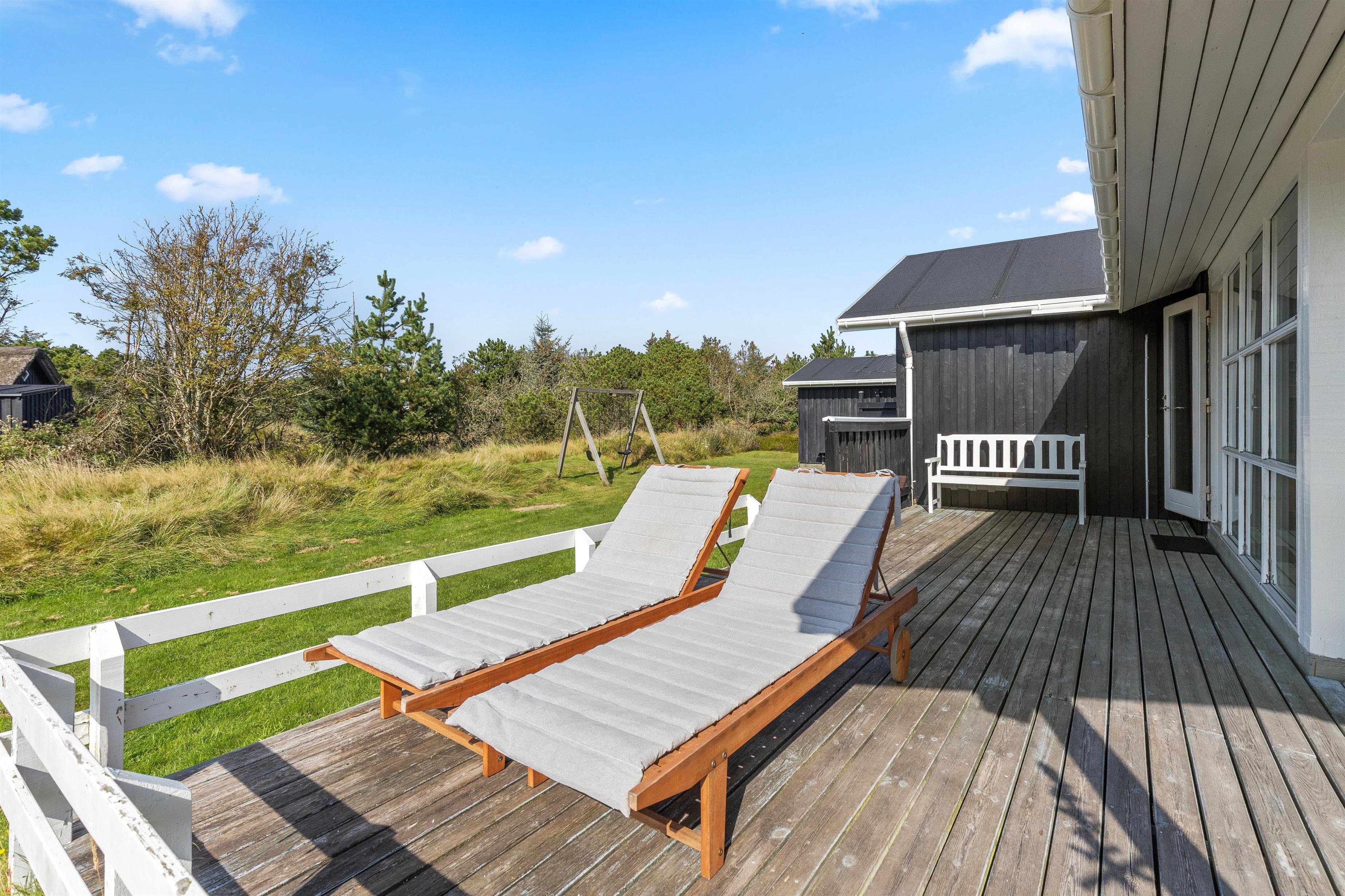 Fra stuen har I adgang til en skøn vestvendt terrasse. Her kan I komme helt ned i gear, lytte til naturens lyde og nyde den friske luft. Havemøblerne står klar til jer! Mens I nyder en kop friskbrygget kaffe, leger børnene på gyngerne eller på den flade græsplæne.