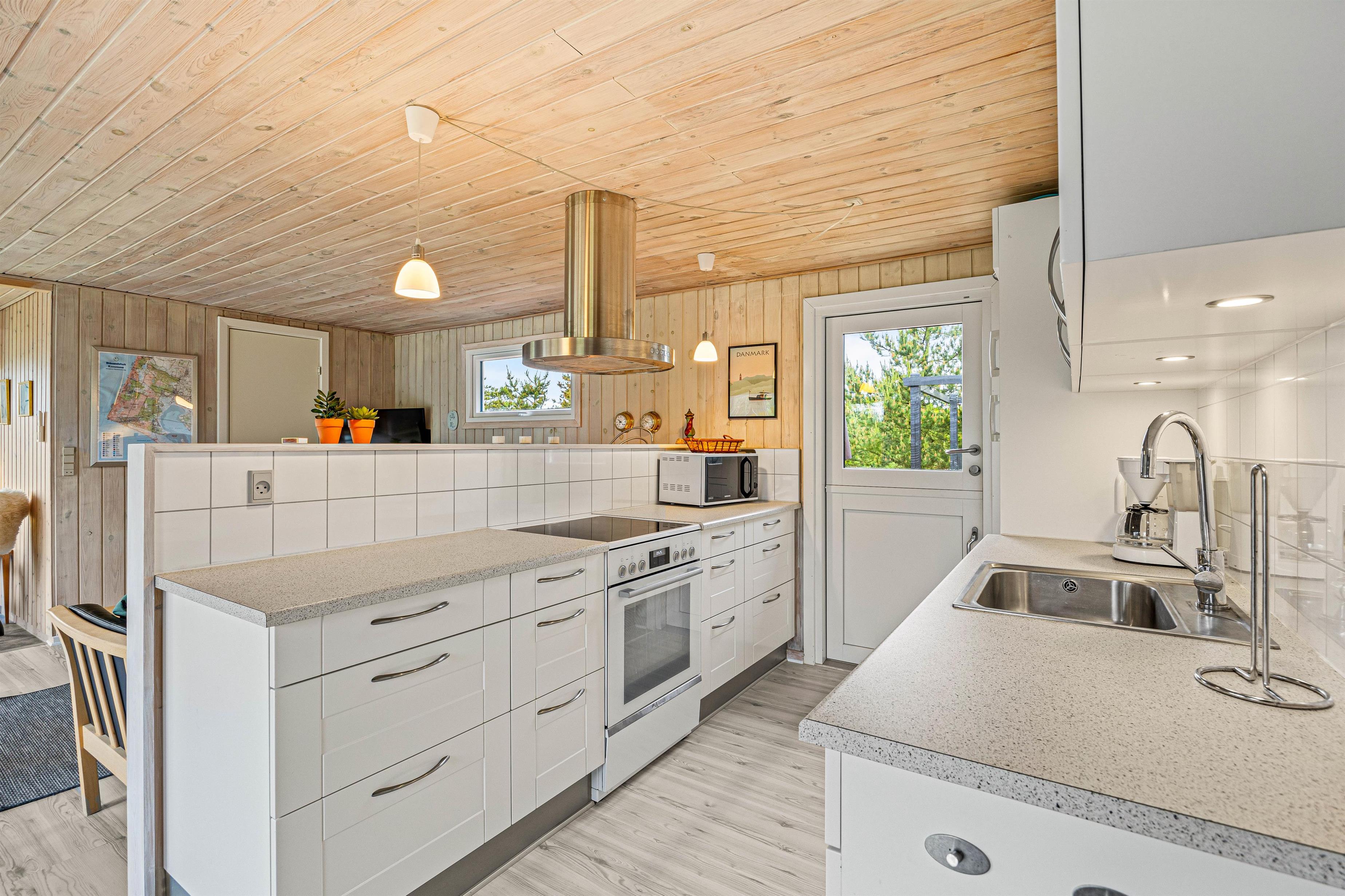 Sommerhuset er hyggeligt og lyst indrettet. Med sine 65 m2 er feriehuset et ideelt valg for både den lille familie og gruppen af venner. De 6 sovepladser fordeler sig på 3 fine soveværelser og her er et fint badeværelse med gulvvarme. Herinde finder I også vaskemaskine og tørretumbler, som sørger for friske håndklæder!