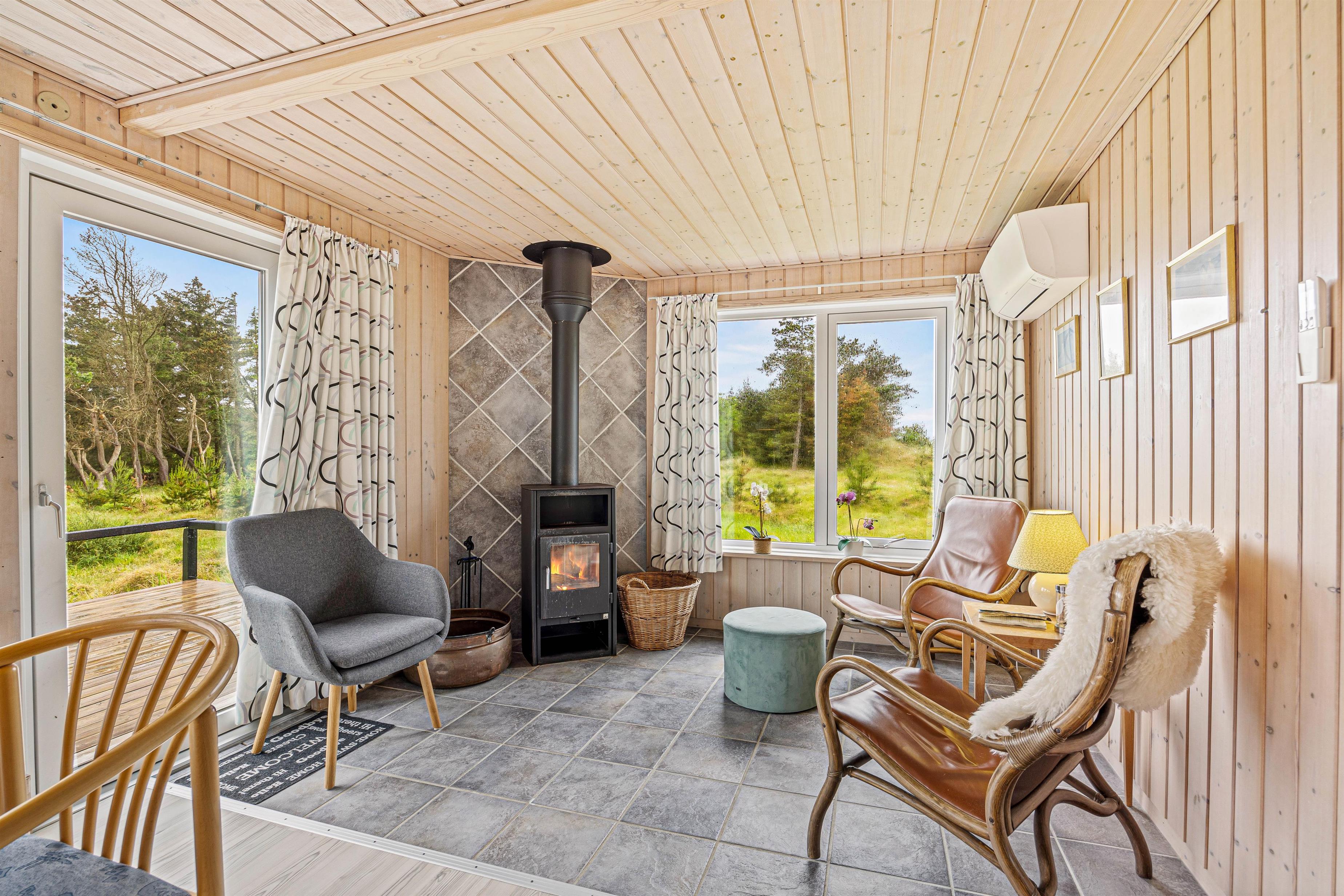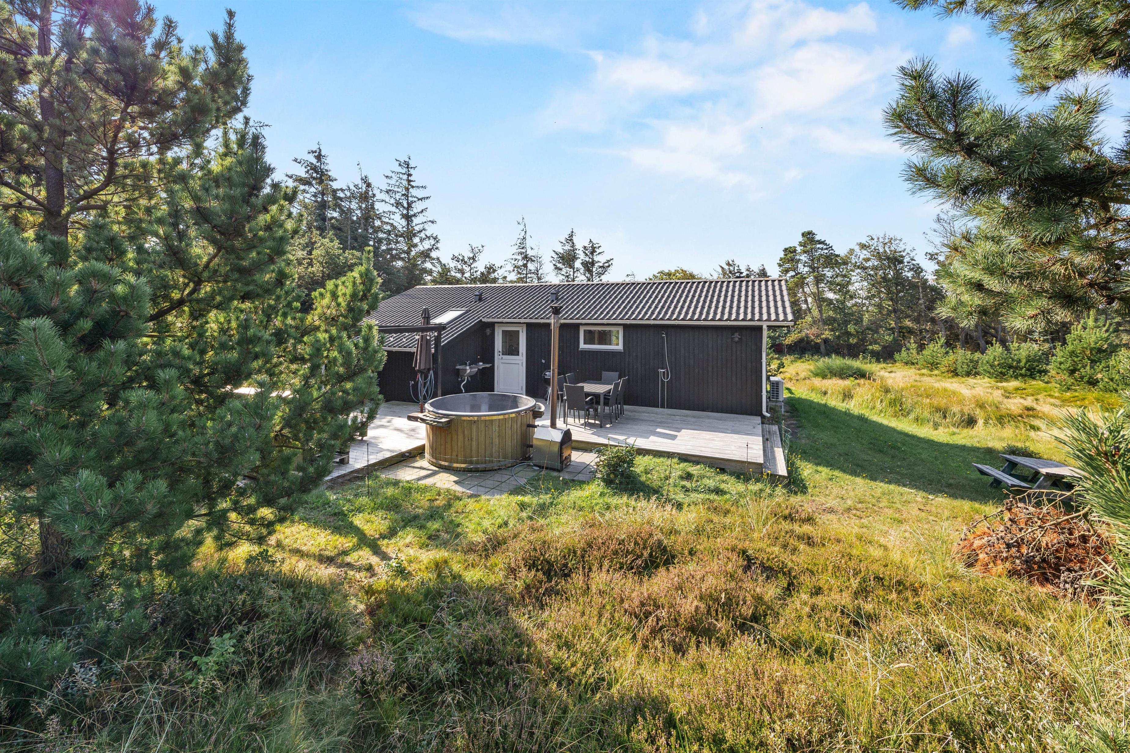 Sommerhuset er beliggende ud med et åbent hedeområde. Her er to terrasser med mulighed for både udsigt og læ; en mod nordvest og den anden mod syd. Her kan I komme helt ned i gear, lytte til naturens lyde og nyde den friske luft. Havemøblerne står klar til jer! Her kan I nyde en kop friskbrygget kaffe, dase i solen eller i loungemøblerne, inden aftensmaden skal på bordet. Tænd op i gasgrillen og nyd maden sammen med et koldt glas rosé.