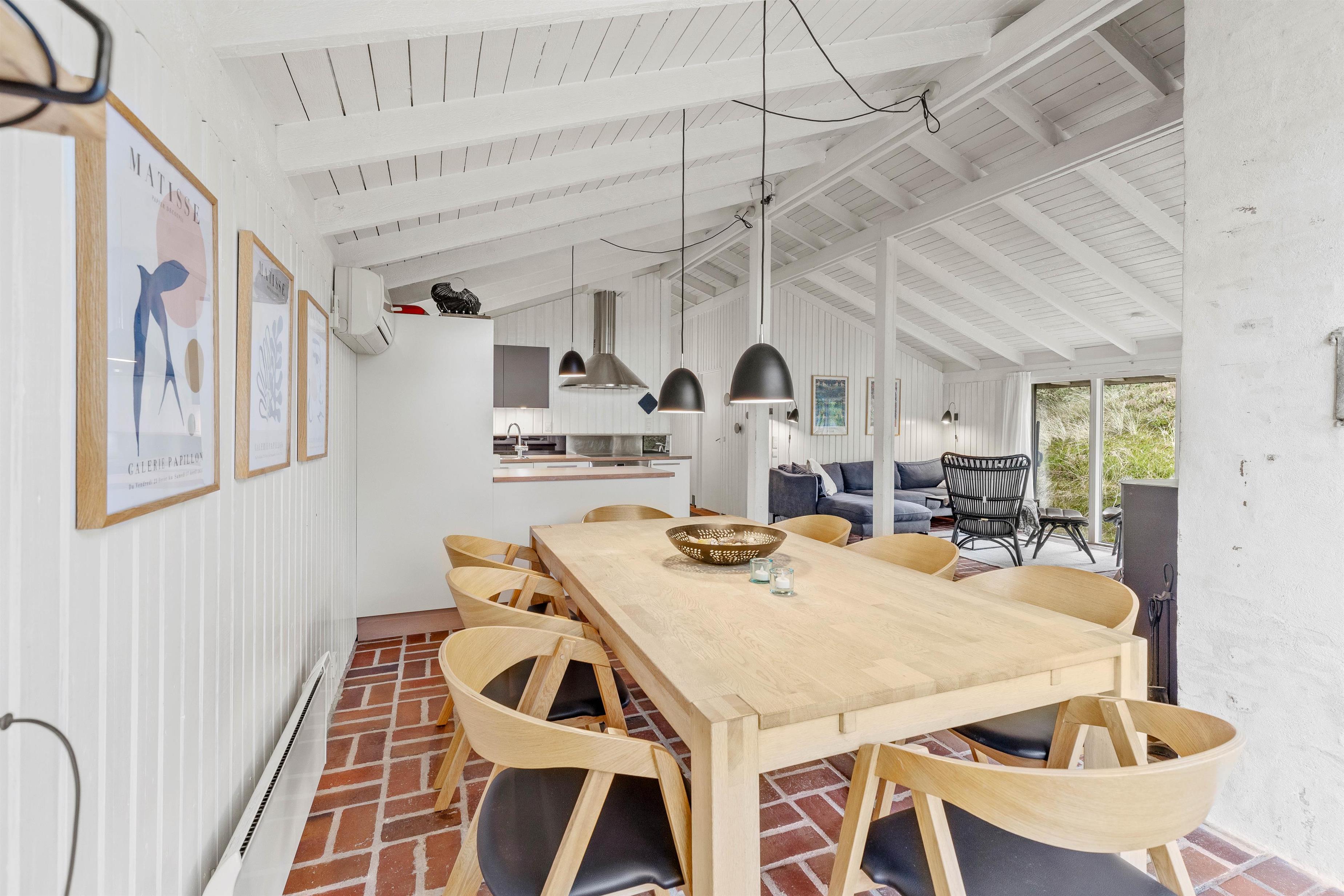 De praktiske opgaver er hurtigt klaret på ferien. Sommerhuset er nemlig udstyret med opvaskemaskine i køkkenet samt et depotrum med vaskemaskine og tørretumbler. Badeværelset har gulvvarme, og en energivenlig varmepumpe sikrer jer den helt rigtige rumtemperatur hele året rundt.