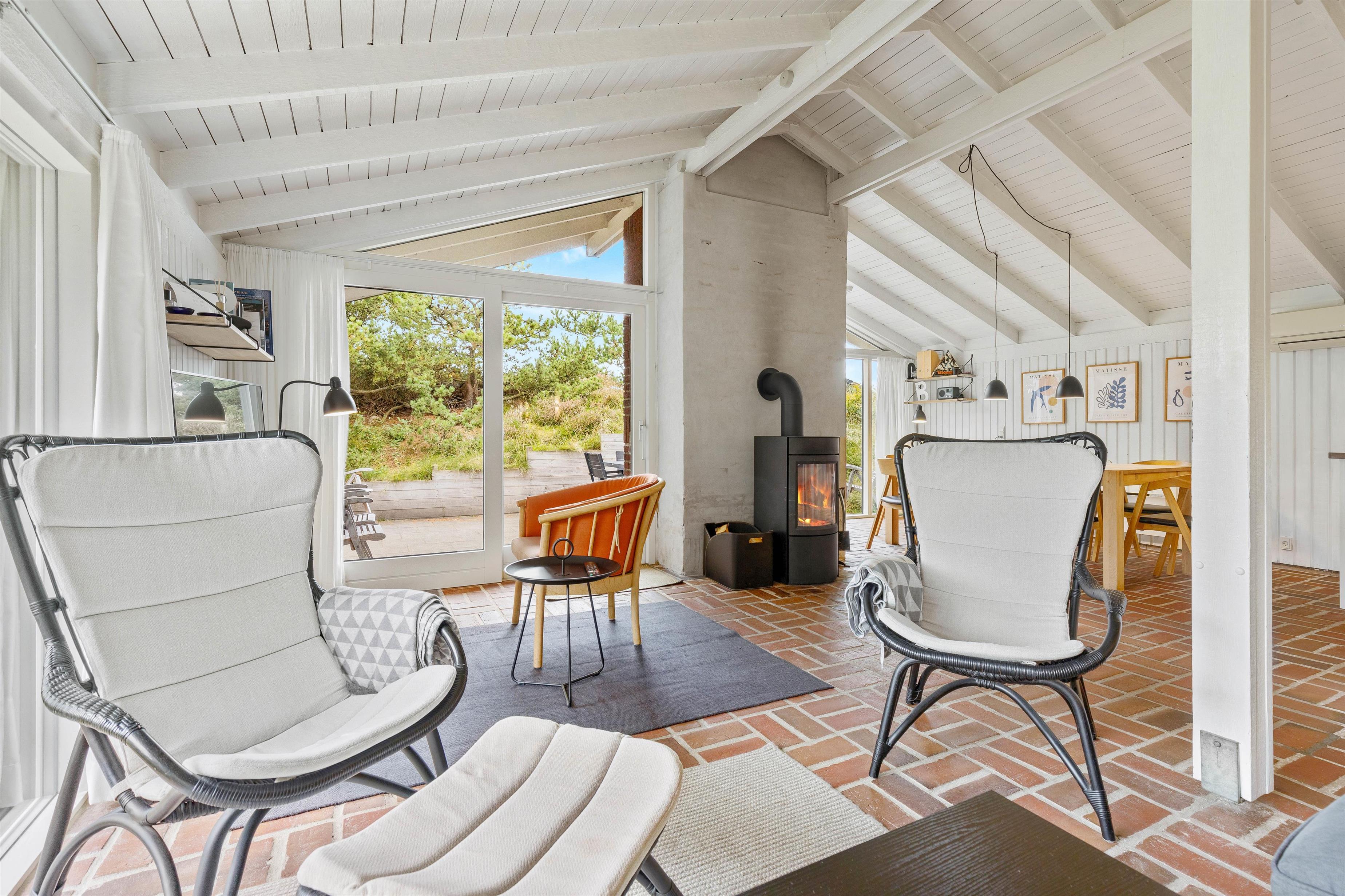 Sommerhusets læfyldte terrasse udgør en rigtig hyggekrog på de solrige dage og lægger op til masser af tid udendørs. I kan for eksempel anrette frokosten ved havebordet eller tilberede en god middag på grillen i aftensolen. Terrassen har desuden en afskærmet og overdækket del, så I kan nyde omgivelserne og den friske luft i stort set alt slags vejr.