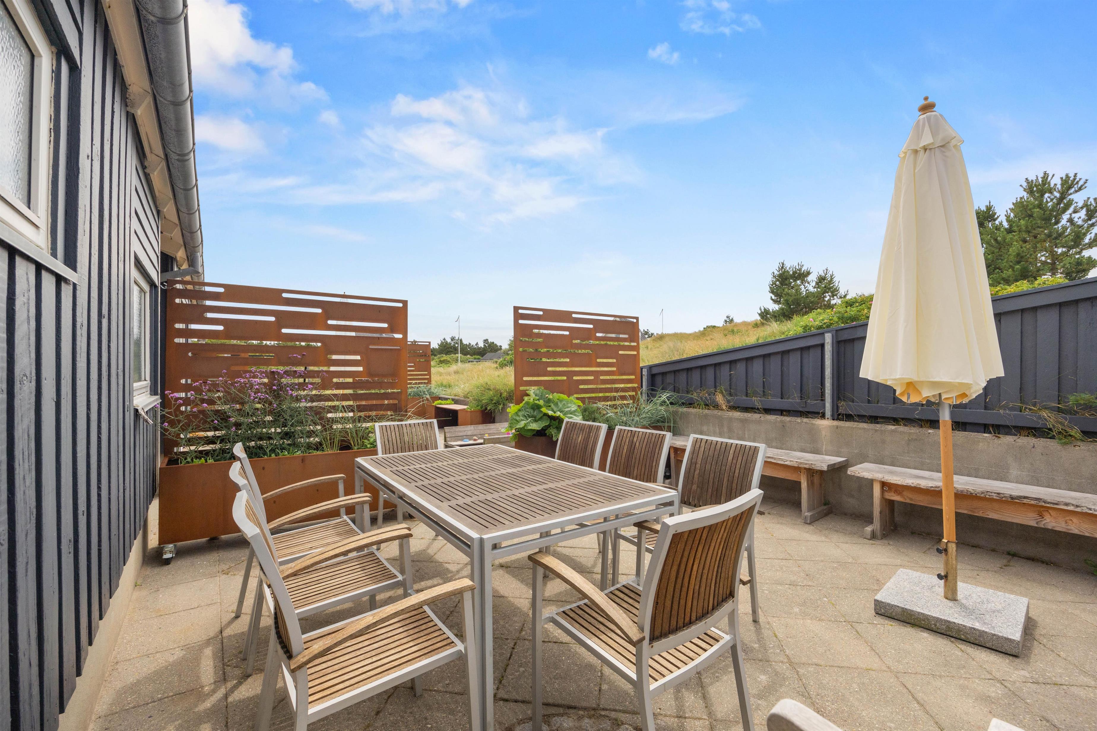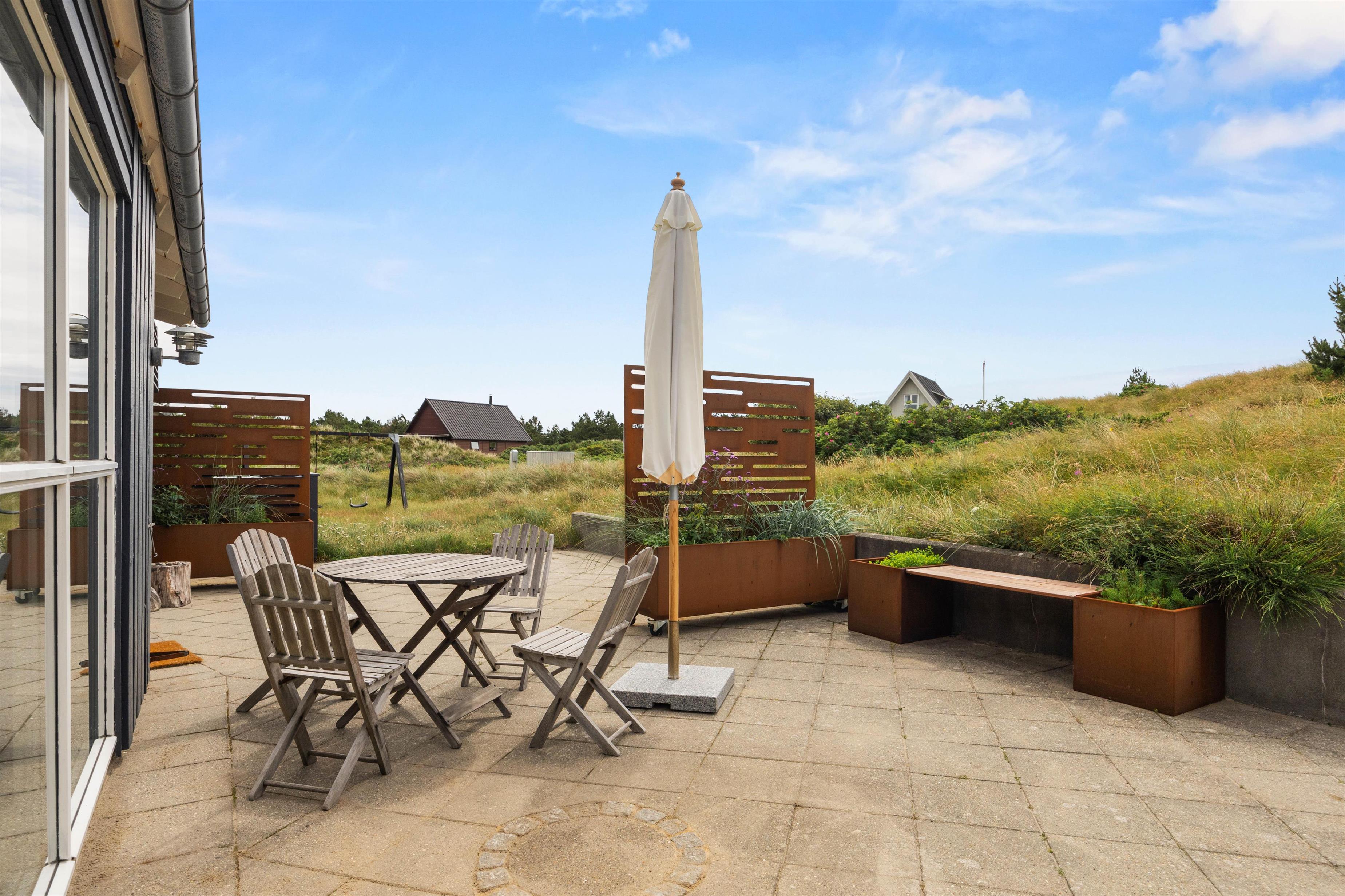 Bagefter kan I stadig nå en tur til stranden og opleve solnedgangen i Vesterhavet. Sommerhuset har en ideel beliggenhed med kun 400 meter til havet og 7000 meter til nærmeste indkøbsmuligheder.