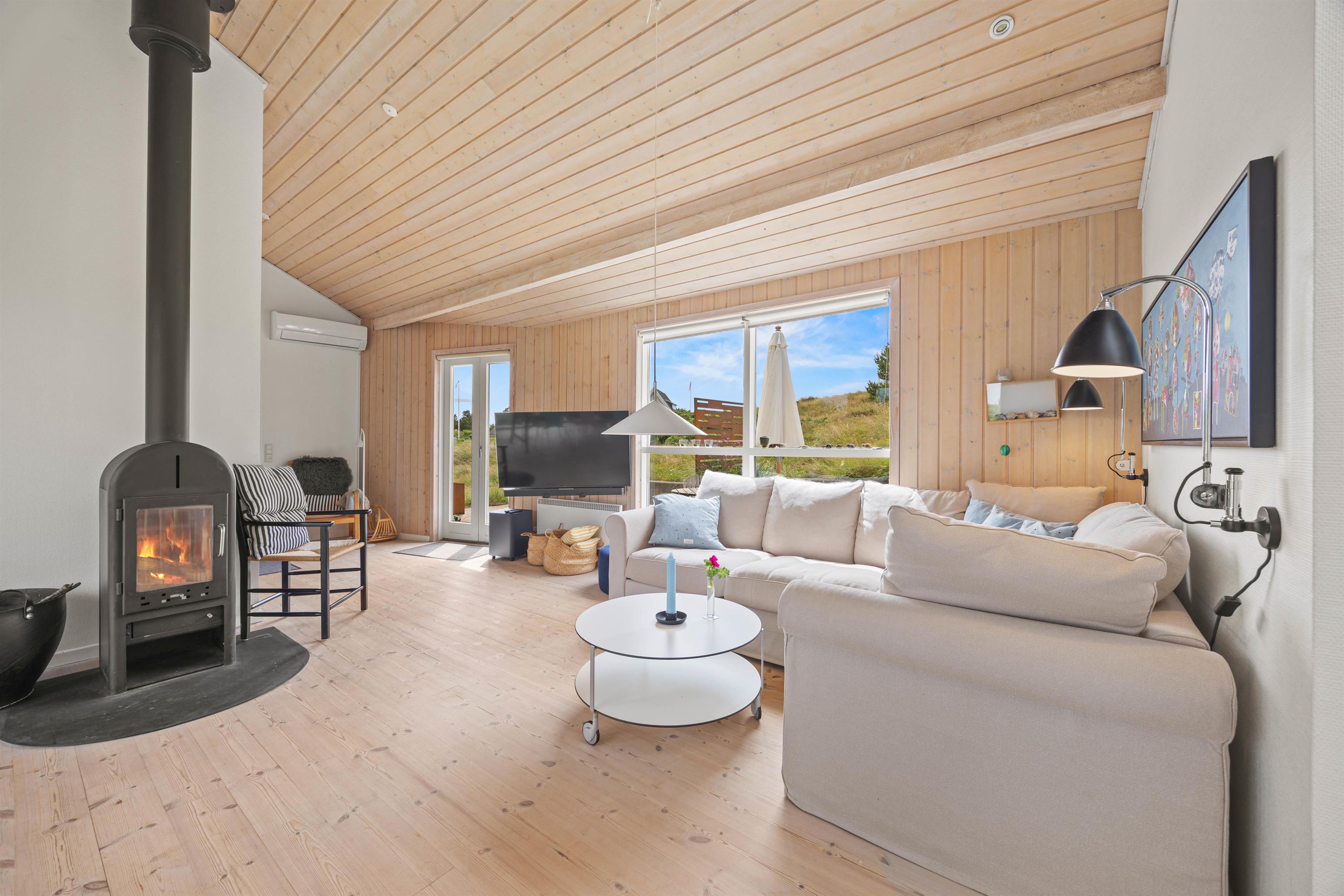 I stuen kan I hygge jer foran ilden i brændeovnen, imens I slapper af med en god film i fjernsynet eller har trukket jer tilbage med jeres yndlingsbog. Der er vaskemaskine og tørretumbler til rådighed for jer, så I kan opfriske garderoben i løbet af ferien. Den omkostnings- og energibesparende varmepumpe sørger for behagelige temperaturer i feriehuset hele året rundt.