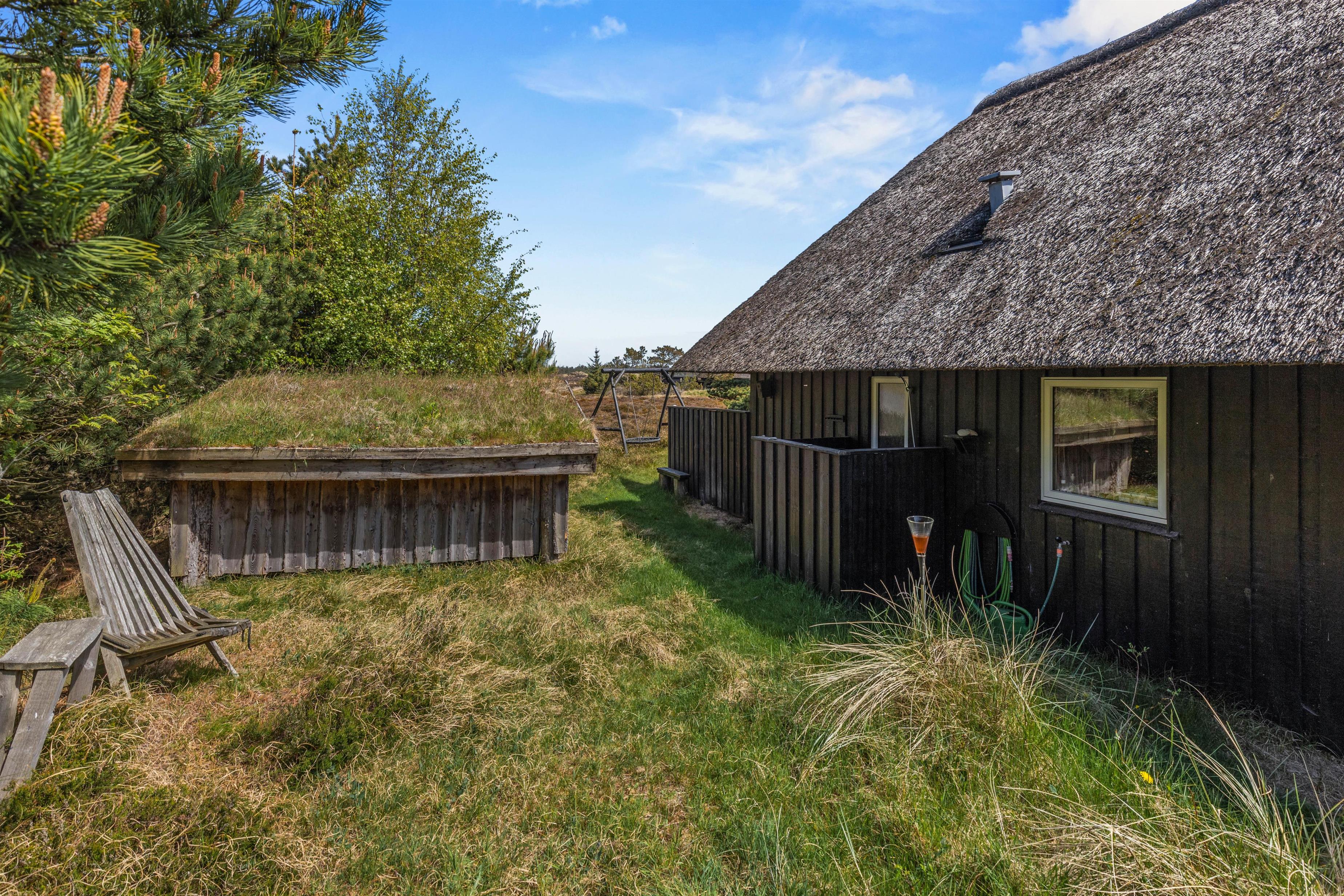 Den afskærmede terrasse og den store naturgrund inviterer dig til at tilbringe afslappende timer udendørs og en fantastisk udsigt over det omkringliggende hedelandskab. Du kan nyde den friske havbrise fra den nærliggende Nordsøkyst, mens din hund går på opdagelse eller lægger sig godt til rette ved dine fødder.