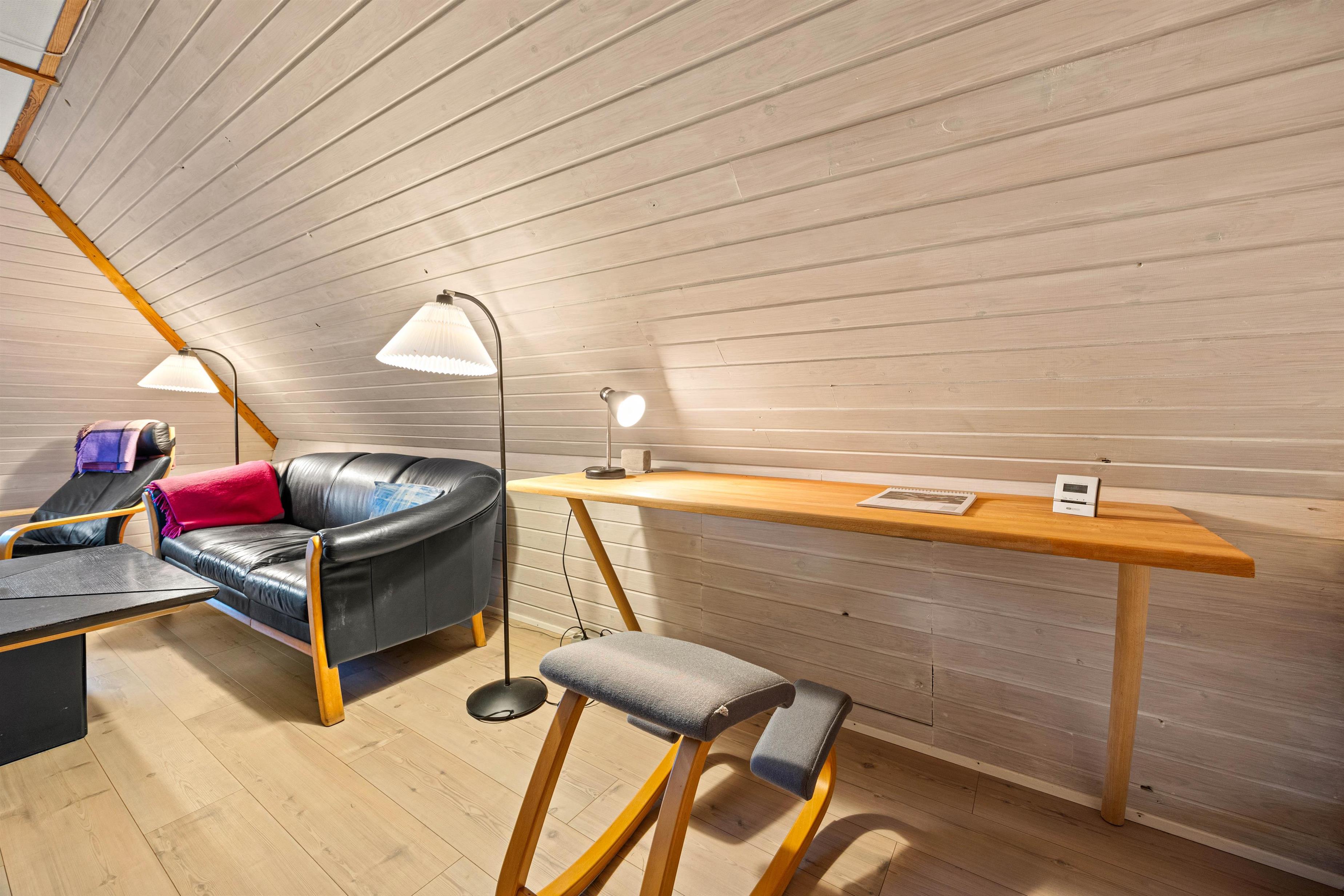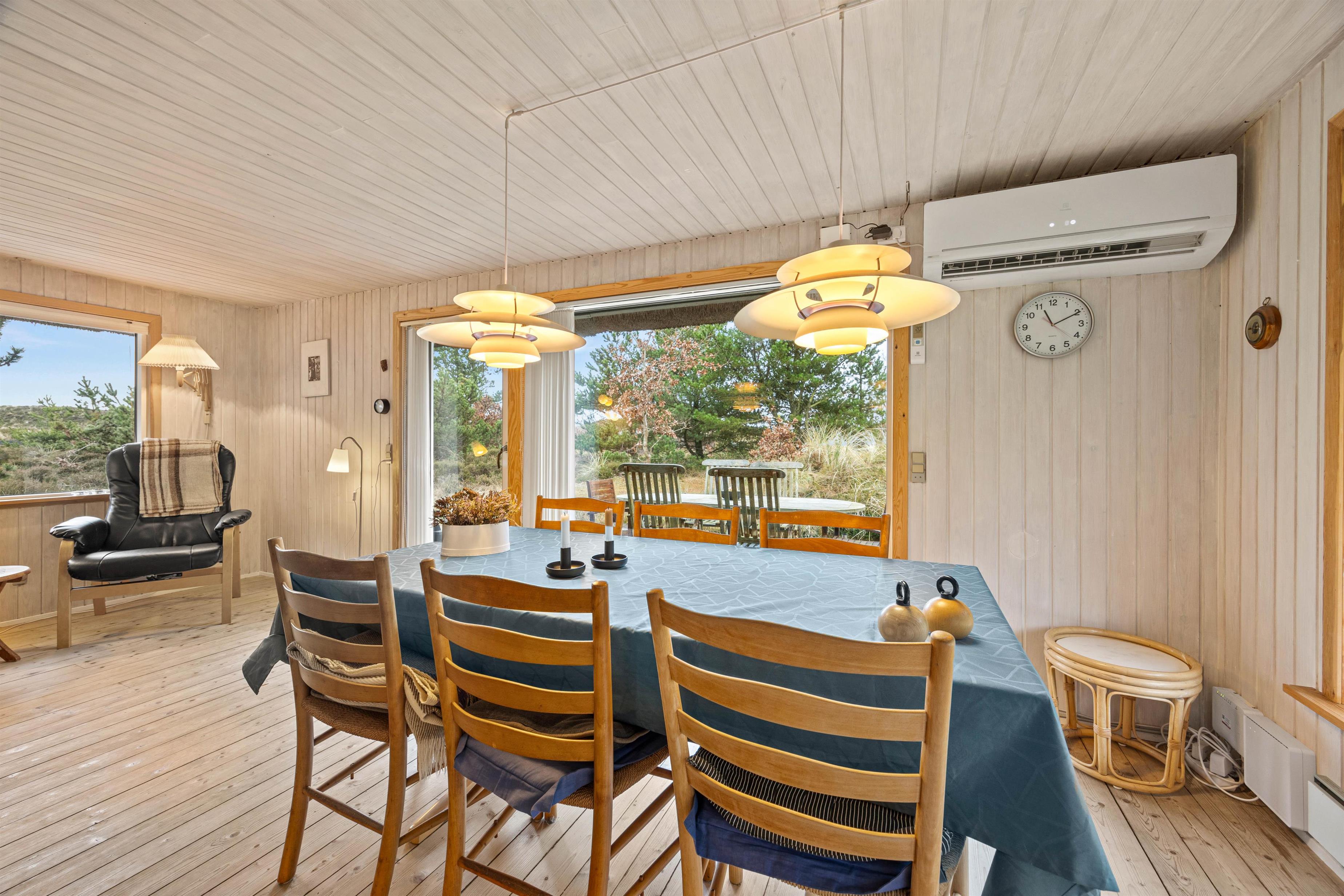 Opholdsstuen er udstyret med en brændeovn*, der giver hyggelig varme efter en lang gåtur på stranden. Samtidig sørger den moderne varmepumpe for behagelige temperaturer året rundt, ligesom der er gulvvarme i badeværelset.
