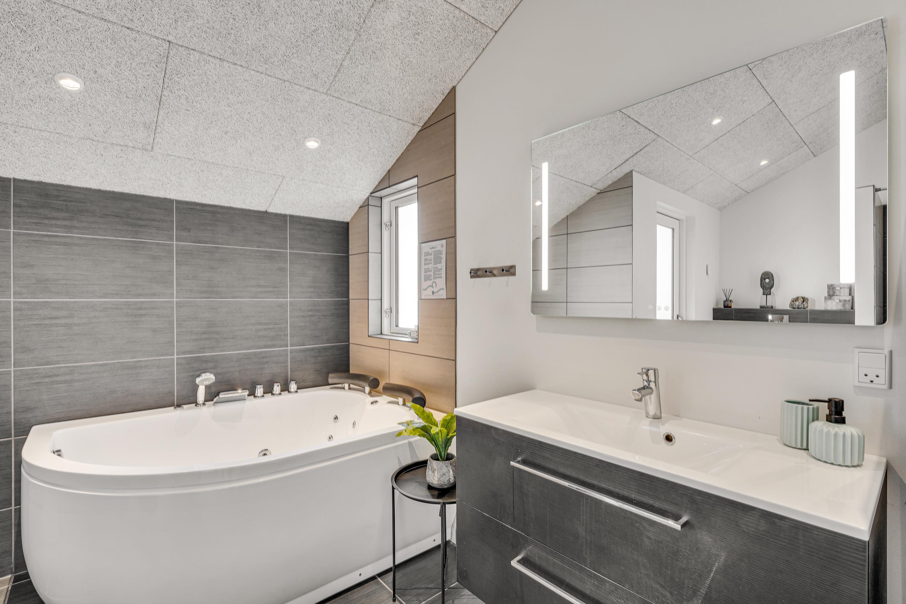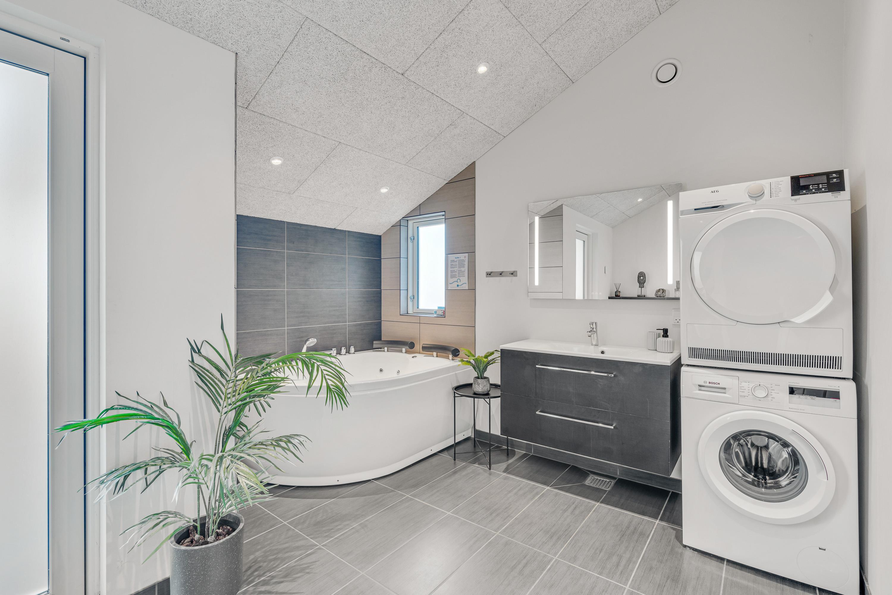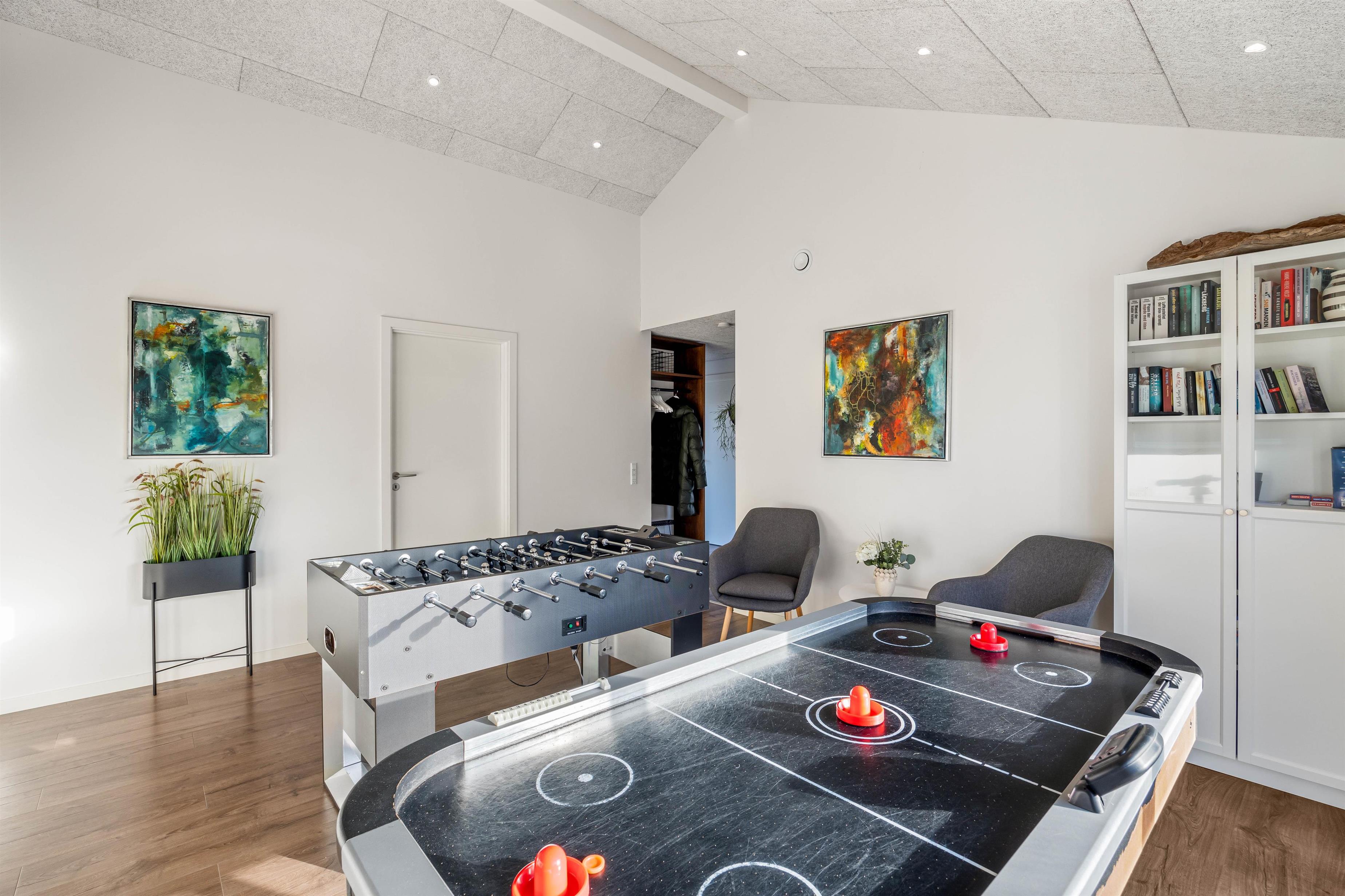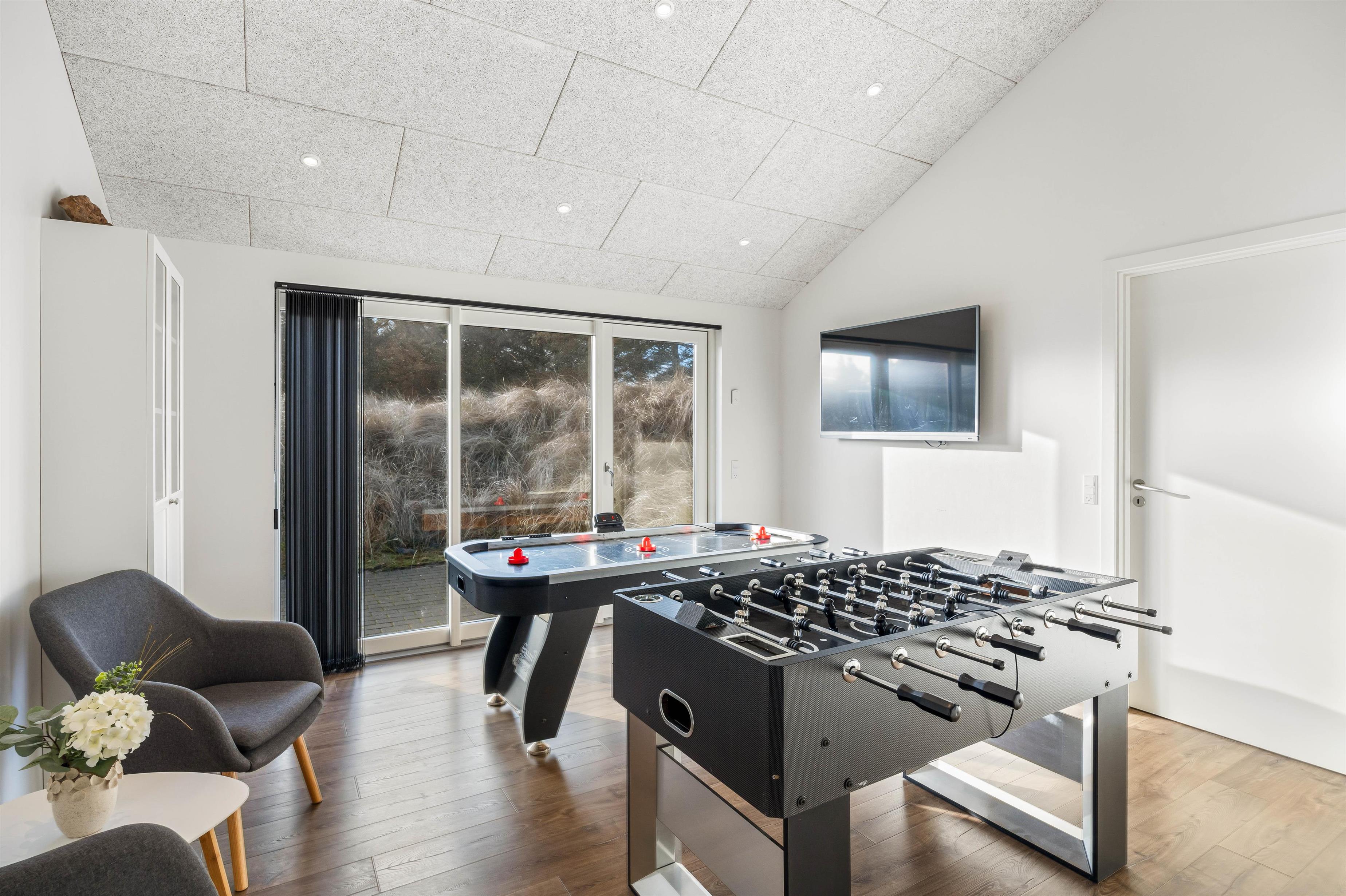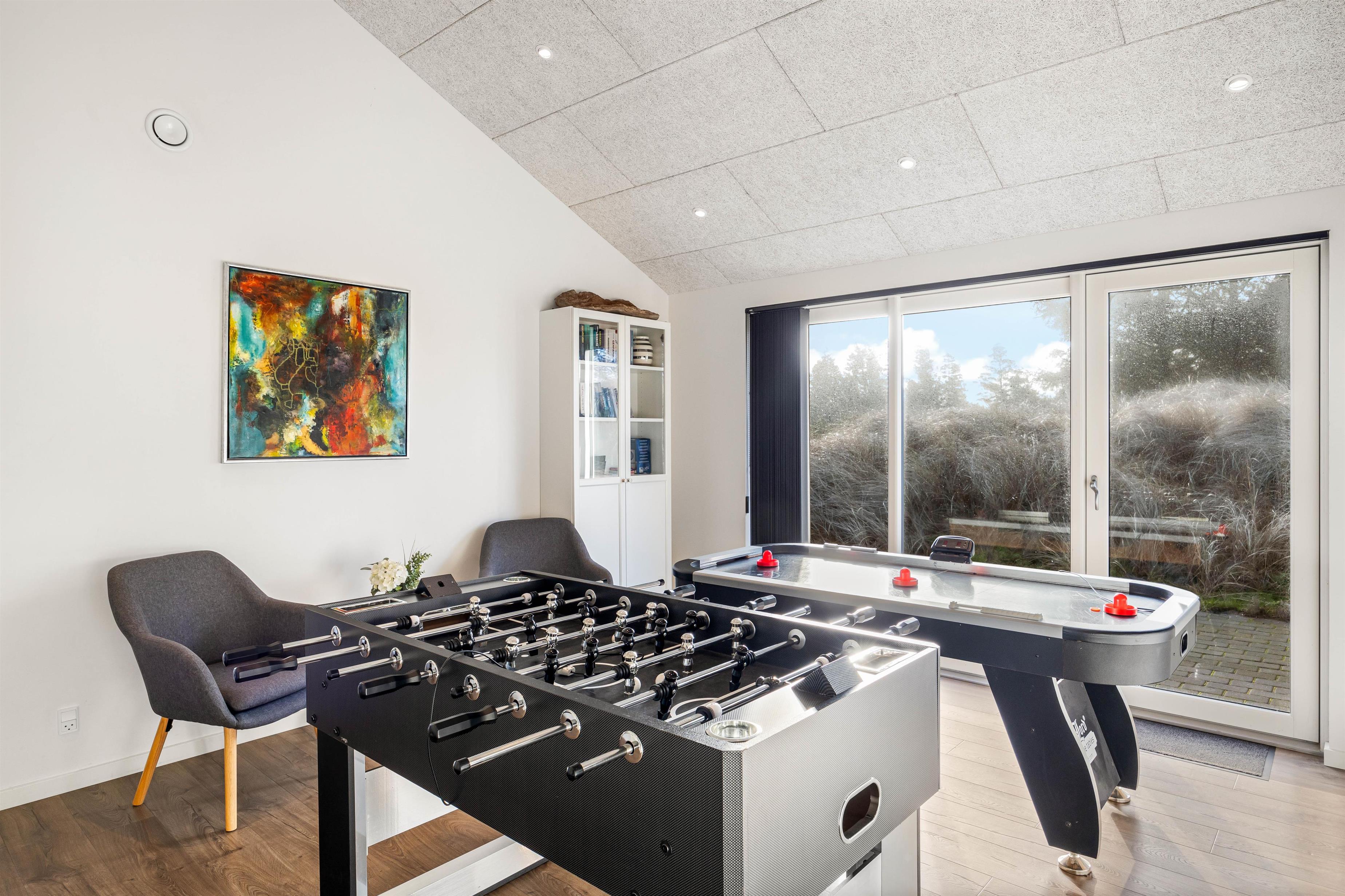 Ønsker I action på ferien, kan I udfordre hinanden i et spil airhockey eller bordfodbold i sommerhusets aktivitetsområde, hvor I vil kunne få mange timer til at gå sammen. Har man i stedet brug for en gang afslapning, er en tur i spabad tiltrækkende, hvilket er muligt i det ene af sommerhusets to badeværelser.