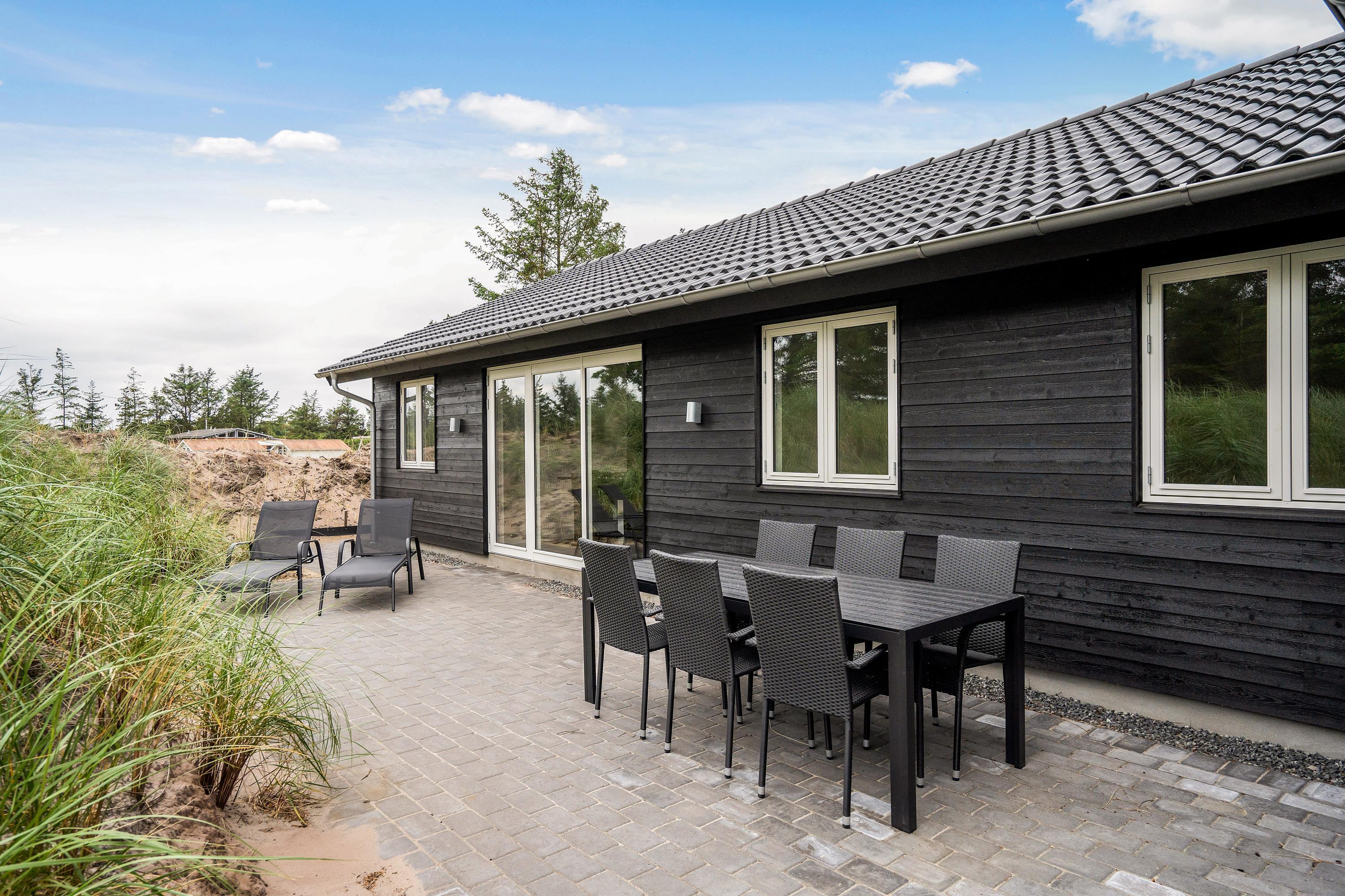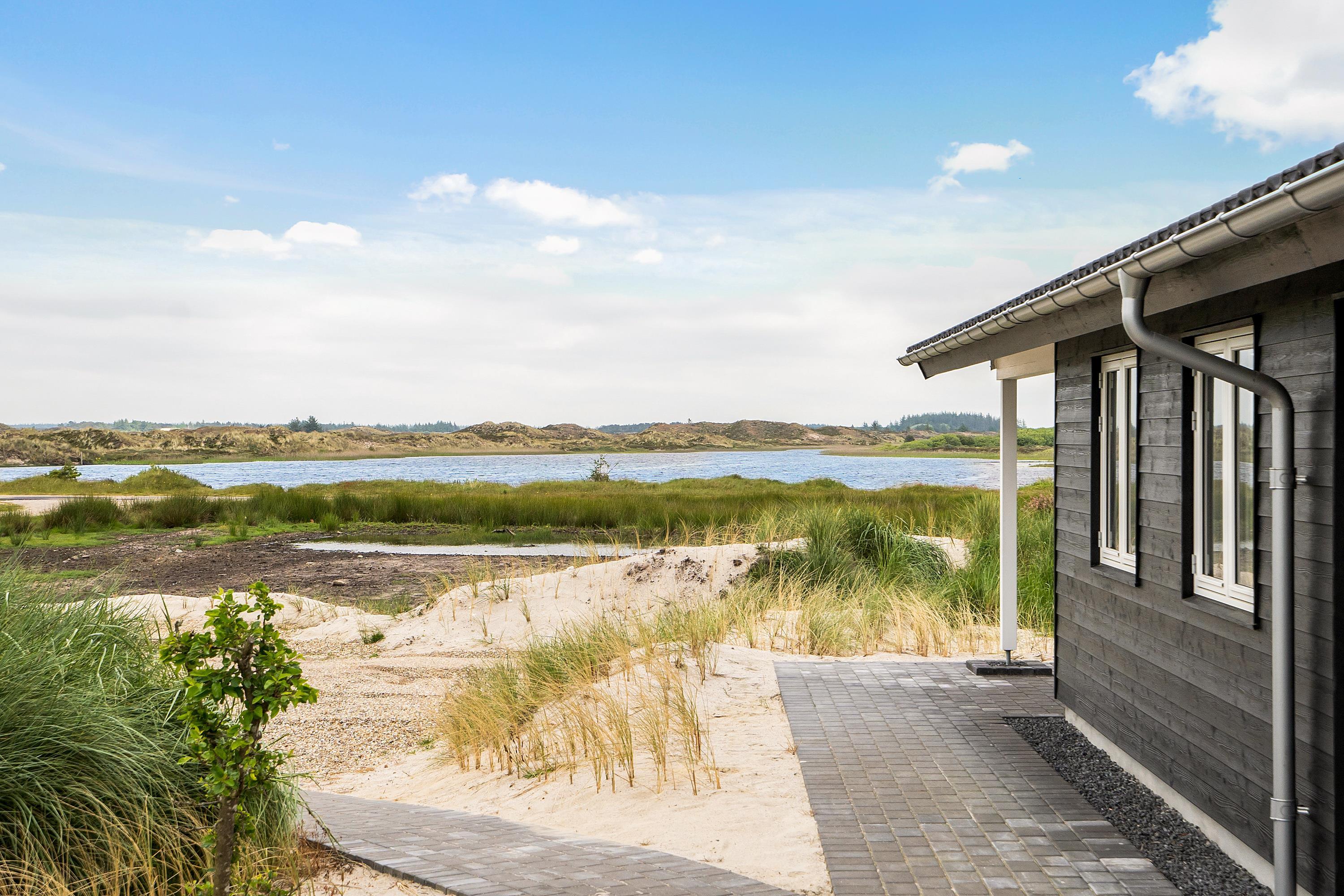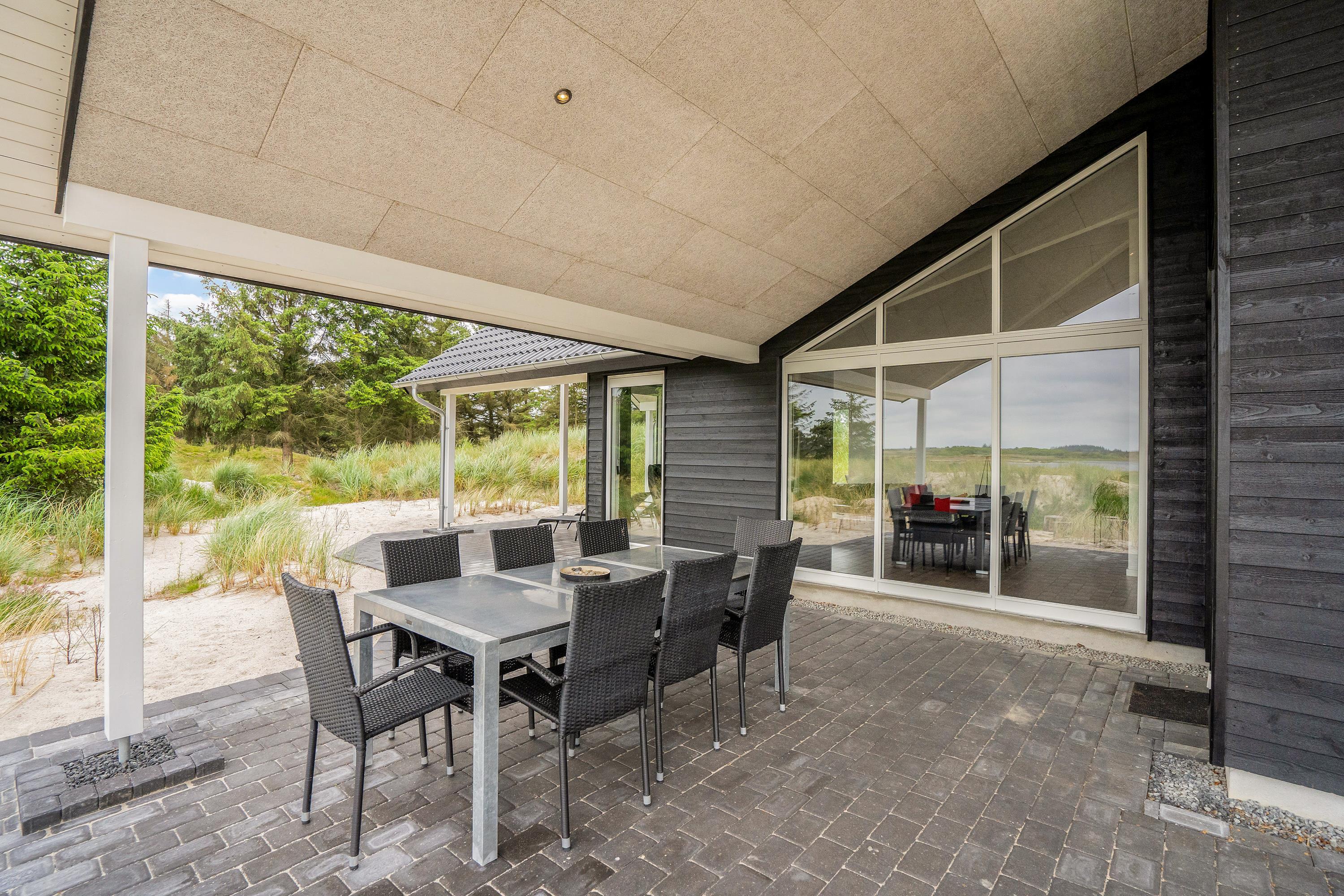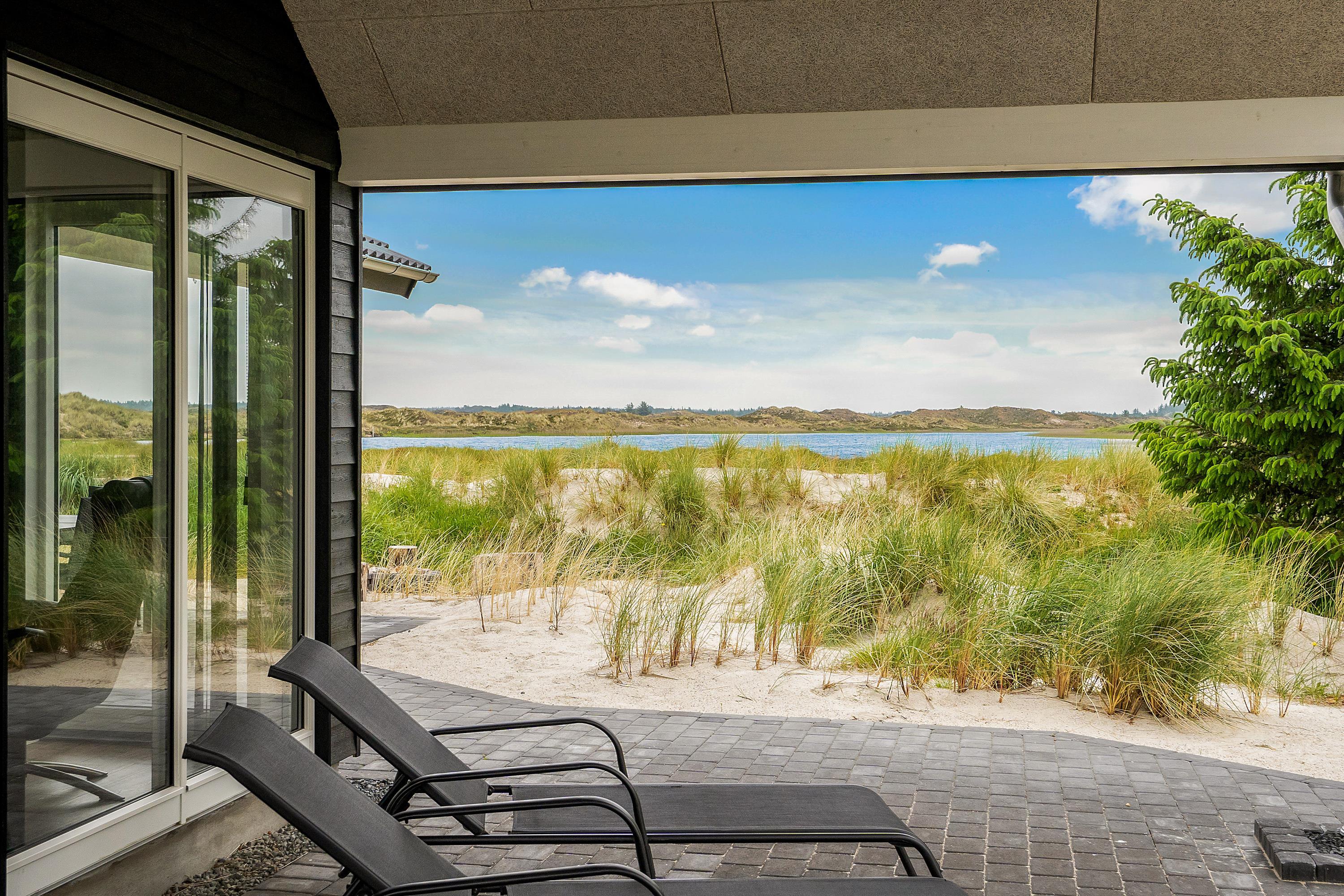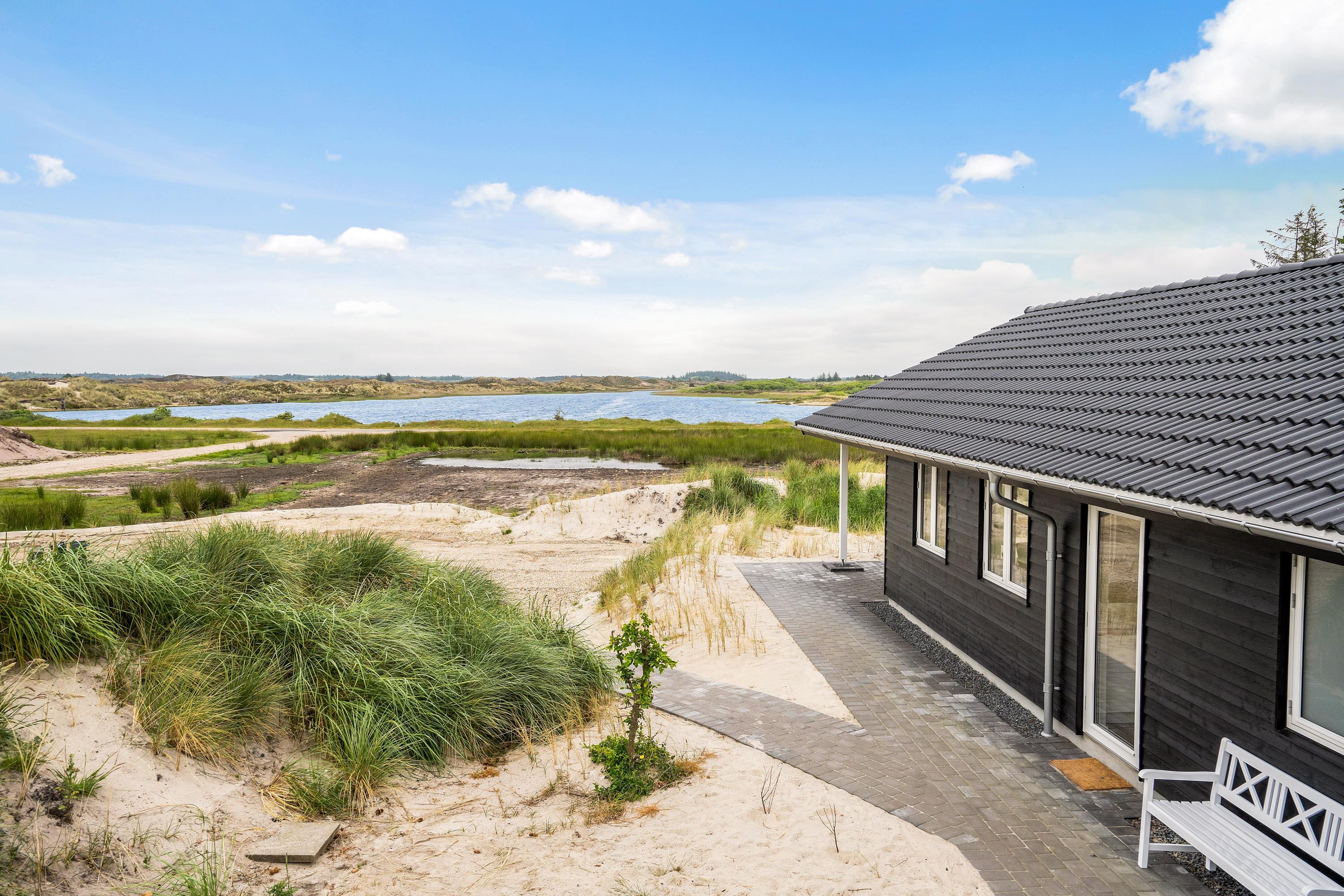 Til sommerhuset hører en stor terrasse. Fra terrassen har I også en fantastisk udsigt til søen og Grærups klitlandskab.