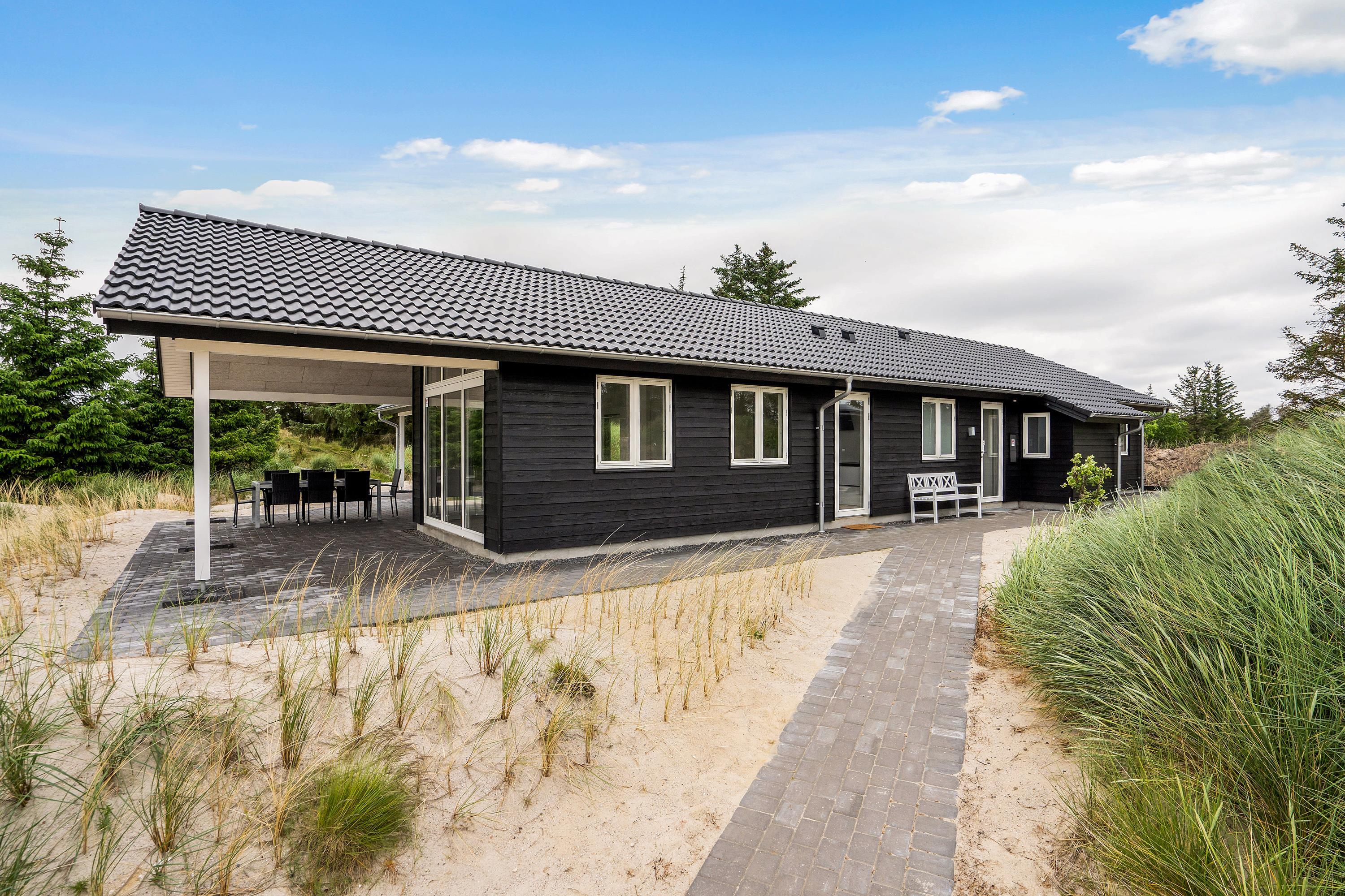 På Lyngheden 1 i Grærup finder I dette moderne sommerhus fra 2019 med spa og aktivitetrum, der rummer plads til 8 personer. Ud over plads til familie og venner i sommerhuset, er hundene også velkomne. Sommerhuset har en naturskøn beliggenhed med udsigt over vand og Grærups flotte klitlandskab.