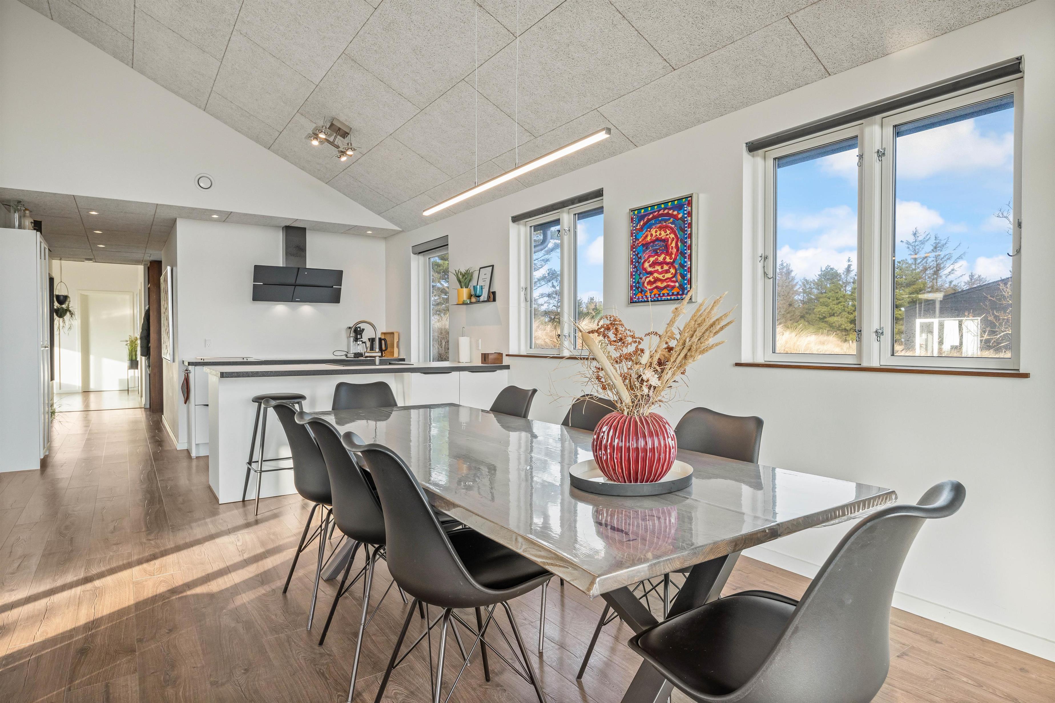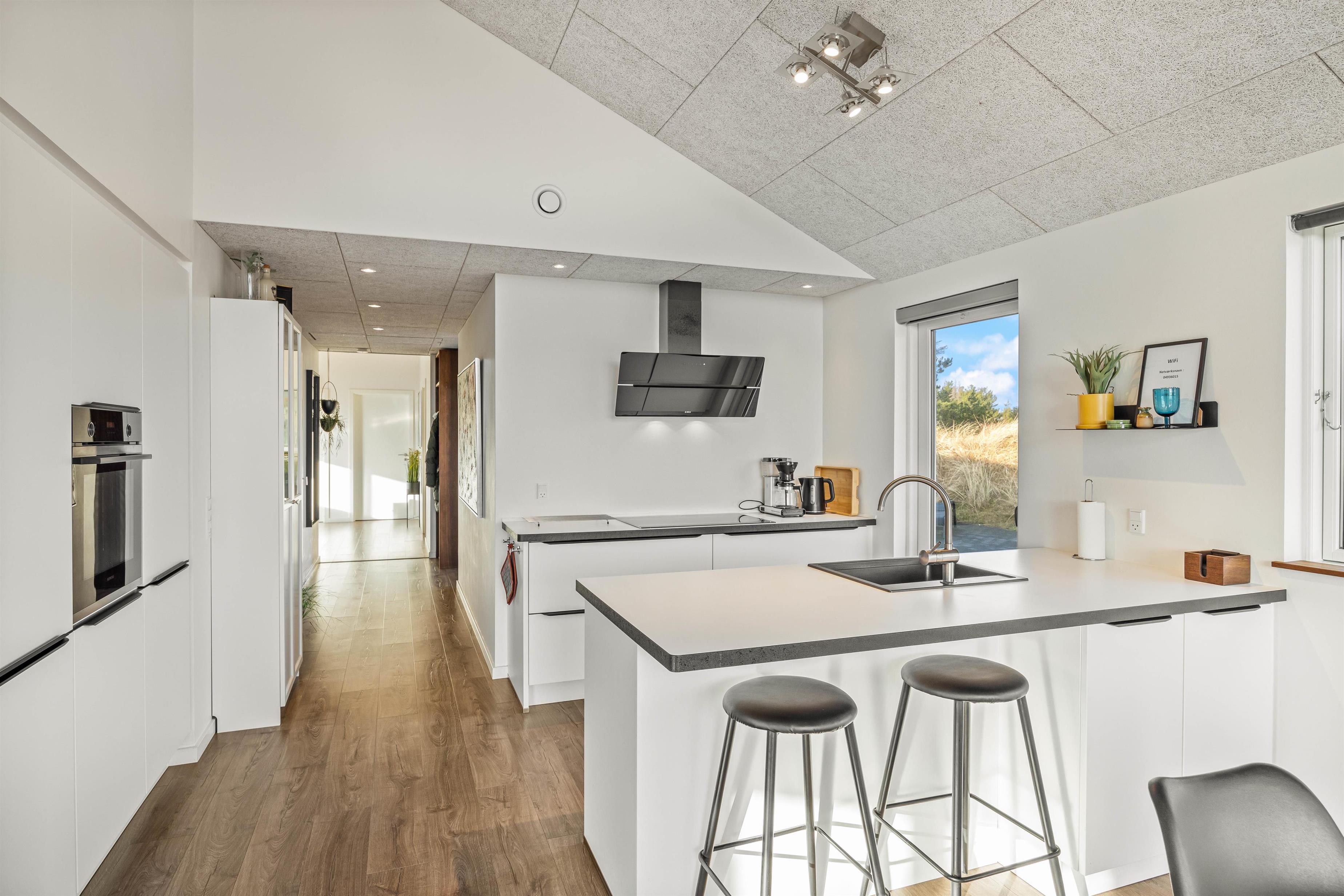 Sommerhuset er ideelt for jer, der ønsker tilbringe en masse tid sammen under ferien. Fra husets køkkenalrum er der åbent ind til stuen, der giver jer rig mulighed for samvær og mange hyggelige stunder sammen. Fra alrum og stue kan I nyde den skønne udsigt til søen og klitlandskabet.