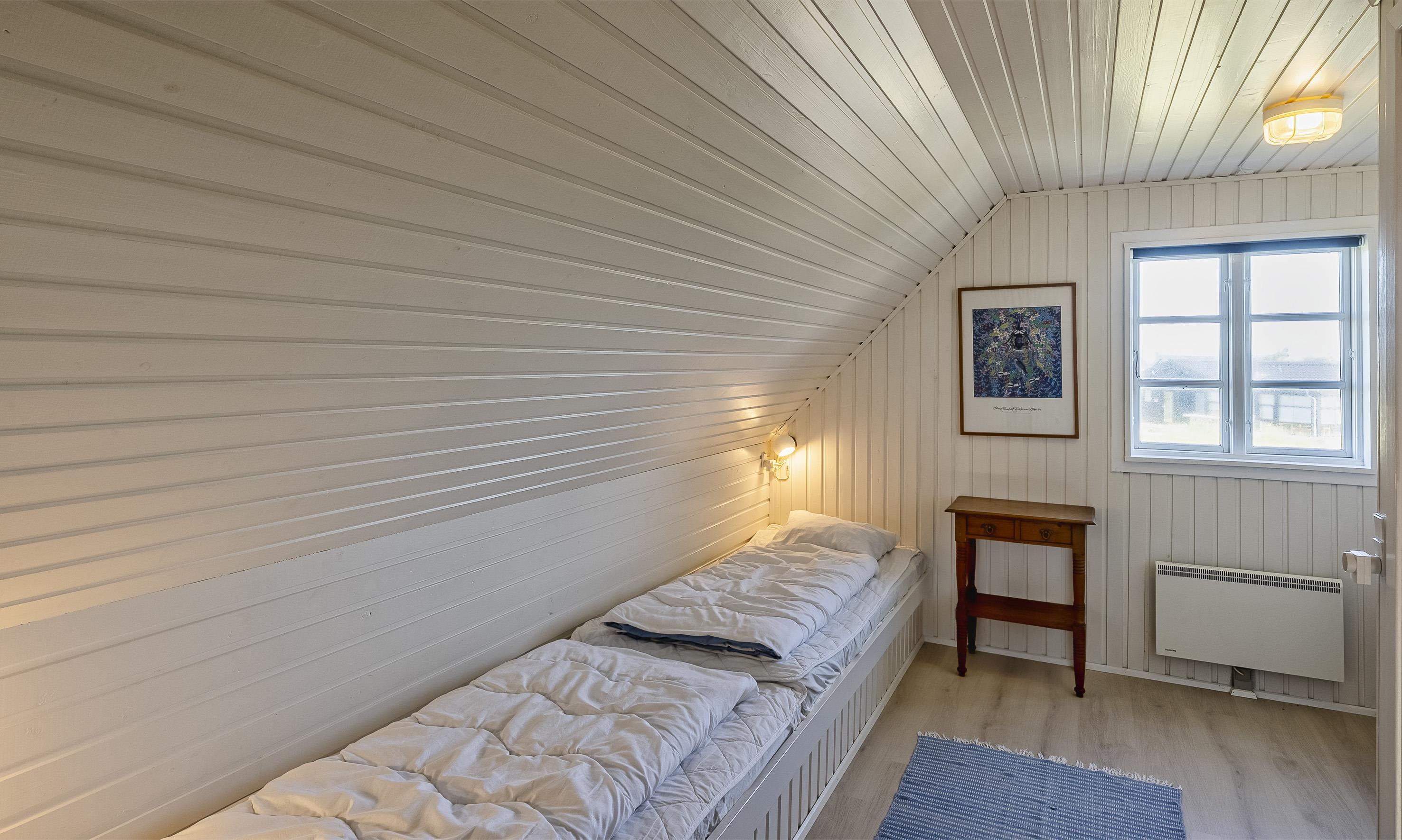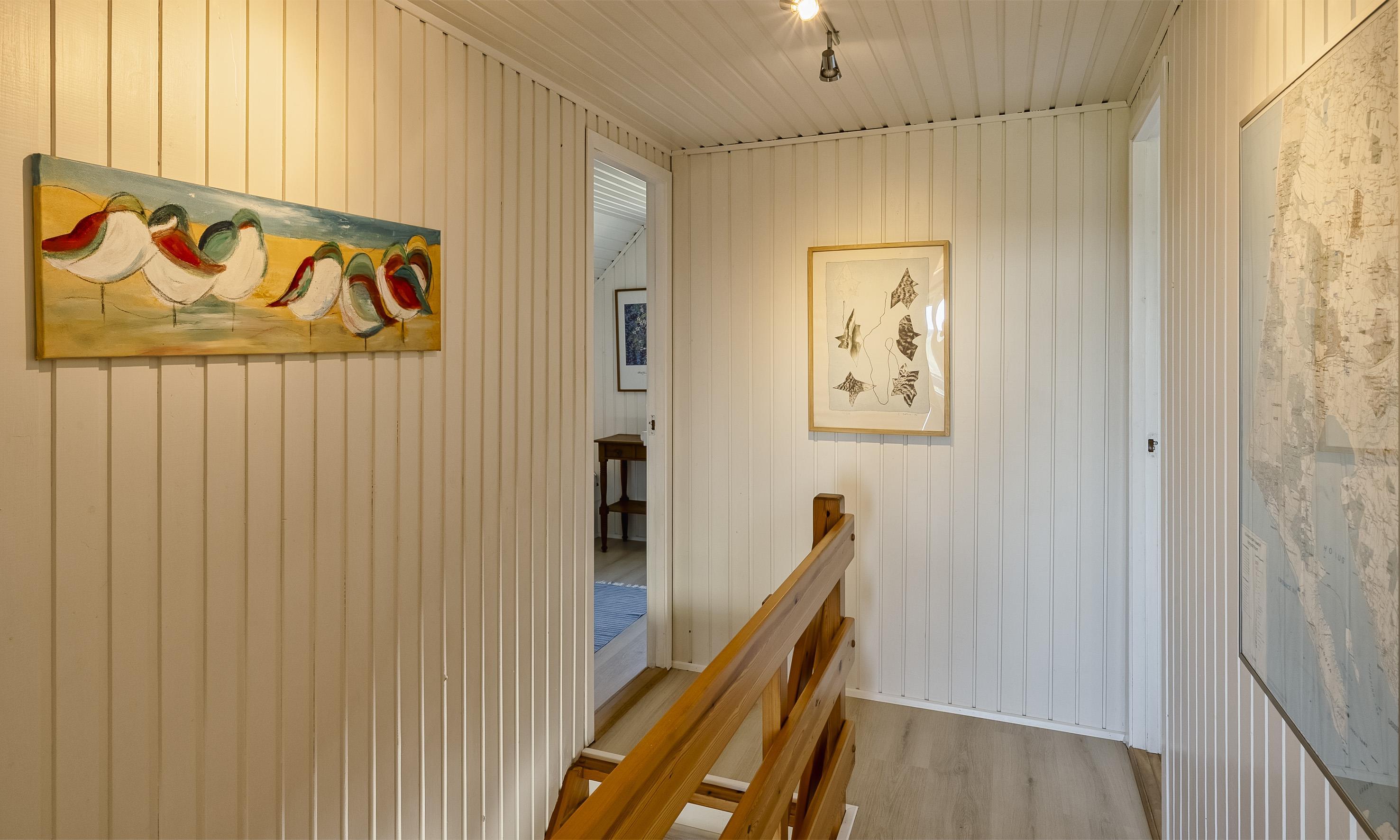 På 1. sal venter tre lyse soveværelser. Master bedroom har dobbeltseng og udgang til svalegang, hvorfra I kan nyde en storslået udsigt over landskabet. De to øvrige værelser har hver to enkeltsenge placeret i forlængelse af hinanden – ideelt til både børn og voksne. DS+ES+ES+ES+ES.