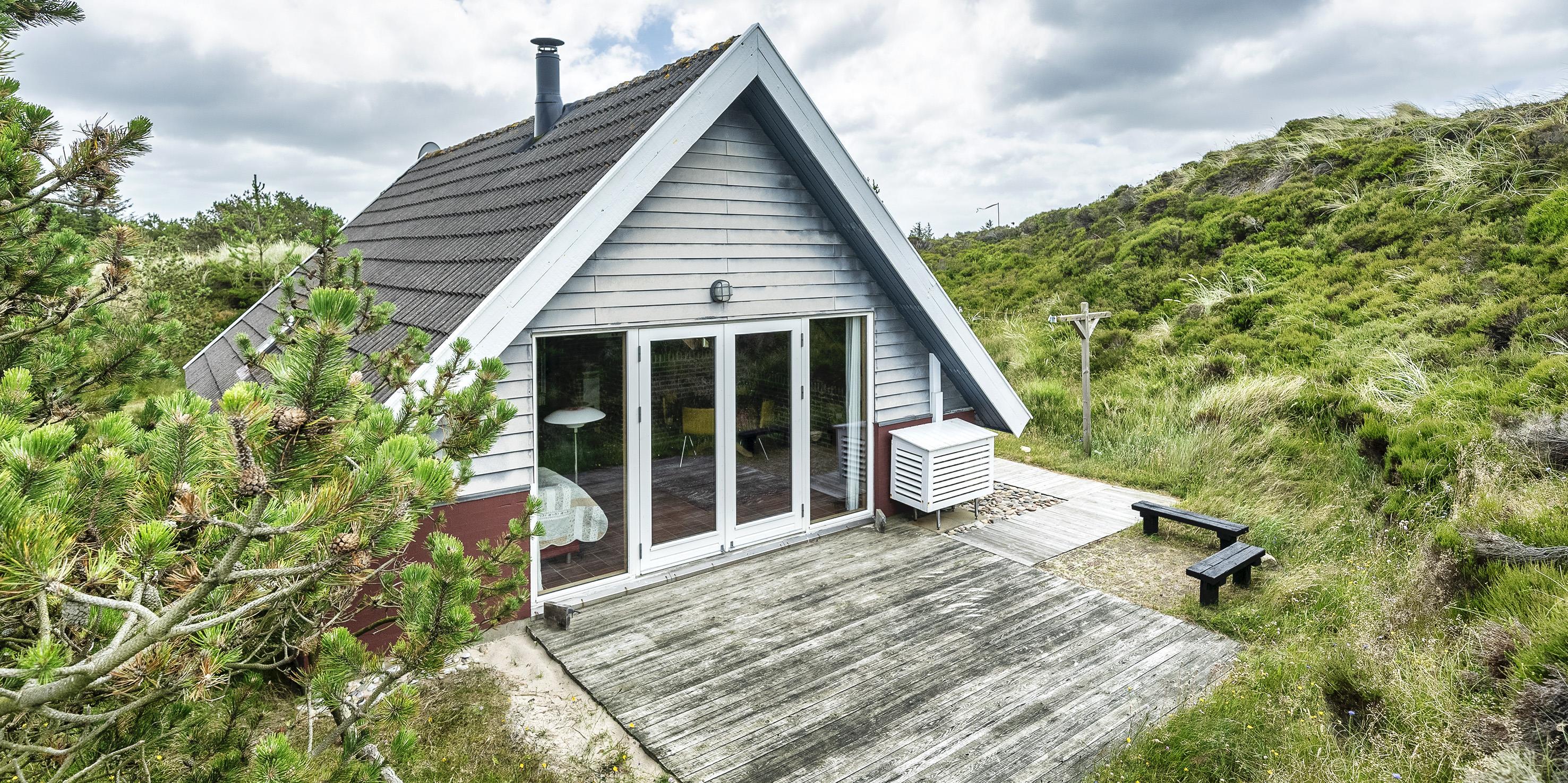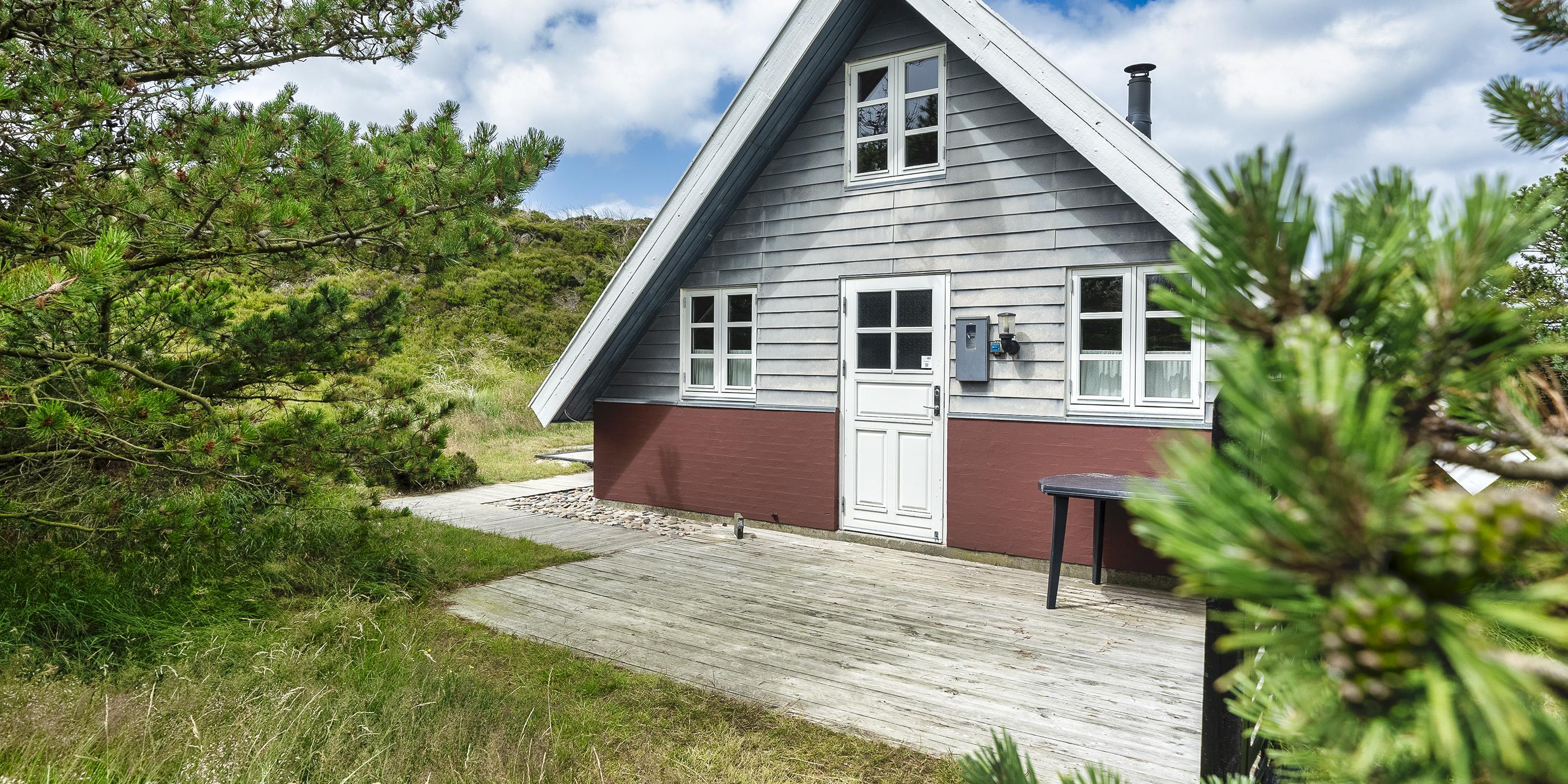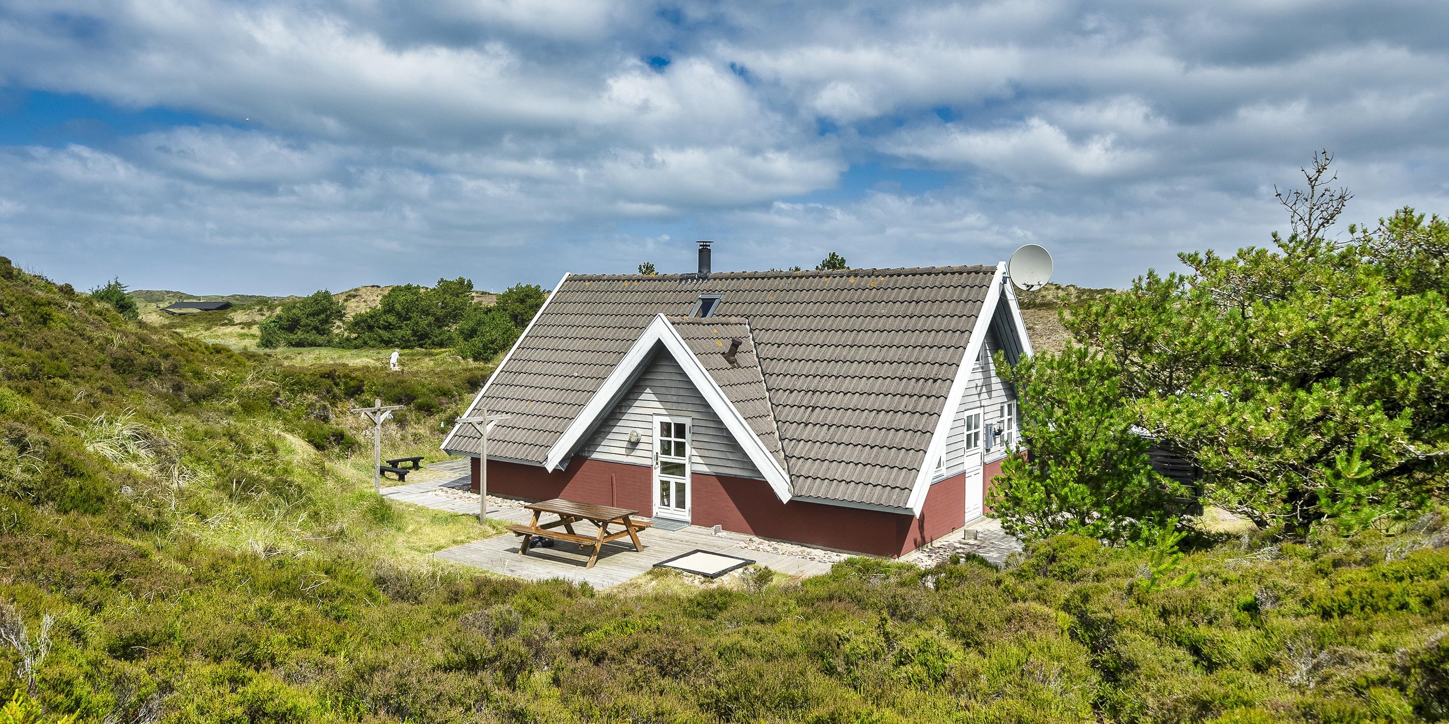 Hyggeligt sommerhus i 2 etager til 4 personer, beliggende på naturskøn klitgrund, ca. 800 meter fra stranden. Stue med brændeovn. Åbent køkken med lille skabsfryser og mikroovn. 2 soveværelser: DS + DS. Badeværelse med bruser/wc og vaskemaskine. Flere terrasser samt sandkasse. Varmepumpe. Trådløs Internetadgang. Husdyr er ikke tilladt! Rygning er ikke tilladt. Byggeår 1984.