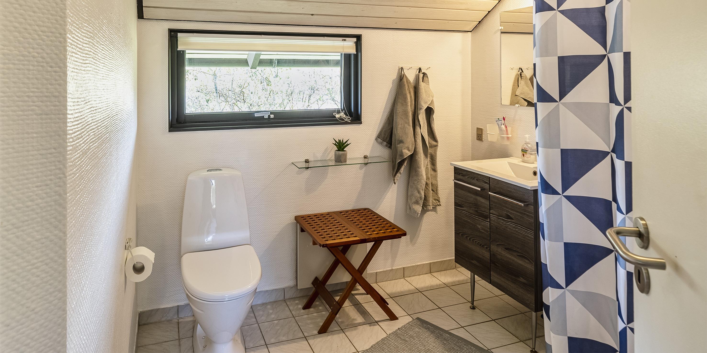 Bad med toilet, bruser og vask