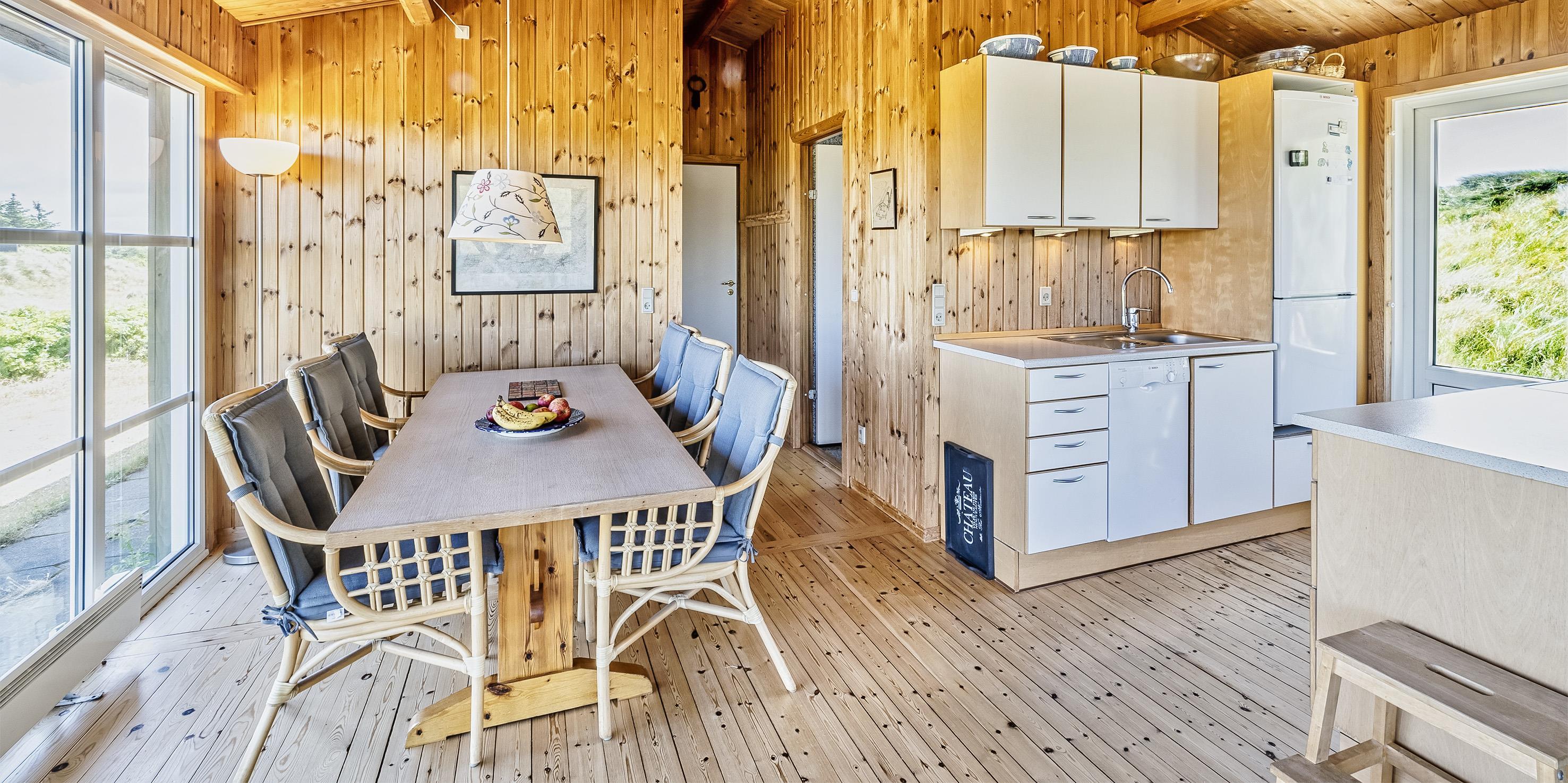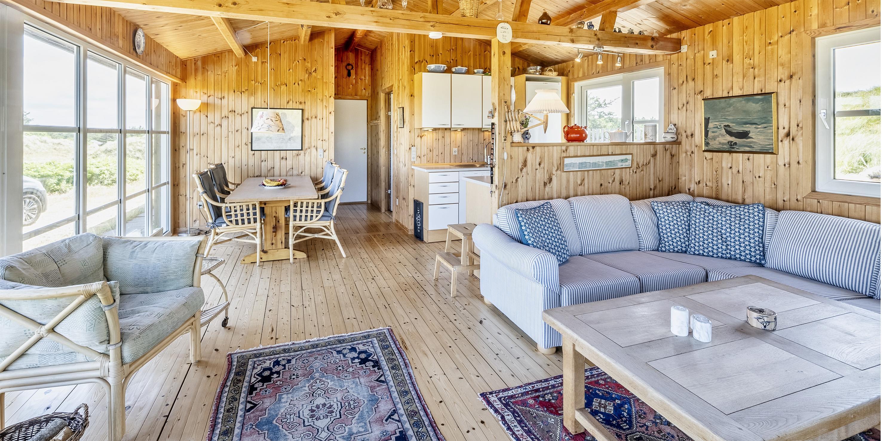 Flot sommerhus til 4 personer, beliggende på klitgrund, ca. 300 meter fra stranden. Stue med fjernsyn med stofa sommerhuspakke og brændeovn. Trådløs Internet. Køkken med opvaskemaskine. 2 soveværelser: DS + DS. Badeværelse med bruser/wc. Vaskemaskine. Overdækket terrasse. Husdyr er ikke tilladt. Rygning er ikke tilladt. Byggeår 1966, renoveret 1999.